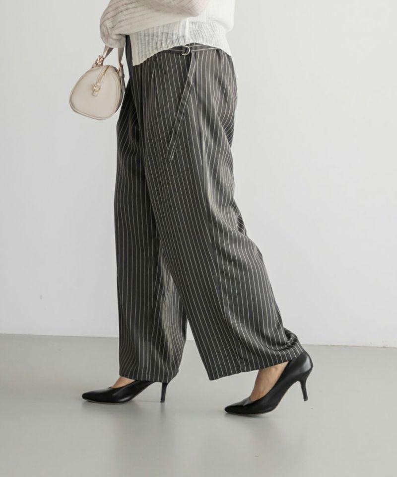 3Lを着用してちょうどいいサイズでした。程よくゆとりがありつつすっきり見えるシルエットで、楽ちんな着心地です!今っぽいストライプ柄がポイントで、シンプルなトップスとも相性がいいのでおすすめです。さらっとした落ち感素材で、程よくワイドなので脚のラインを拾わずリラックスして着られます!きちんと見えするのも嬉しい!後ろウエストゴムでストレスフリーに穿けて、長時間のお出かけにも快適です◎サイドにタブデザインがあって紐の垂れた感じもかわいい!オールシーズン着られて着回しも抜群です!