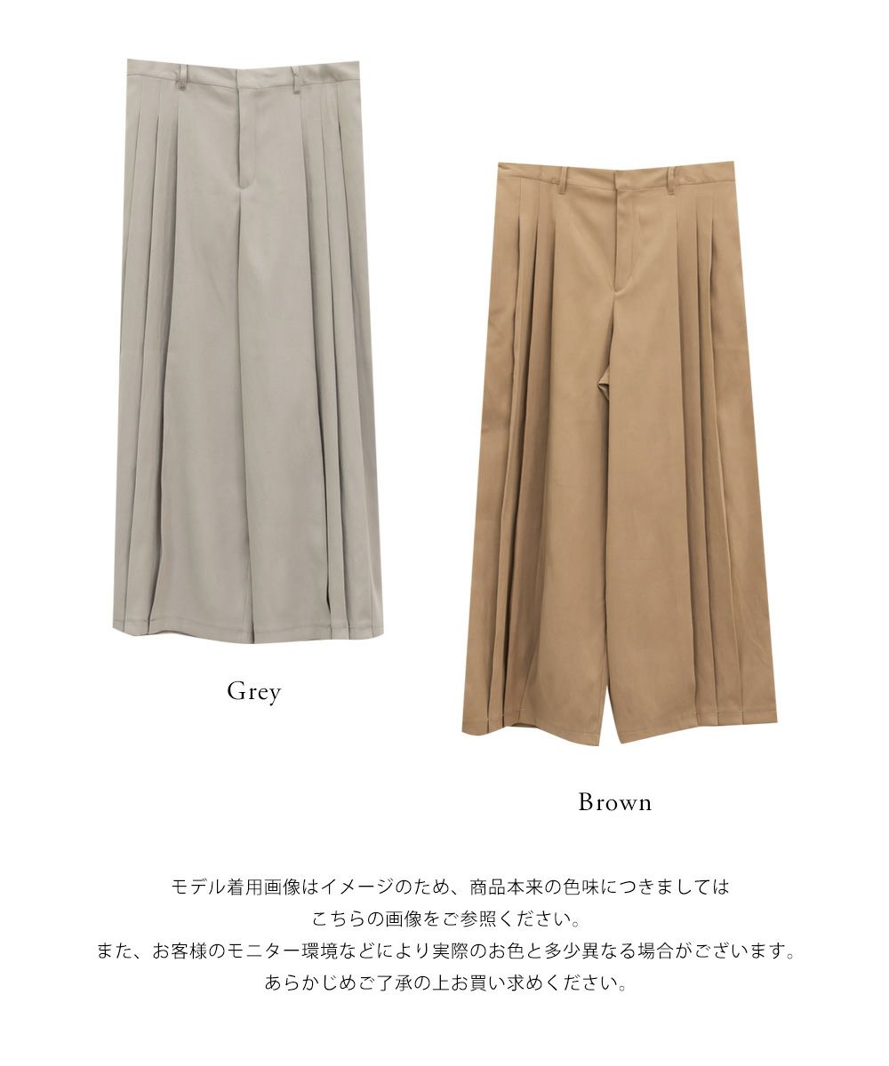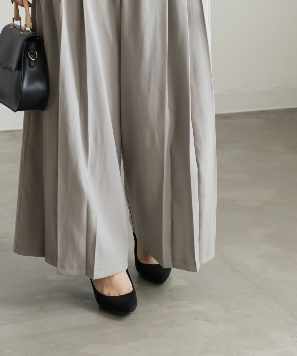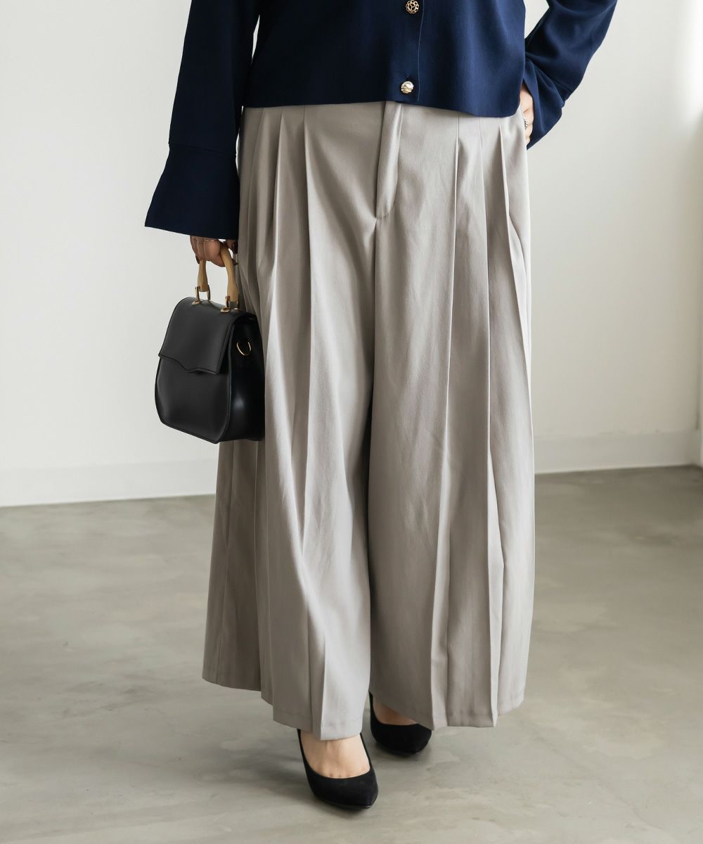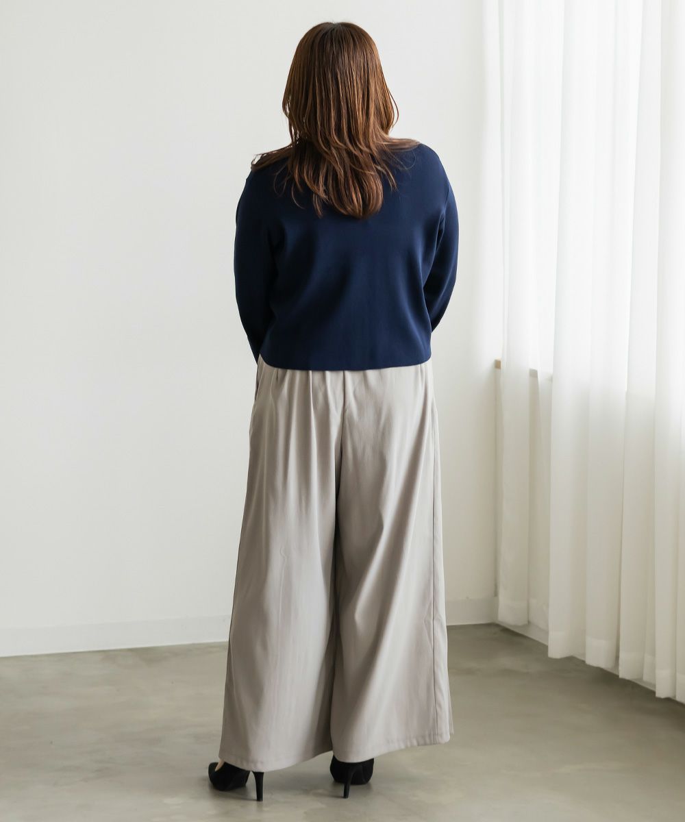 3Lを着用してちょうどいいサイズでした。程よくゆとりがありつつすっきり見えるシルエットで、楽ちんな着心地です!後ろウエストゴムでストレスフリーに穿けて、長時間のお出かけにも快適です◎季節感のあるスエードっぽい生地ですが、薄手で軽いので、動きやすさもありました。プリーツデザインがお洒落でシンプルなトップスとも相性がいいのでスタイリングに悩まず着回しが出来ます。オールシーズン使える便利なワイドパンツは脚のラインを拾いずらくリラックスして着られるのに、きちんと見えするのも嬉しいです。デイリーからお仕事までつかえる万能な1本です。