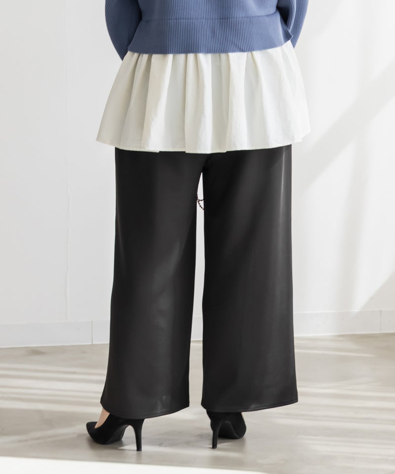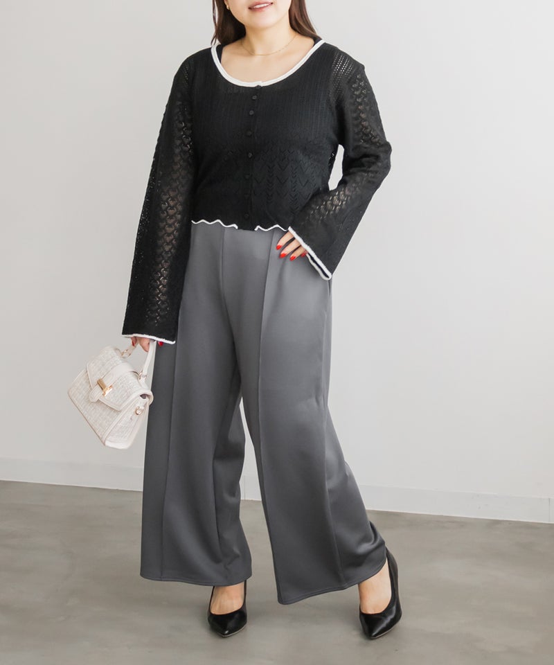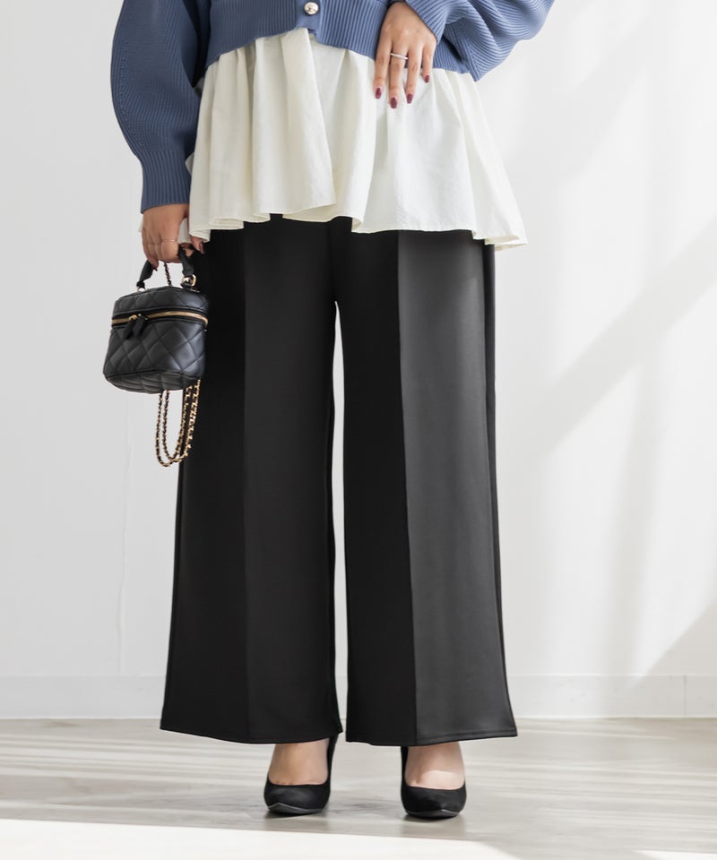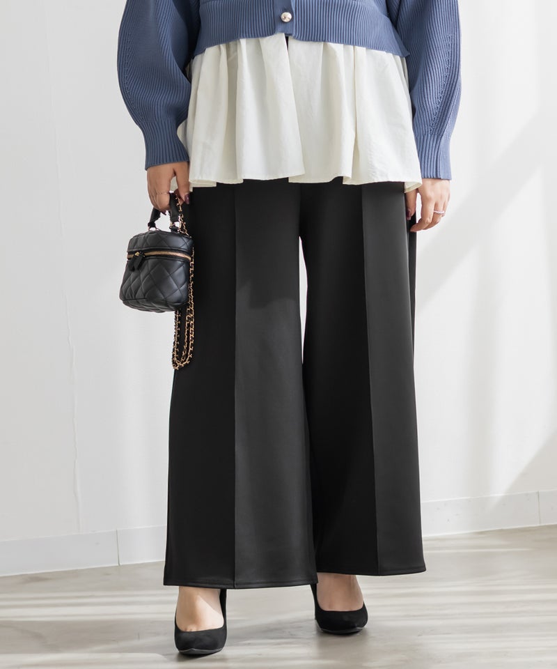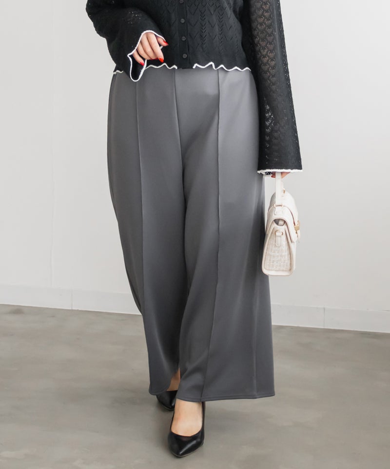 3Lサイズを着用してちょうどいいサイズ感でした。いつも通りのサイズ選びで問題なさそうです◎ゆとりがありつつすっきり見えるストレートシルエットで、綺麗めな印象で着用出来ます。センターシムがあることですっきり縦長な印象です。軽く伸縮性のある生地感でとても楽ちんな着心地です!お仕事にもつかえるシンプルなシルエットで、オールシーズン使える便利な1枚です!