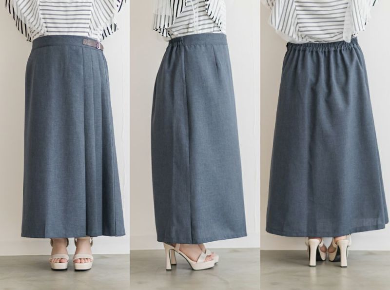 3Lを着て、程よくゆとりのある着心地でした。後ろはゴムになっていて、特に窮屈感はないです!サイドのベルトデザインとプリーツがラップスカートのような雰囲気で、上品で清楚な印象のスカートです。合わせるアイテムによってカジュアルにもフェミニンにもなれるので、色々なスタイリングが楽しめます!