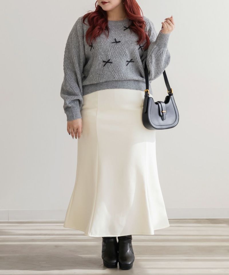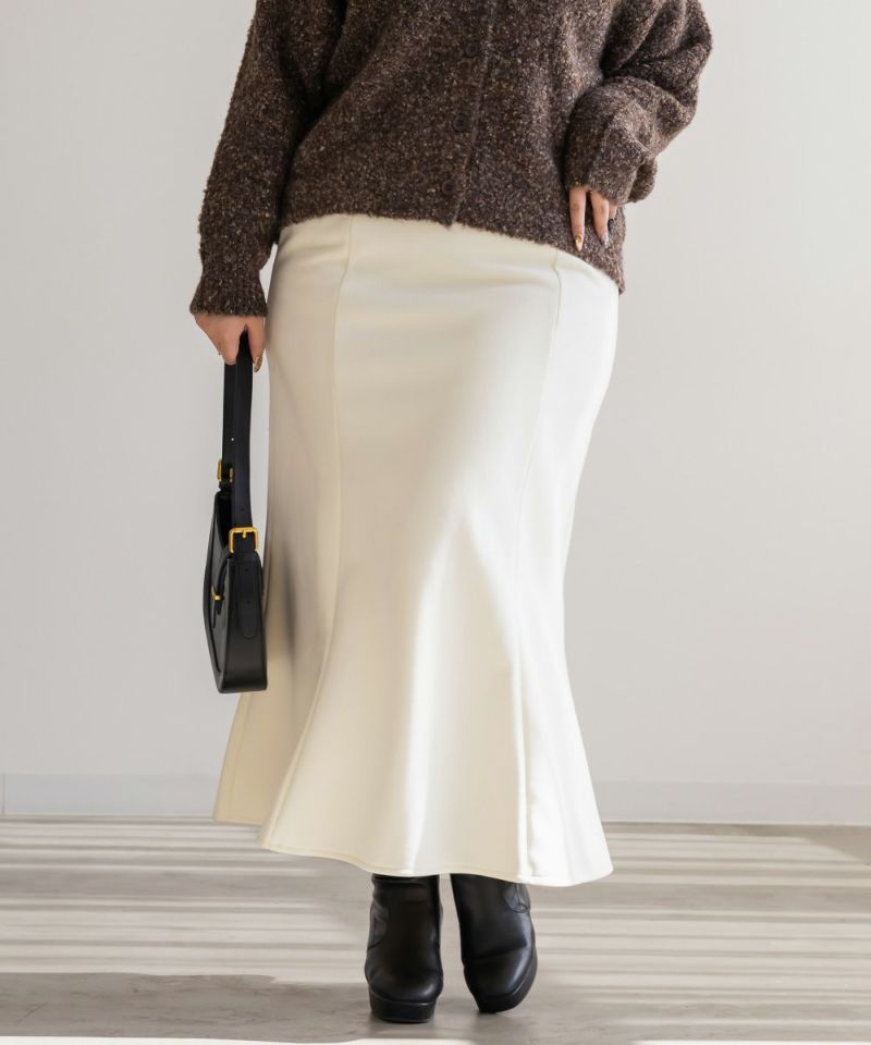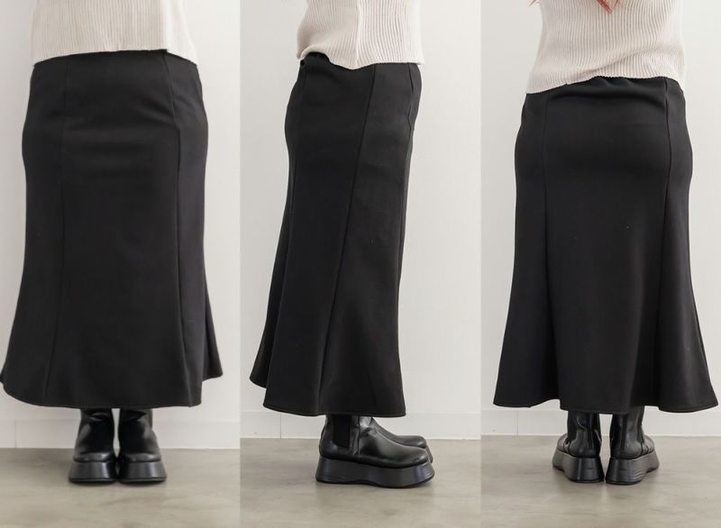 3Lサイズを着用して、ぴったりの着心地でした!ウエストは ゴム仕様なのと生地自体も程よく伸びるので安心感があり、ストレスなく過ごせそうです。マーメイドラインの裾は動くたびに揺れるシルエットが女性らしくきれいに見せてくれるのに締め付け感がないのが嬉しいポイントです!裏が温かみのある起毛素材になっていて、スカートでも防寒性がしっかりあるのが嬉しい!冬のオフィスコーデでにも良さそうです!シンプルトップスからブラウス、ニット合わせまで幅広くコーディネートを楽しめます◎ オフィスカジュアルから休日のおでかけスタイルまで大活躍の予感です!