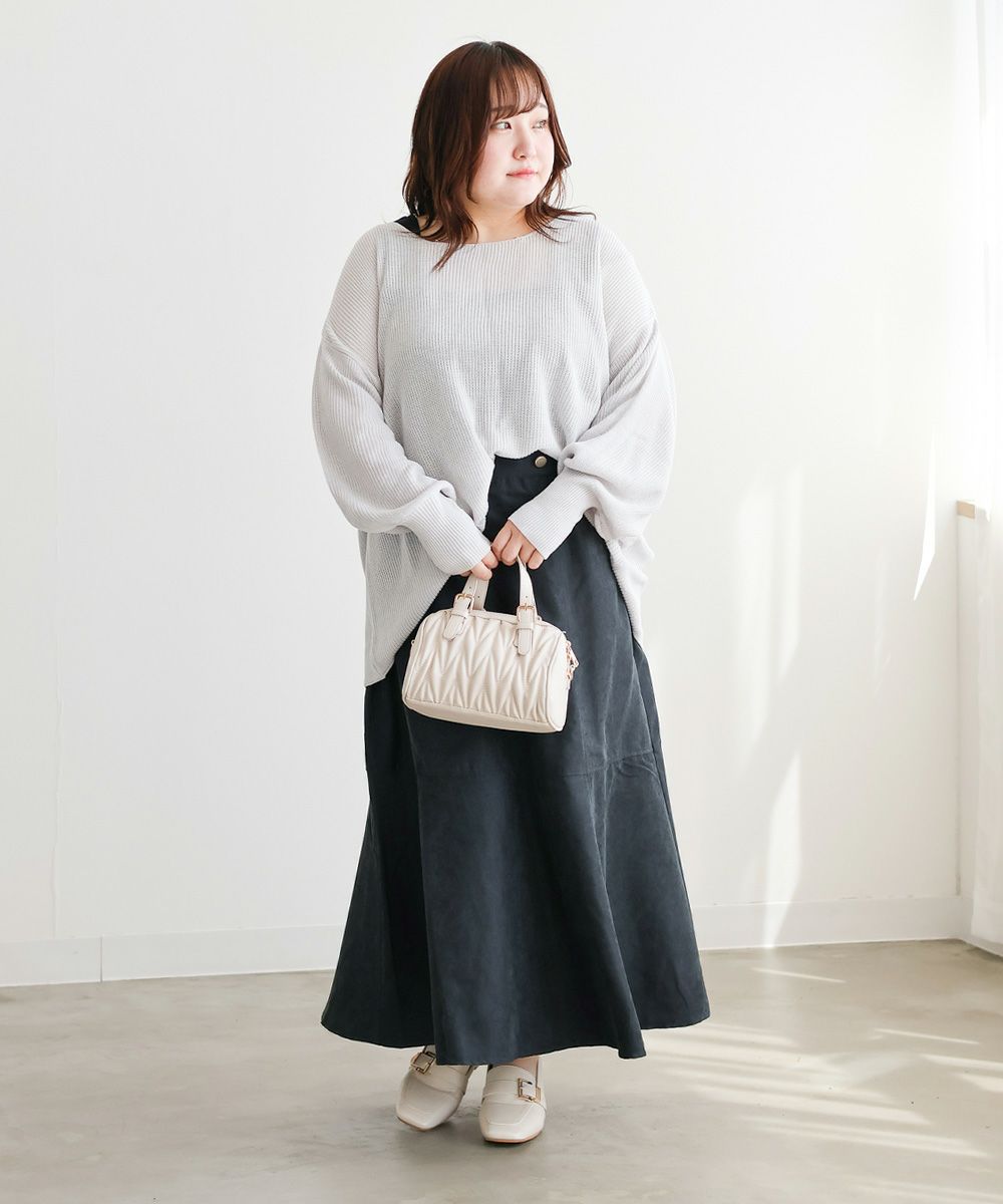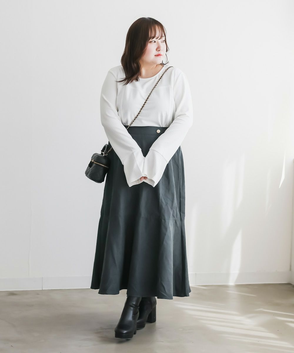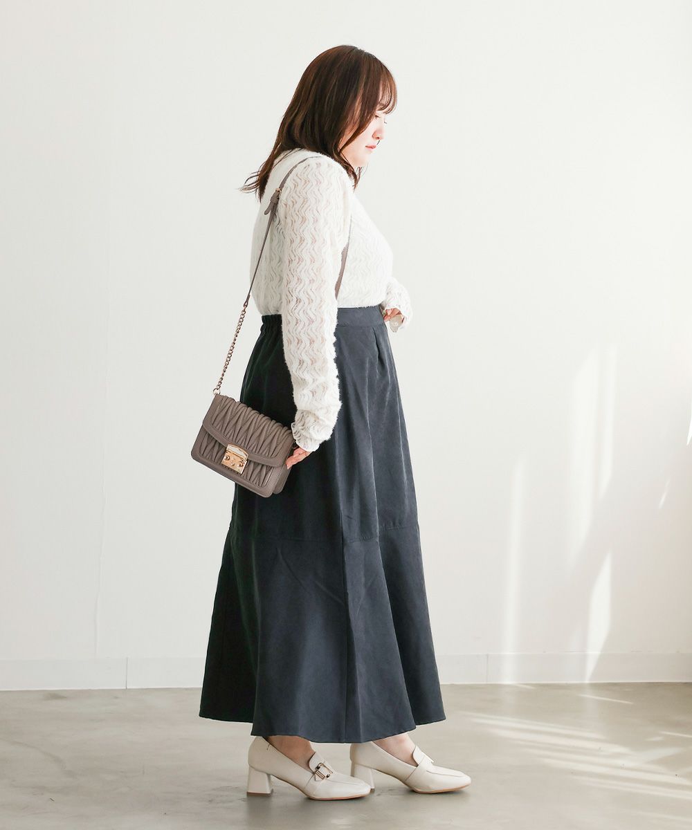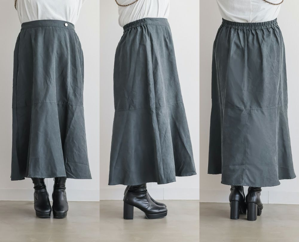 LLサイズを着用してぴったりのサイズでした。マーメイドシルエットだけどピタッとしすぎないサイズ感なのが嬉しいです!後ろゴム仕様なので着心地もらくちんでした!生地はとっても軽いので、動きやすく楽に着られるのも高ポイント◎切替から裾に向かって流れるマーメイドシルエットなので下半身を華奢にみせてくれます。長めのスカート丈も脚長に見え、お仕事や普段使いにピッタリな1枚です!
