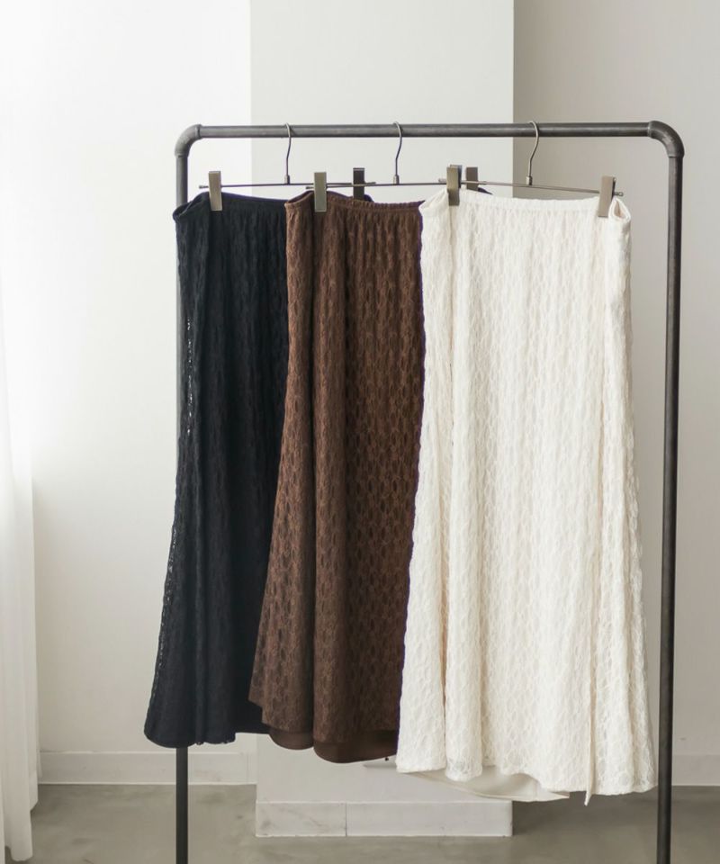 3Lを着て、ちょうどいいサイズ感でした。ウエストは総ゴム仕様で穿き心地もらくちんでした◎着丈も足首くらいのバランスでちょうどいいです!レースを前にして2枚で着用したり、サテンスカート単品で使ったり、レーススカートのみでパンツなどとレイヤードしたり、どのパターンも大人可愛く決まるので、気分で使い分けたいです♪レーススカートは総レースで上品さもあって、スリット入りでチラッと重ね着が見えるのもポイントです◎サテンスカートは、ツヤ感も綺麗できちんと感のある着こなしにもマッチします!1セットあると大活躍するスカートは1枚持っておくと本当に便利!