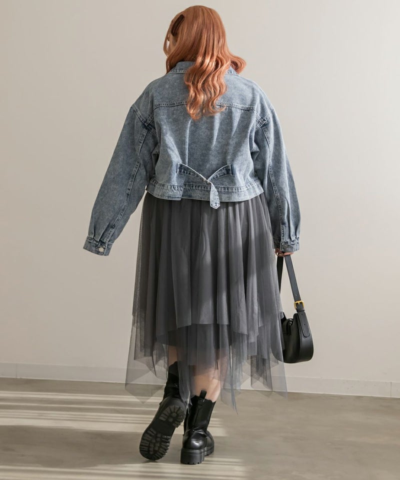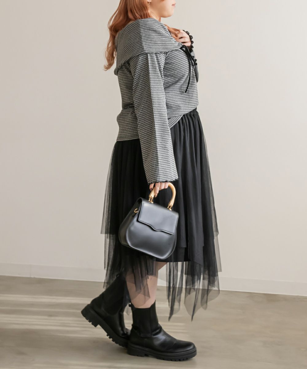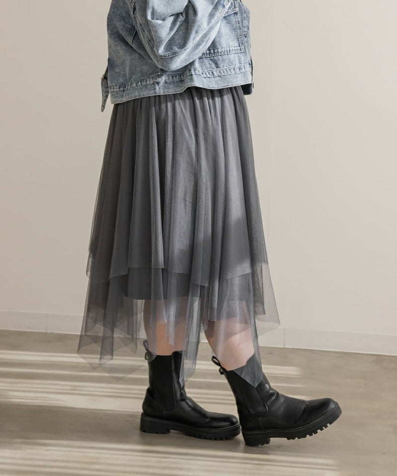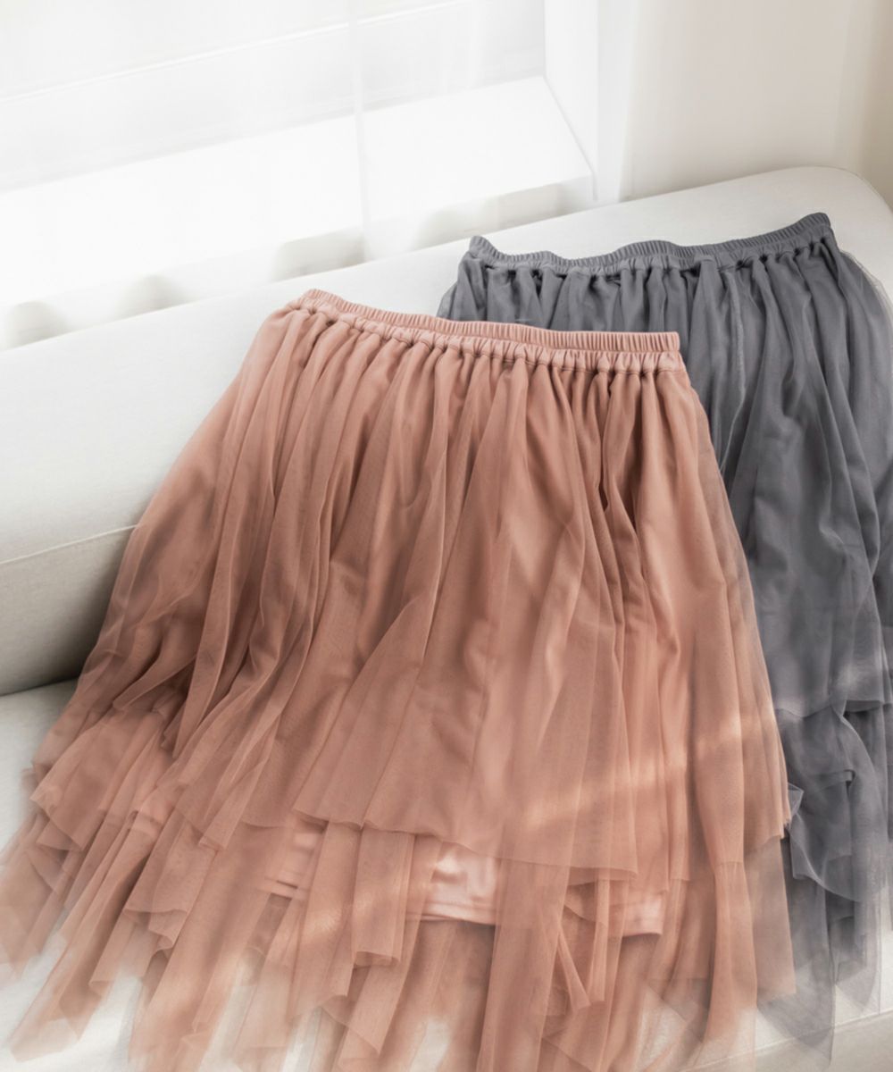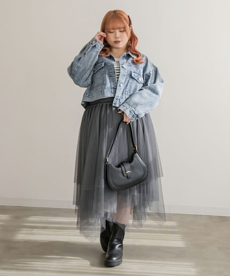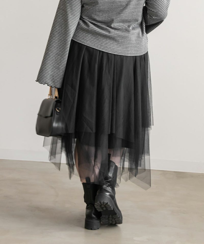 3Lサイズを着用してちょうどいいサイズ感で着用出来ました!ウエストは総ゴムで着脱も楽々です!ひらひら広がりのあるチュールスカートで足さばきもしやすいのがうれしいです♪ランダムなチュールティアードがコーディネートを華やかにしてくれるアイテムです!着丈も長すぎないので、ショートブーツをチラッと見せる着こなしもお勧めです。