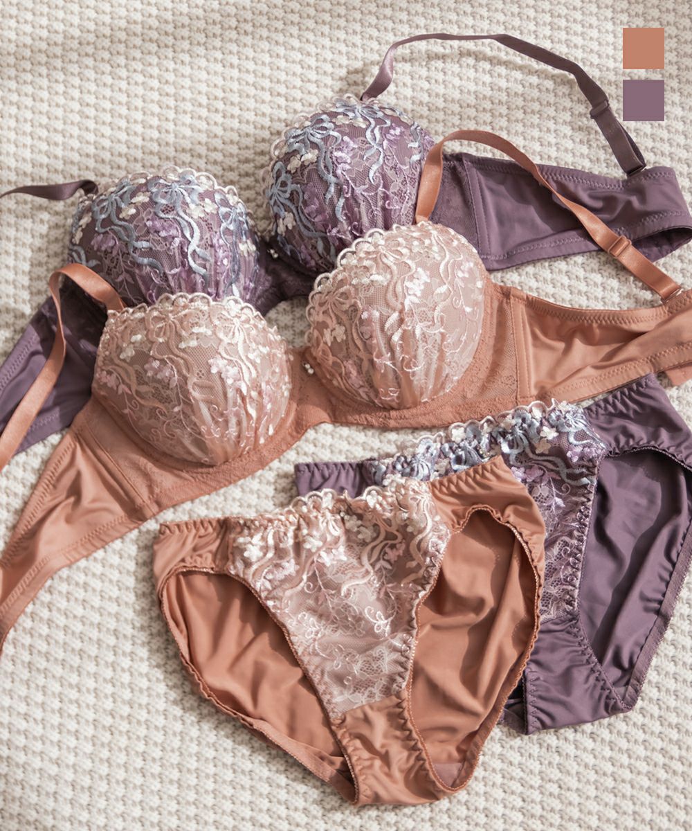 リボン刺繍ソフトワイヤーブラジャー&ショーツセット