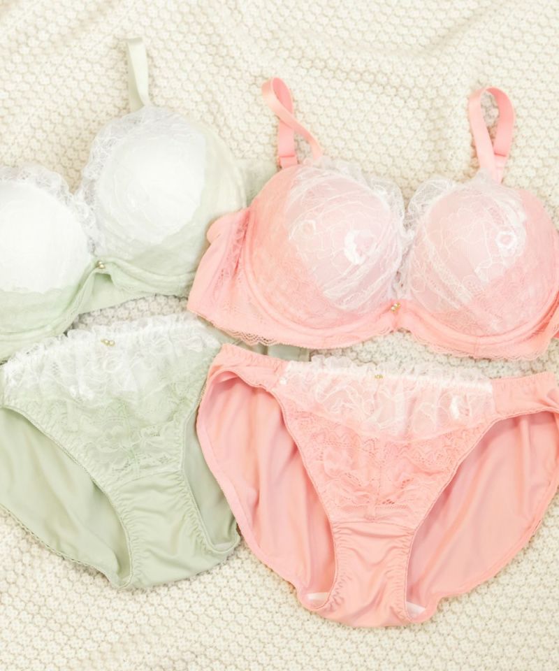 配色 レース ソフトワイヤー ブラジャー ショーツ セット 大きいサイズ レディース クレット ランジェリー 配色レースソフトワイヤーブラジャー&ショーツセット