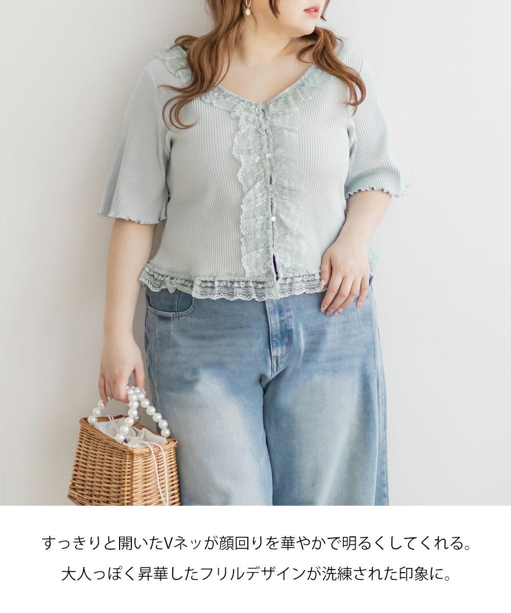 他の画像を見る クレット 大きいサイズ プラスサイズ トップス プルオーバー ボレロ カットソー Tシャツ Vネック CLETTEオリジナル★フリルレースリブカーディガン 2025年5月下旬販売価格 ¥ 4,290 ↓ ¥ 2,970 税込 詳細を見る お気に入りに登録する
