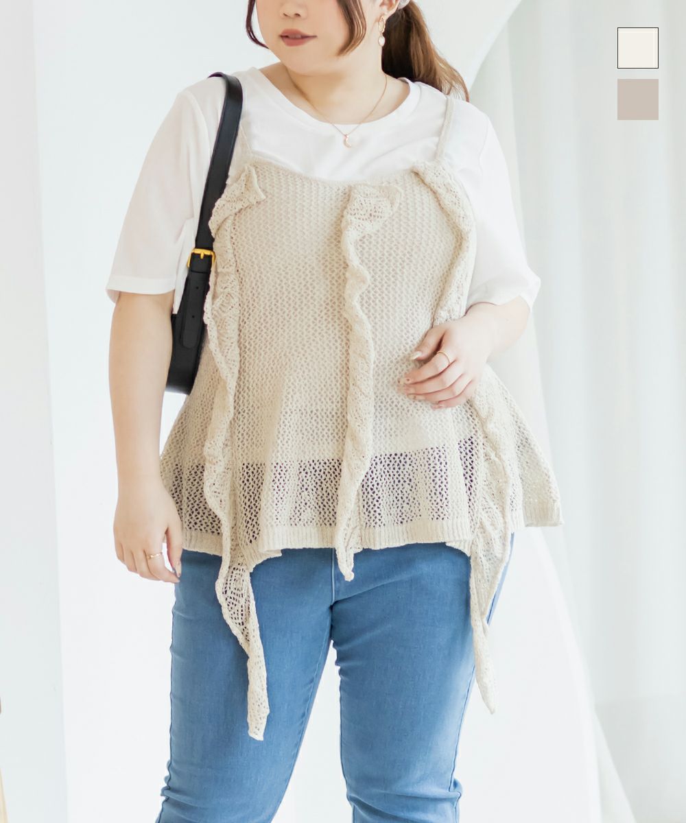 他の画像を見る 透かし編み フリル ニット キャミ 春夏 メッシュ 大きいサイズ プラスサイズ クレット 3L 4L 透かし編みフリルニットキャミソール 2025年7月上旬販売価格 ¥ 3,960 ↓ ¥ 990 税込 カートに入れる お気に入りに登録する