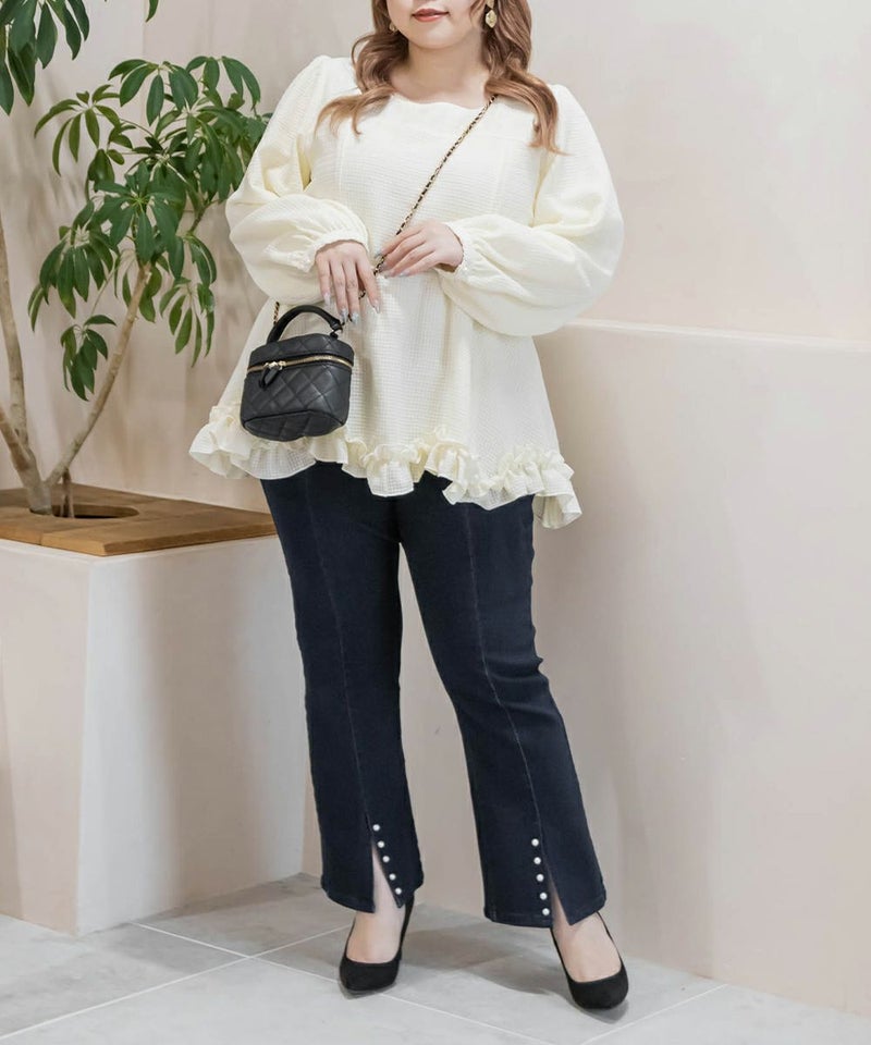 商品ページに記載のサイズは、当店のスタッフが採寸した平置き実寸のサイズです。