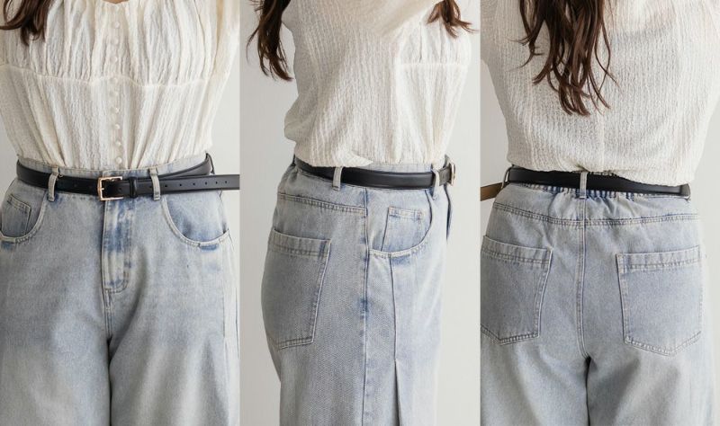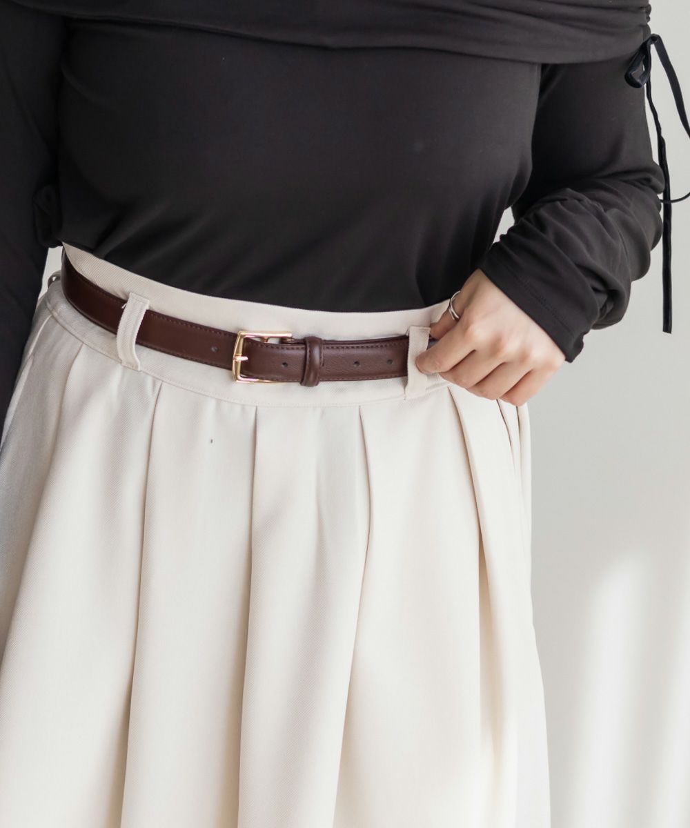 もう少し細くできる穴の位置で着用して、大きくするのはまだまだ余裕がありました!少しざらついた素材感とバックルが上品でアクセントになっています!サイズ感もちょうどよく、ウエストマークするだけでコーデがぐっと大人っぽく引き締まりました♪ スカート、パンツ、ワンピースなどアイテムによって穴の位置は変えられるのでちょうどいい着心地になれます。上品なデザインなので高見えするのも嬉しい◎1本持っておくと着こなしの幅が広がります!オフィスなどきちんとしたシーンにもお勧めで、どんなアイテムにも合わせられるベルトはワードロープに加えたい1本です♪