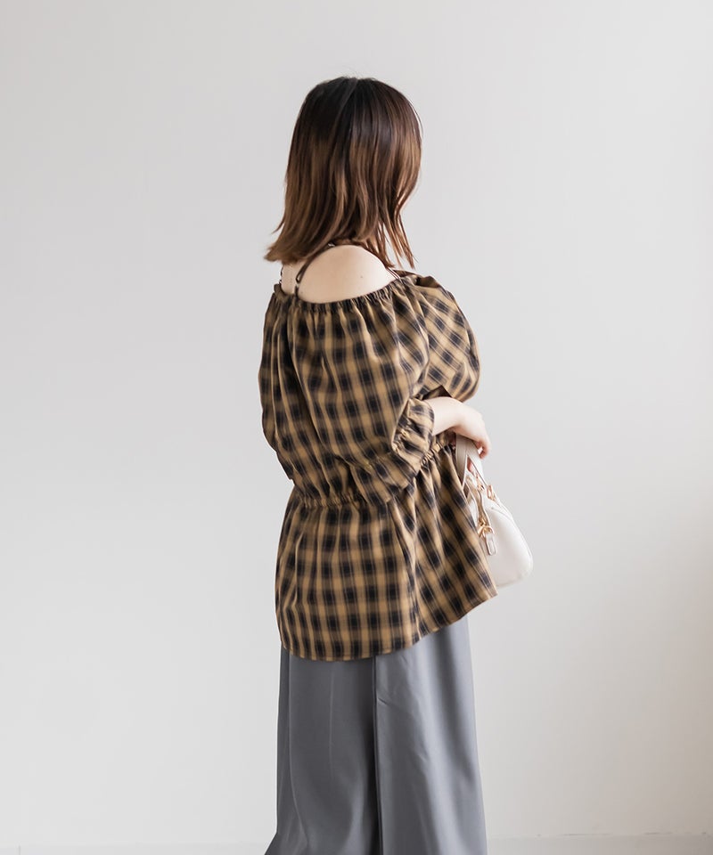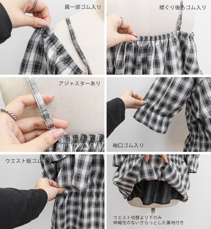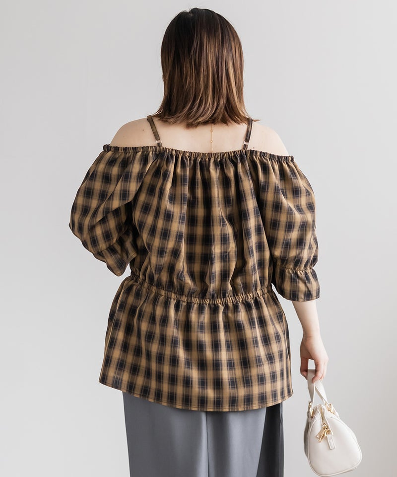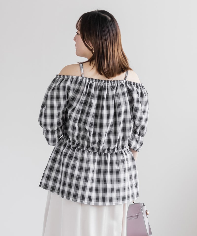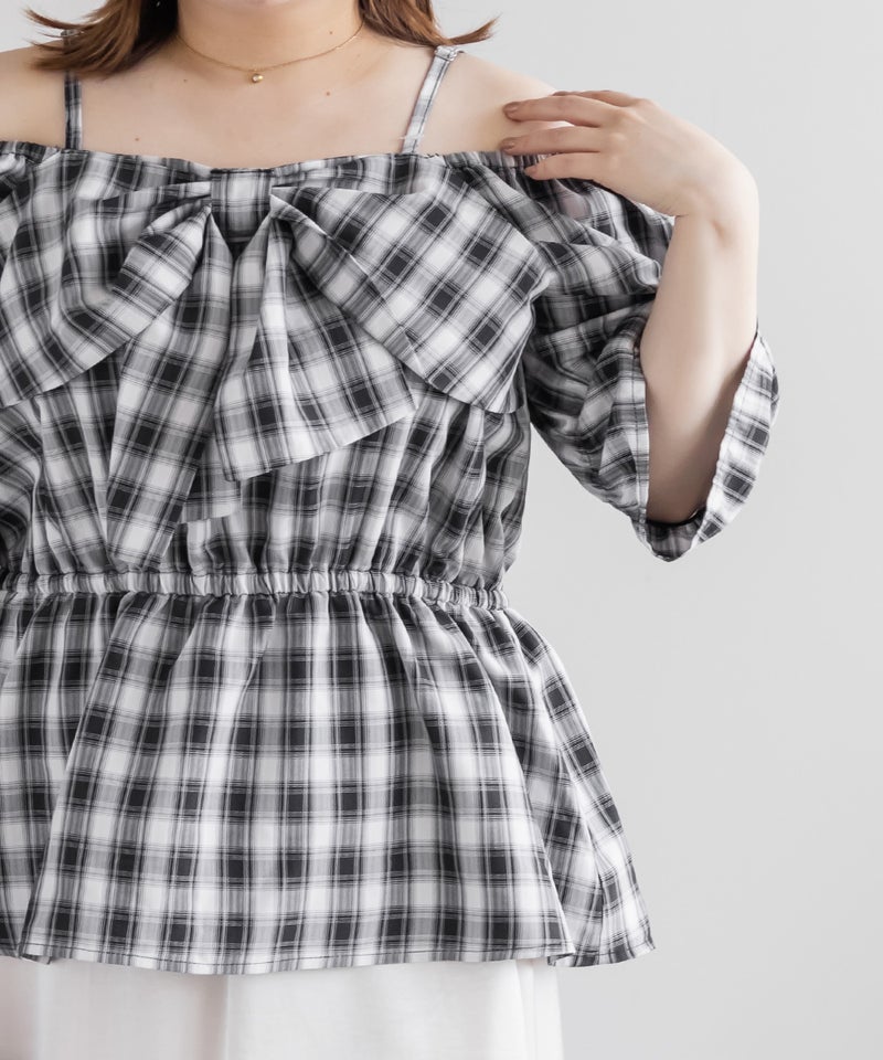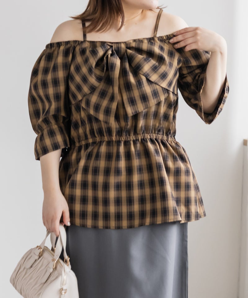 3Lを着てちょうどいい着心地でした。肩紐がついていてオフショルでもずり落ちる心配はないです◎チェック柄と大きめのリボンが可愛くて、トレンド感もたっぷりなデザインです!オフショルなのでデコルテや顔回りがすっきりした印象なって、着やせも抜群です。ウエストからふわっと広がるペプラムデザインになっていて、お腹周りもしっかりカバーしてくれます♪