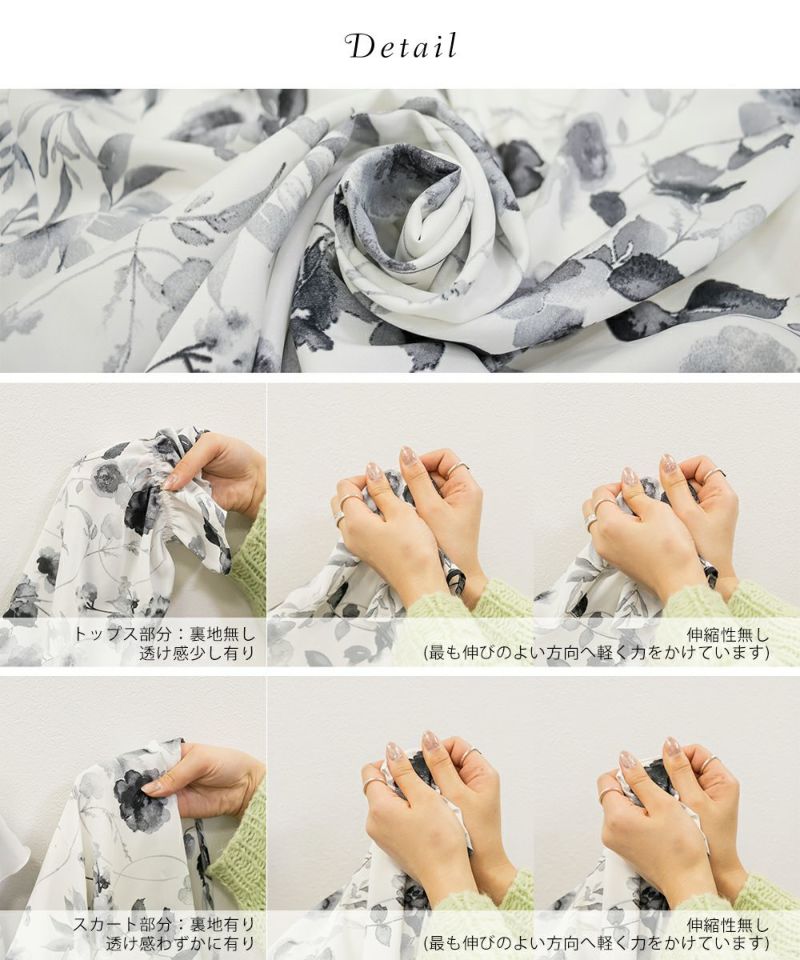 3Lサイズを着用していつも通りのサイズ感でした。ウエストはゴム入りでフィット&フレアのシルエットが女性らしいワンピースです!大人っぽいモノトーンの花柄で使いやすいワンピースです。肩にフリルがついていて肩回りの丸みをカバーしてくれます♪軽い着心地なのでお出かけや旅行など動くシーンにもおすすめです◎