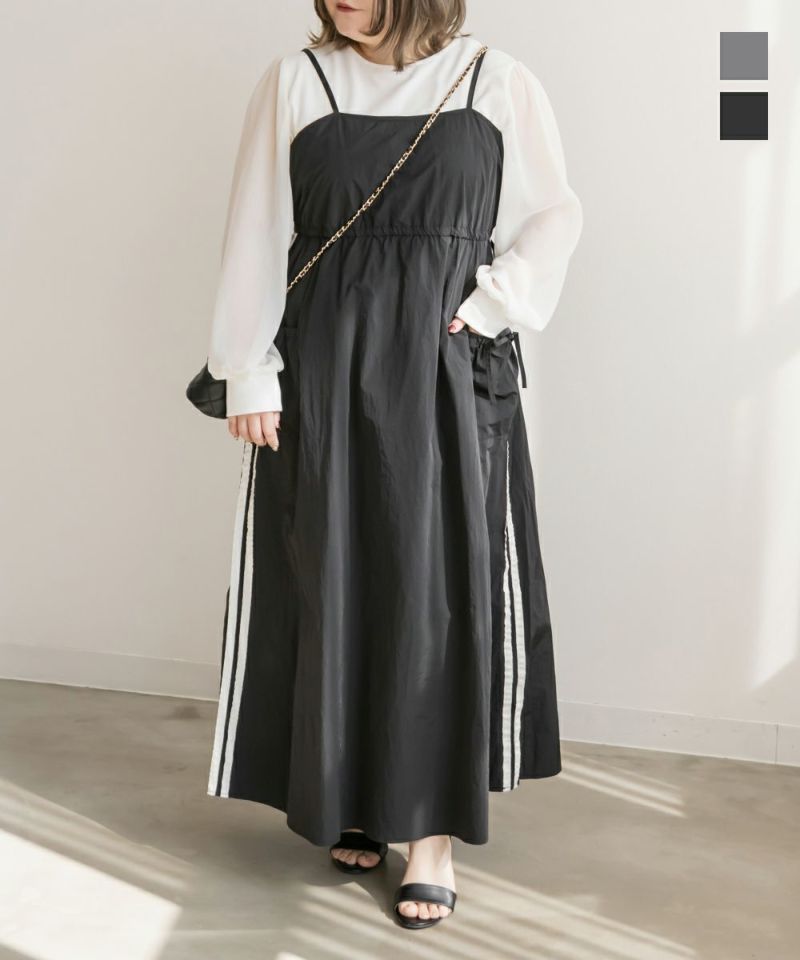3Lサイズを着用して、程よくゆとりのあるサイズ感でした♪ サイドのラインデザインがスポーティーなアクセントになりつつ、ロング丈のフレアシルエットで女性らしい雰囲気も◎ ウエストのリボンでシルエットの調整ができるので、好みに合わせたフィット感で着こなせます! 軽やかな生地感で動きやすく、インナー次第でロングシーズン活躍するアイテム♪ Tシャツやタートルネックを合わせたり、アウターを羽織ったりと、着回し力も抜群です!