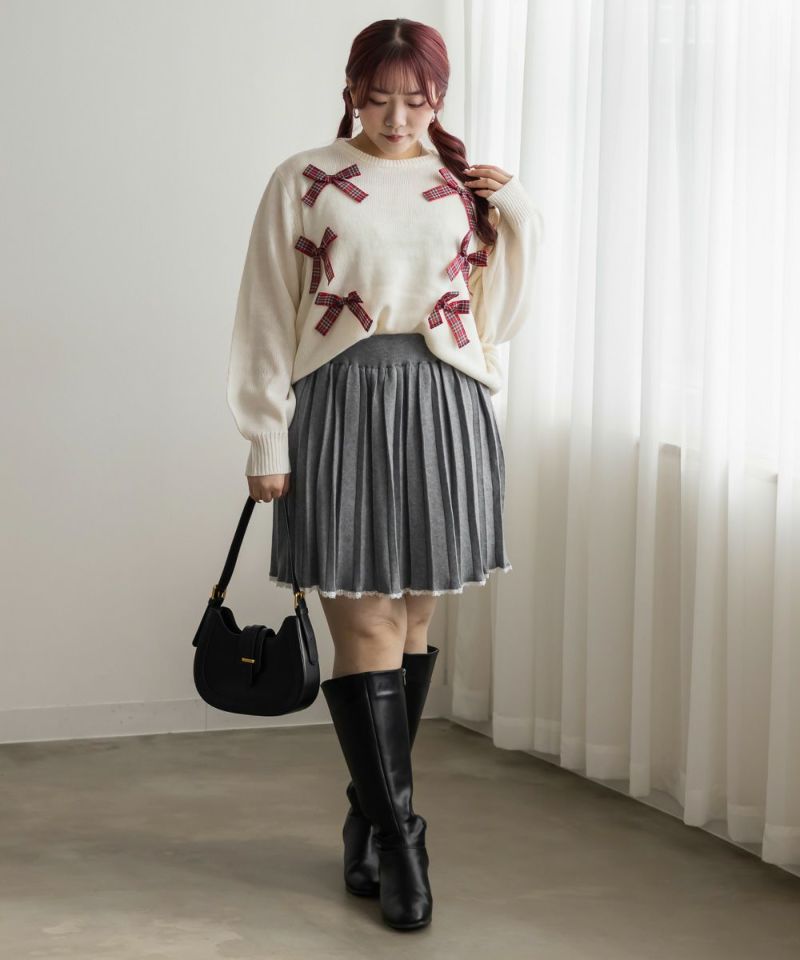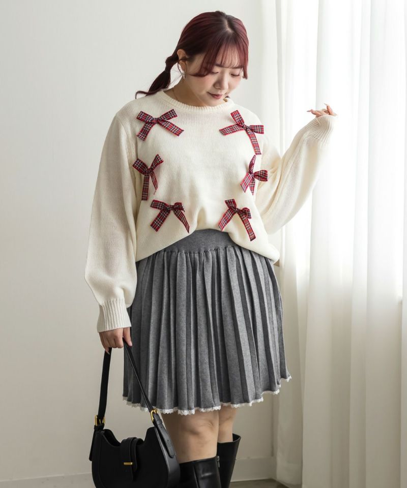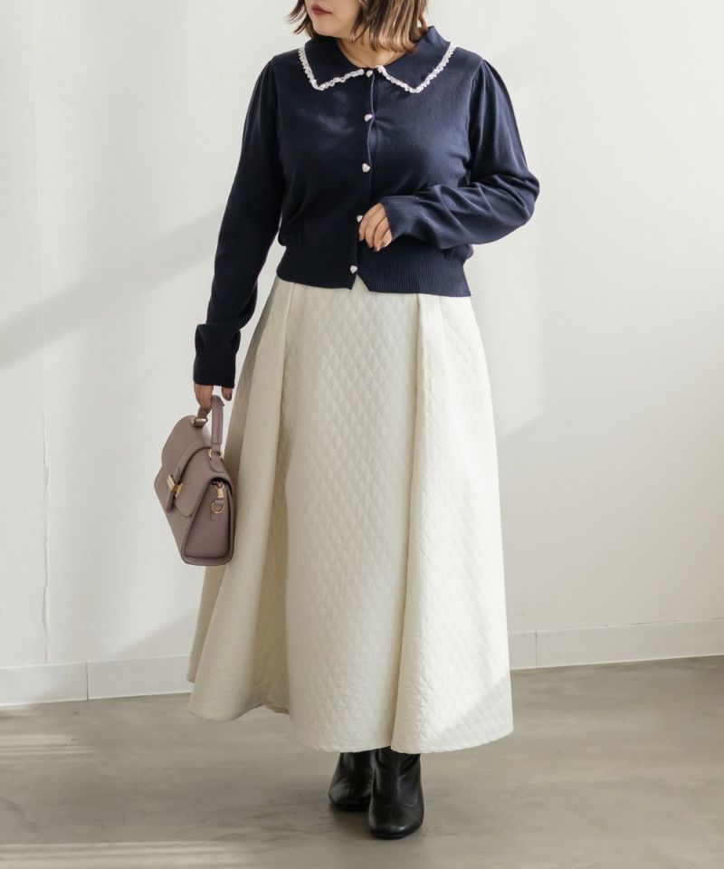 3Lサイズを着て、少しゆとりのあるサイズ感でした。バストのサイズ確認をお勧めします!カーデとスカートのセットで、襟元とスカートの裾にはレースがついているのがさりげなく可愛いです!カーデのボタンはハート型になっているのがポイント!スカートはニットのプリーツミニスカートで、セットだけじゃなく色々なアイテムと合わせやすいです◎それぞれ単品使いで色々なスタイリングが楽しめます。これから季節のデートやお出かけにお勧めです♪
