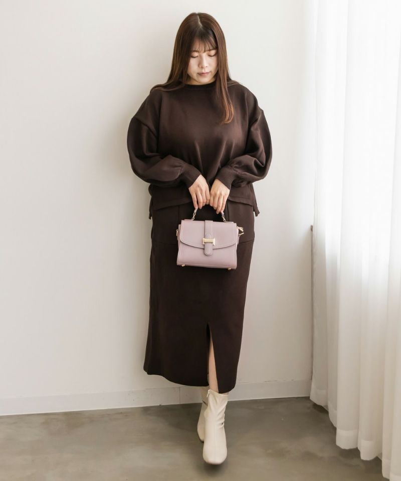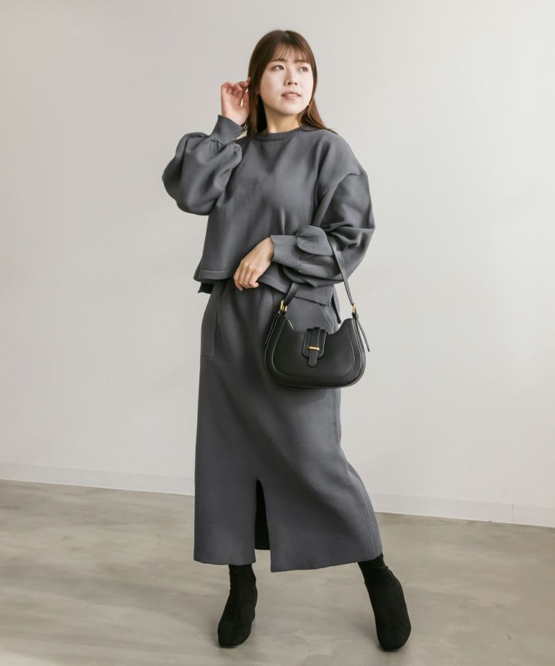 3Lサイズを着用して、ほどよいサイズ感でした。腰回りなど気になる方はスカートのサイズ確認をお勧めします。軽くてやわらかいスポンジニットで着心地はとってもらくちんです◎セットアップになっているのでコーデいらずでこなれ感のある着こなしになれます♪それぞれ単品でも着回しできるので1セットあると便利なアイテムです!