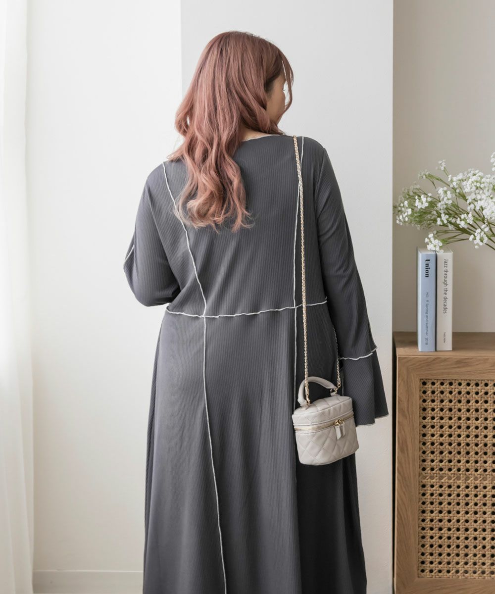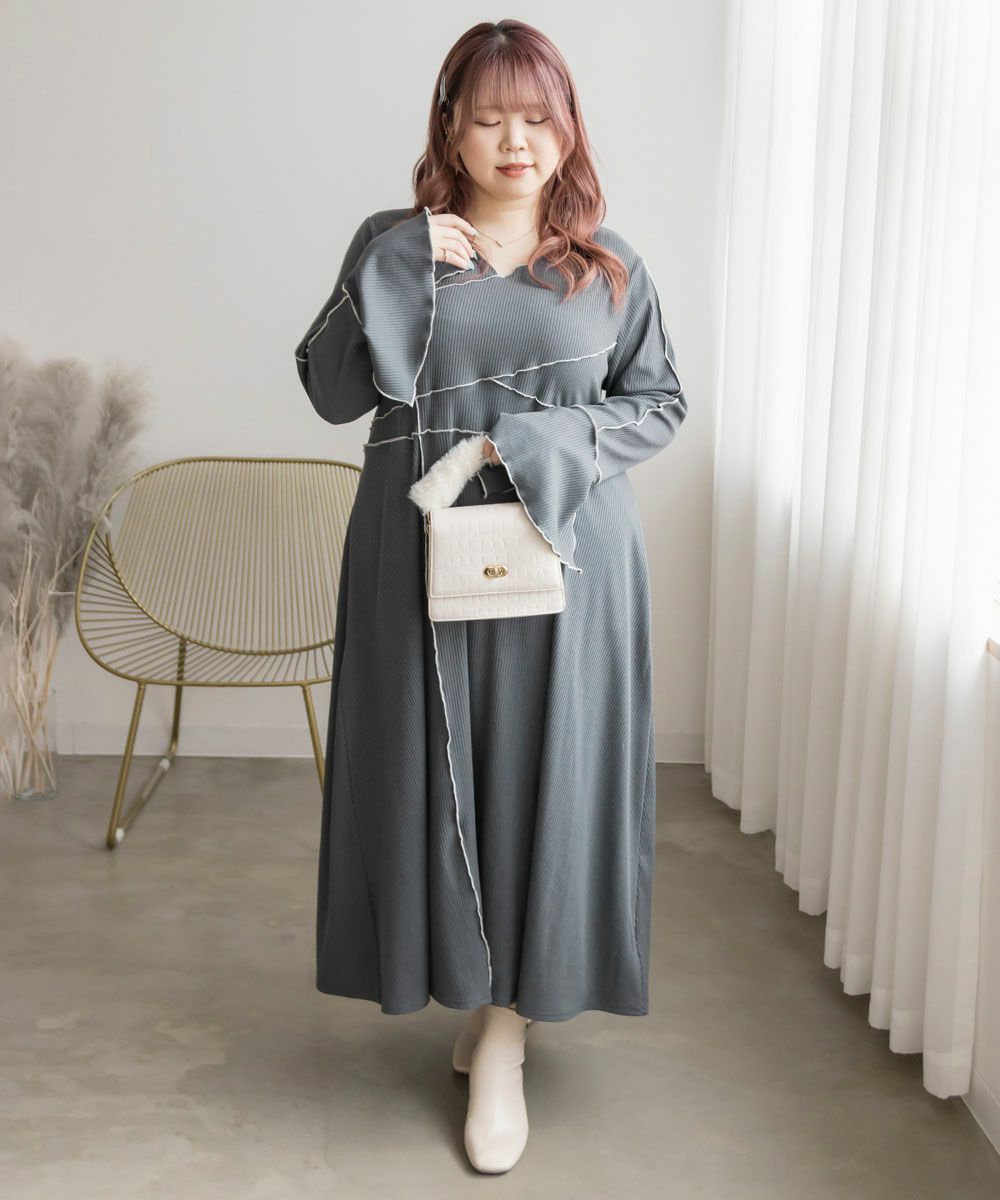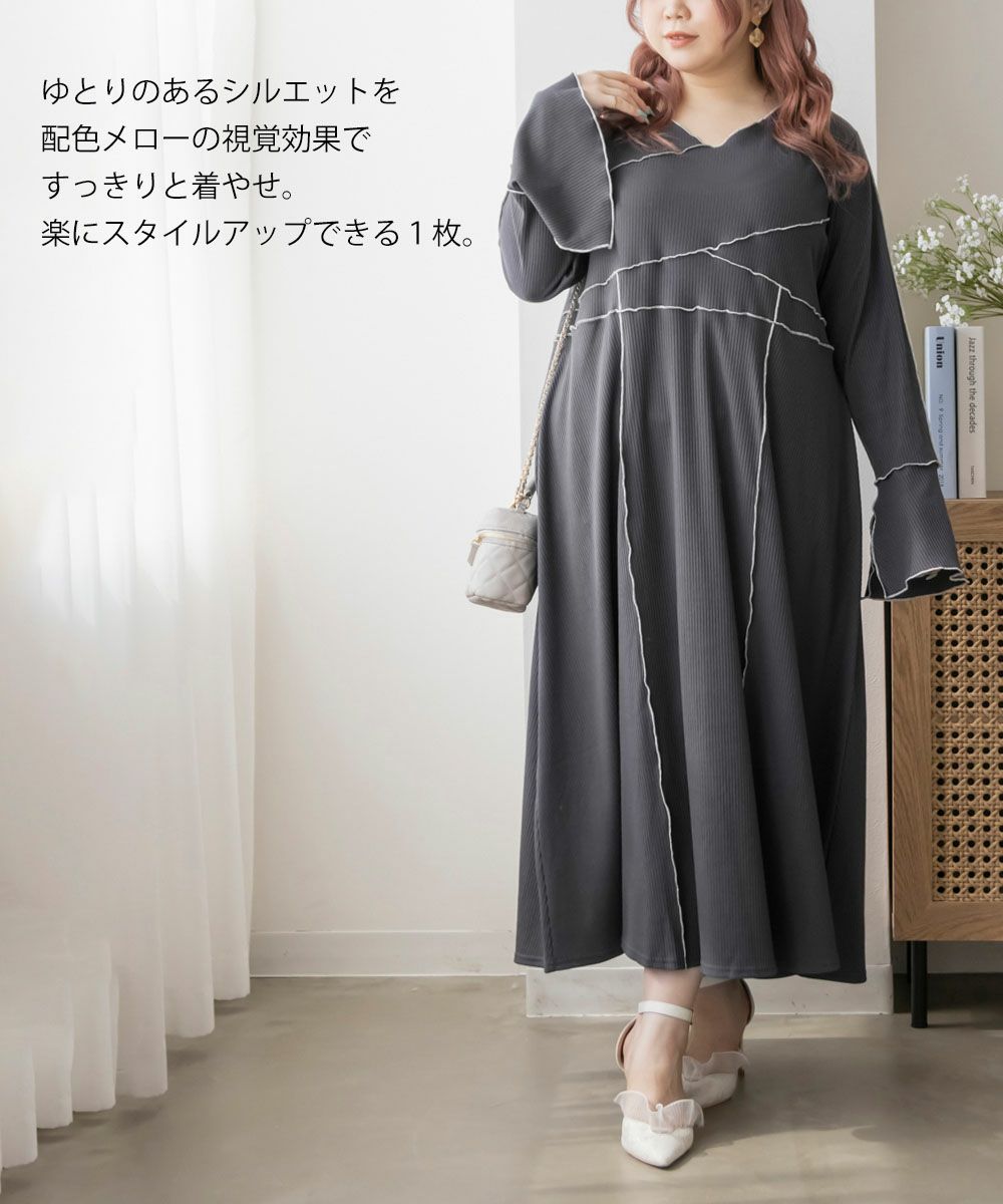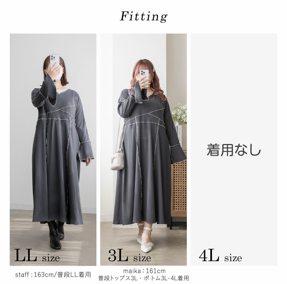 3Lを着用してちょうどいいサイズでした。伸縮性のあるリブ素材だから、着心地とっても楽ちんです!楽だけど、配色のラインのおかげですっきりと着やせできるとっても優秀なワンピース◎スリット入りの袖も可愛いです!さらっと着られておしゃれな印象になれて、真夏以外のロングシーズン使えるのもおすすめポイントです!