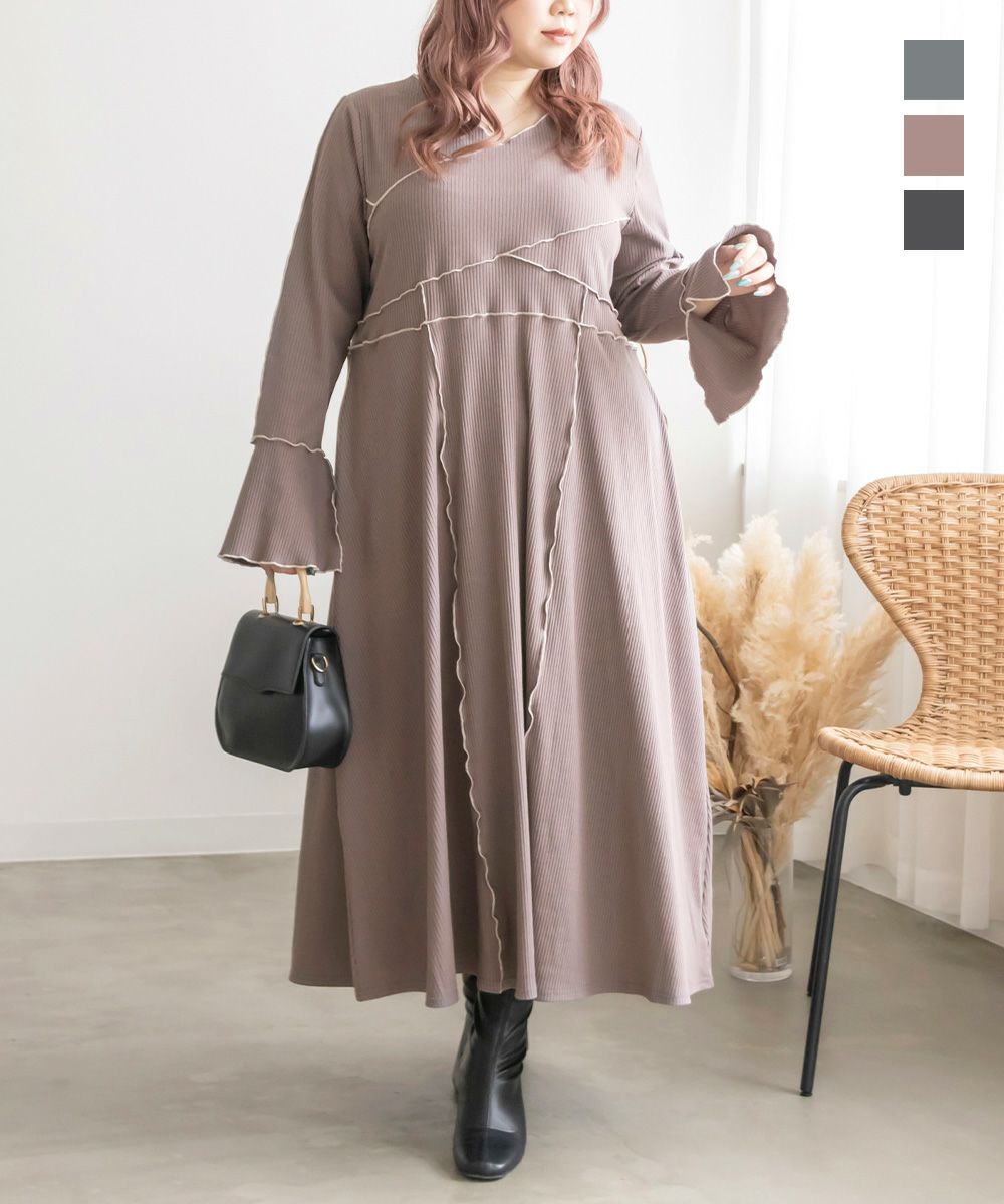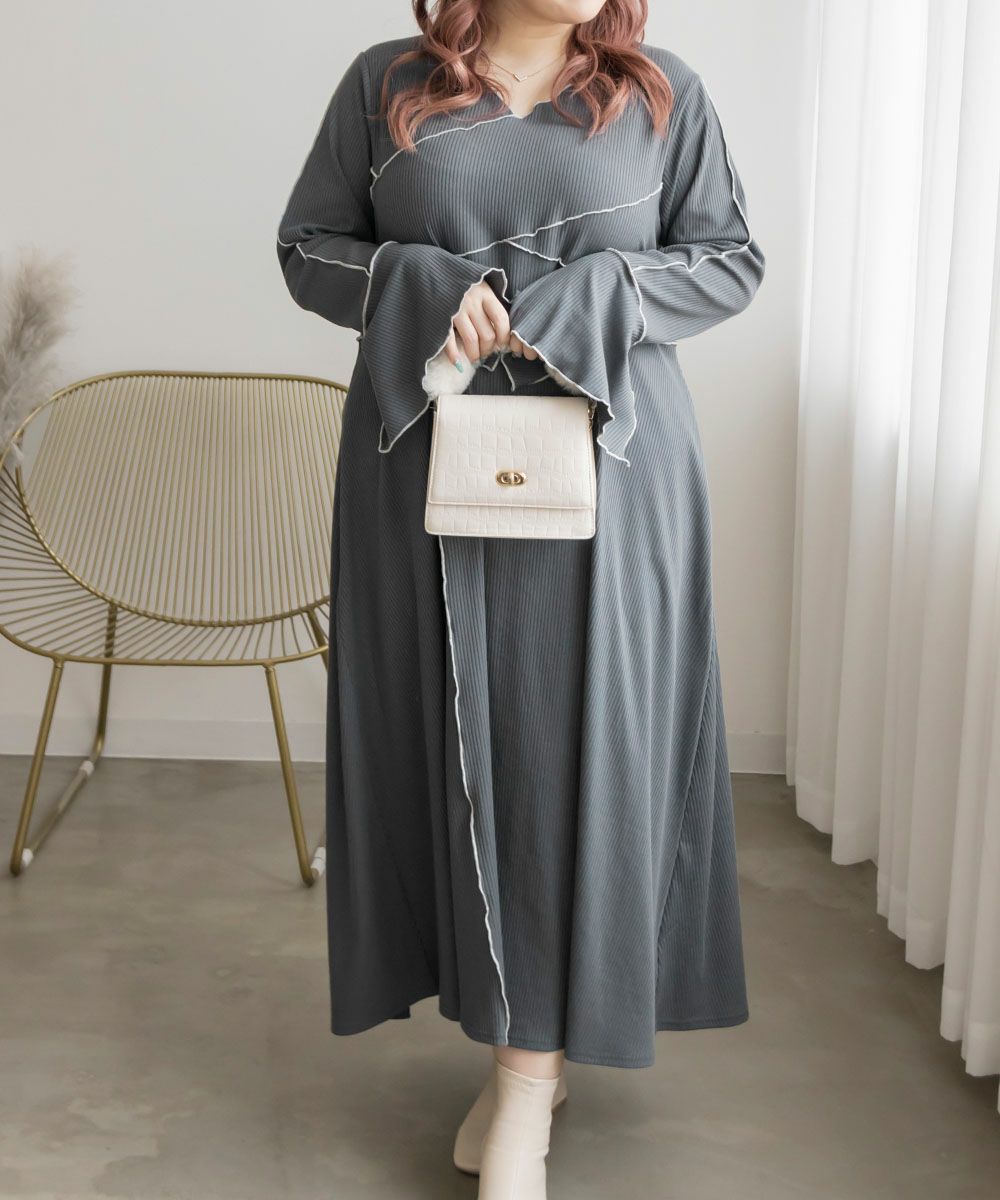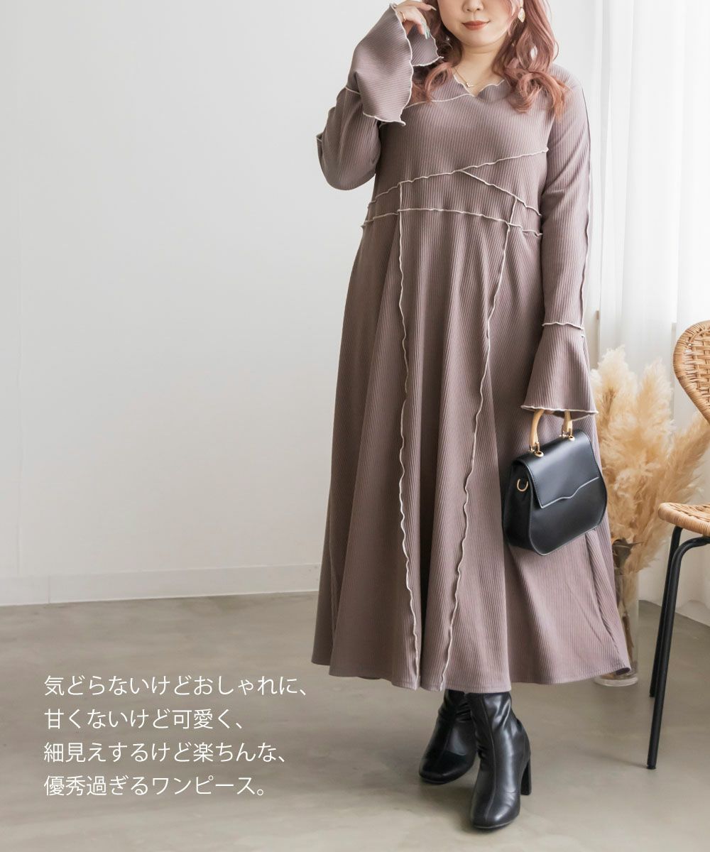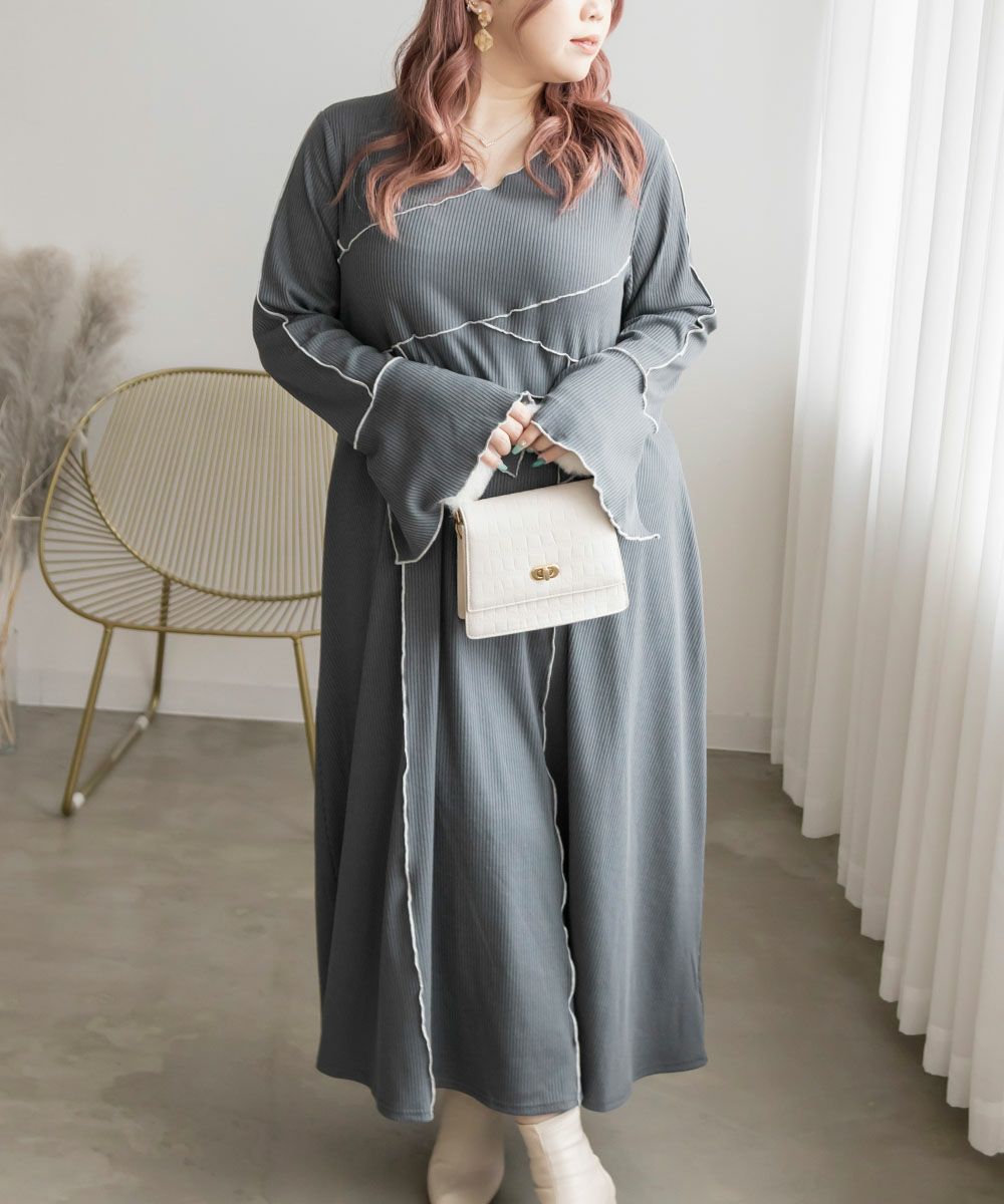 3Lを着用してちょうどいいサイズでした。伸縮性のあるリブ素材だから、着心地とっても楽ちんです!楽だけど、配色のラインのおかげですっきりと着やせできるとっても優秀なワンピース◎スリット入りの袖も可愛いです!さらっと着られておしゃれな印象になれて、真夏以外のロングシーズン使えるのもおすすめポイントです!