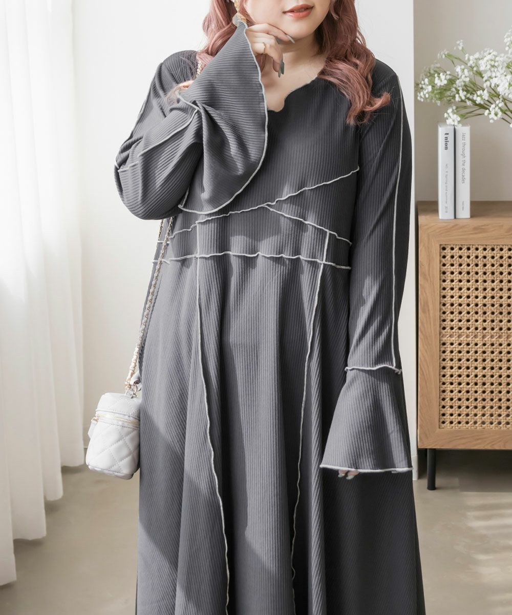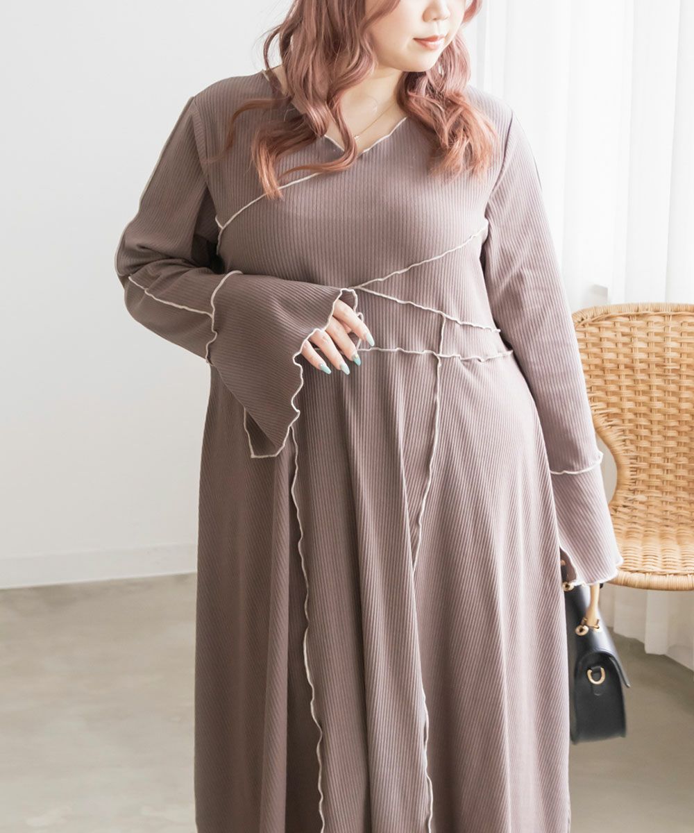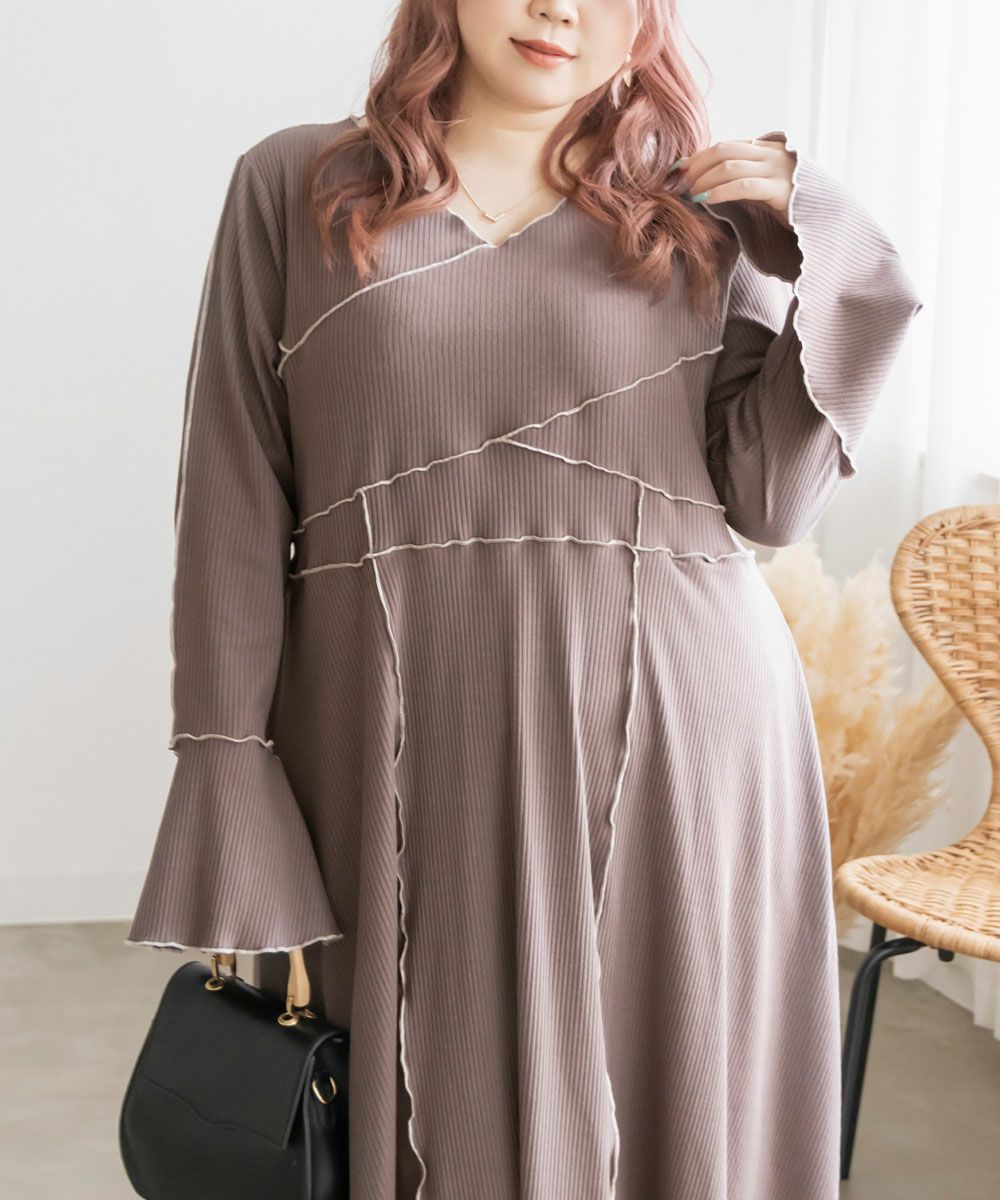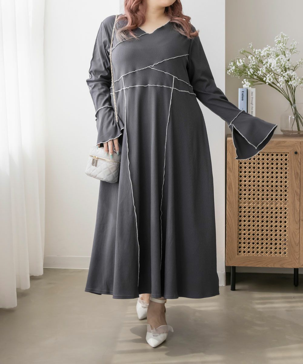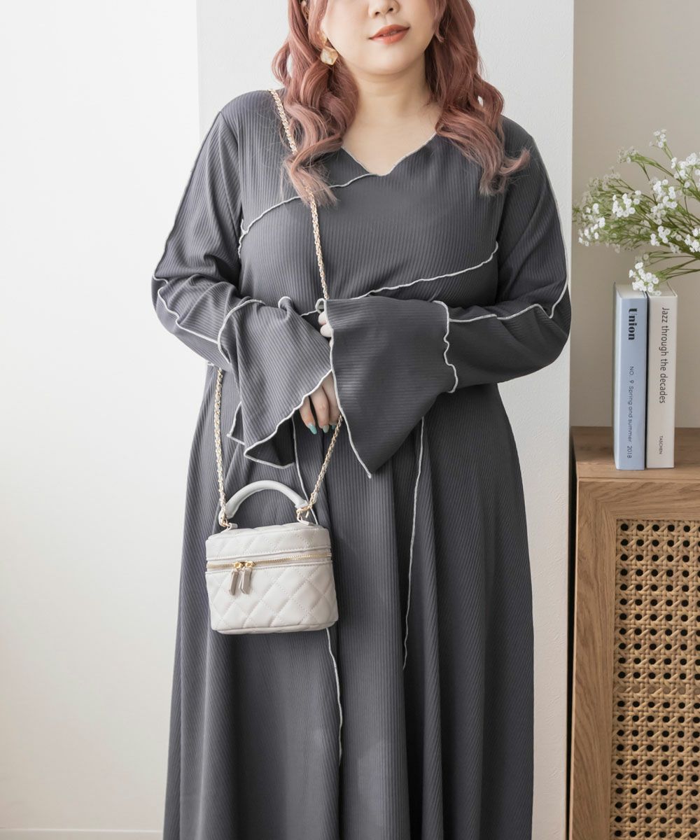 3Lを着用してちょうどいいサイズでした。伸縮性のあるリブ素材だから、着心地とっても楽ちんです!楽だけど、配色のラインのおかげですっきりと着やせできるとっても優秀なワンピース◎スリット入りの袖も可愛いです!さらっと着られておしゃれな印象になれて、真夏以外のロングシーズン使えるのもおすすめポイントです!