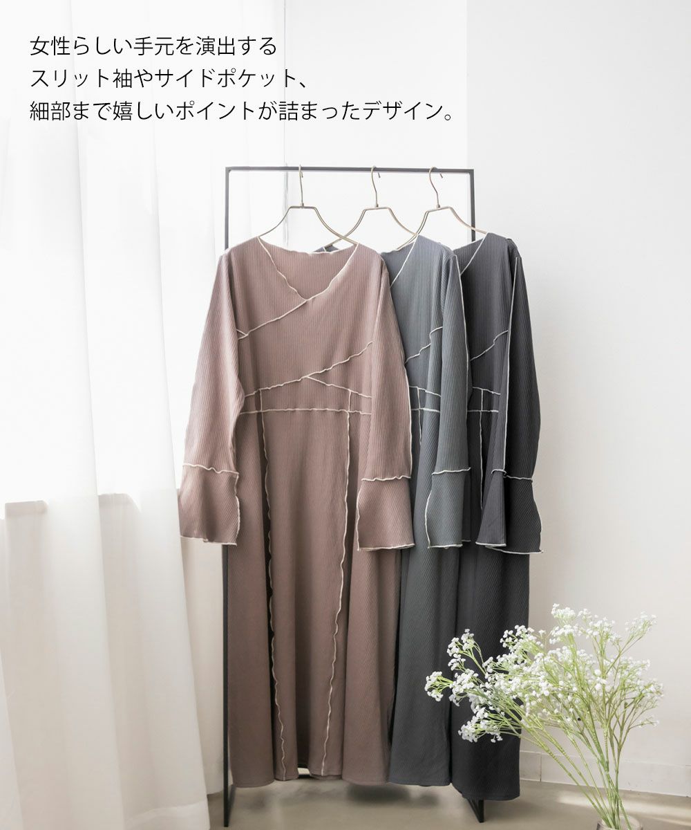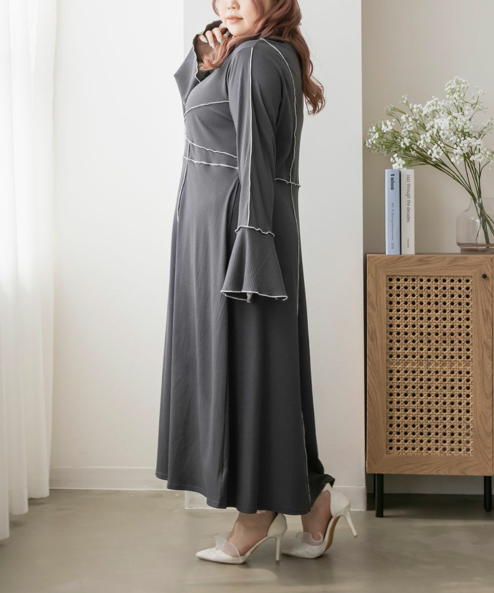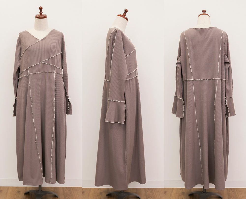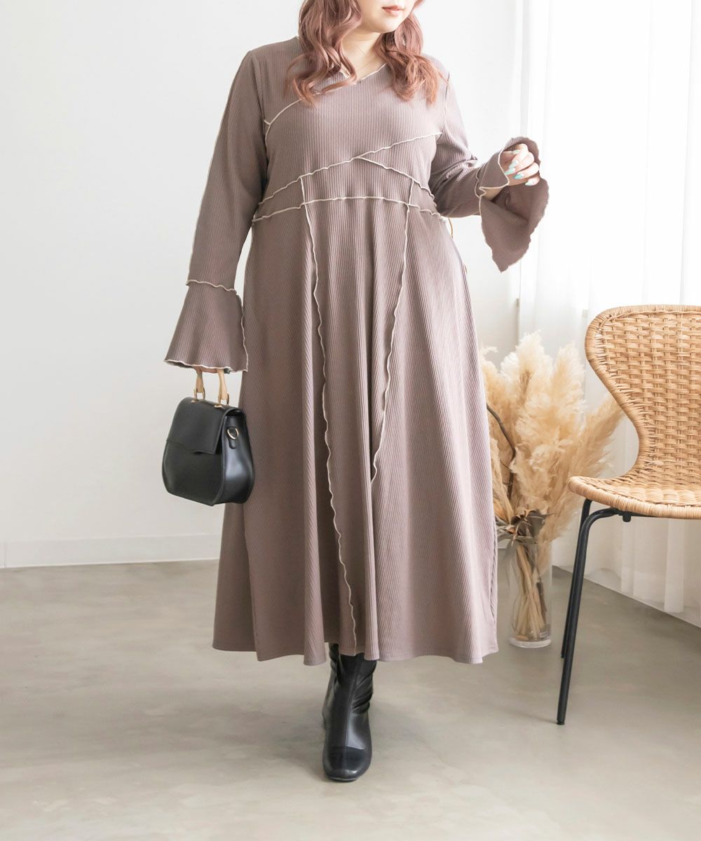 3Lを着用してちょうどいいサイズでした。伸縮性のあるリブ素材だから、着心地とっても楽ちんです!楽だけど、配色のラインのおかげですっきりと着やせできるとっても優秀なワンピース◎スリット入りの袖も可愛いです!さらっと着られておしゃれな印象になれて、真夏以外のロングシーズン使えるのもおすすめポイントです!