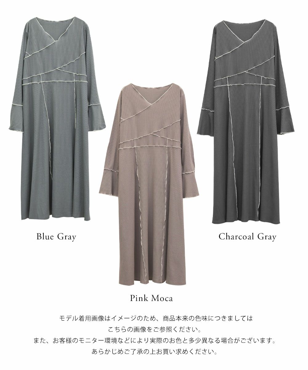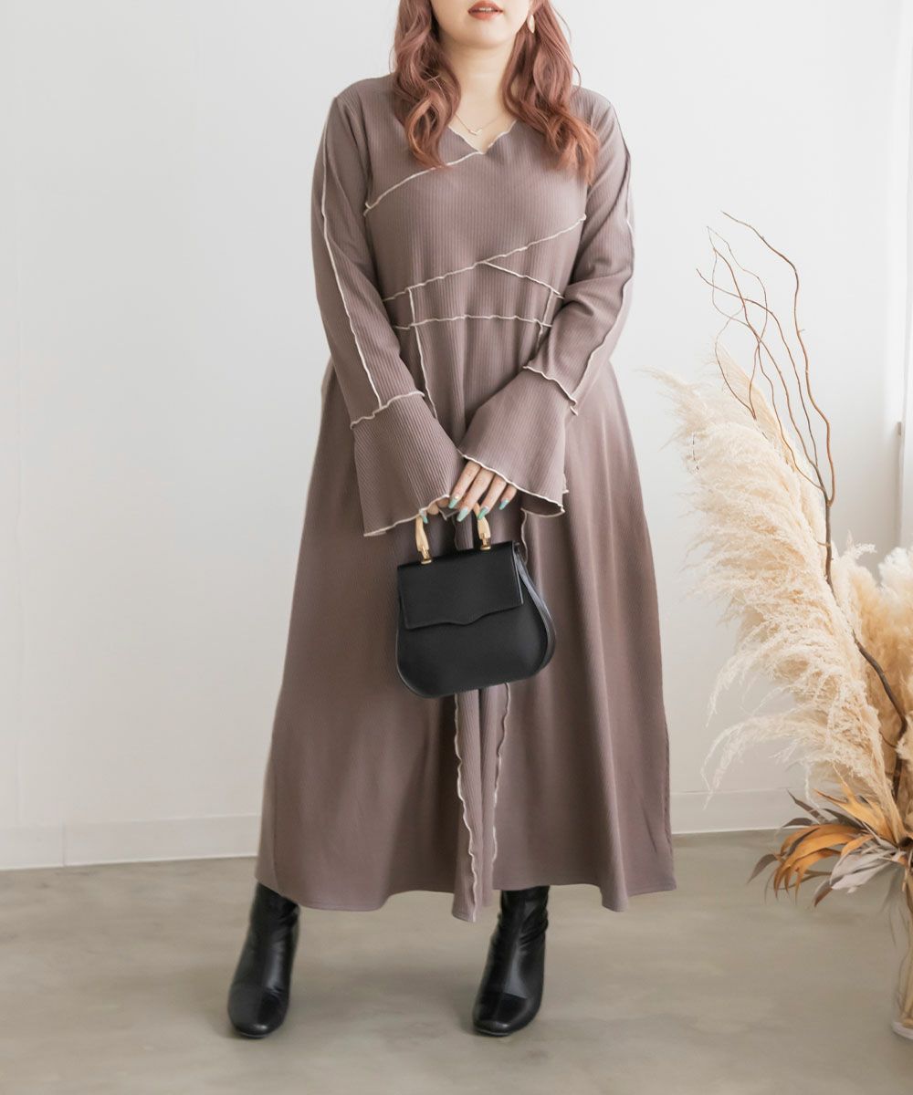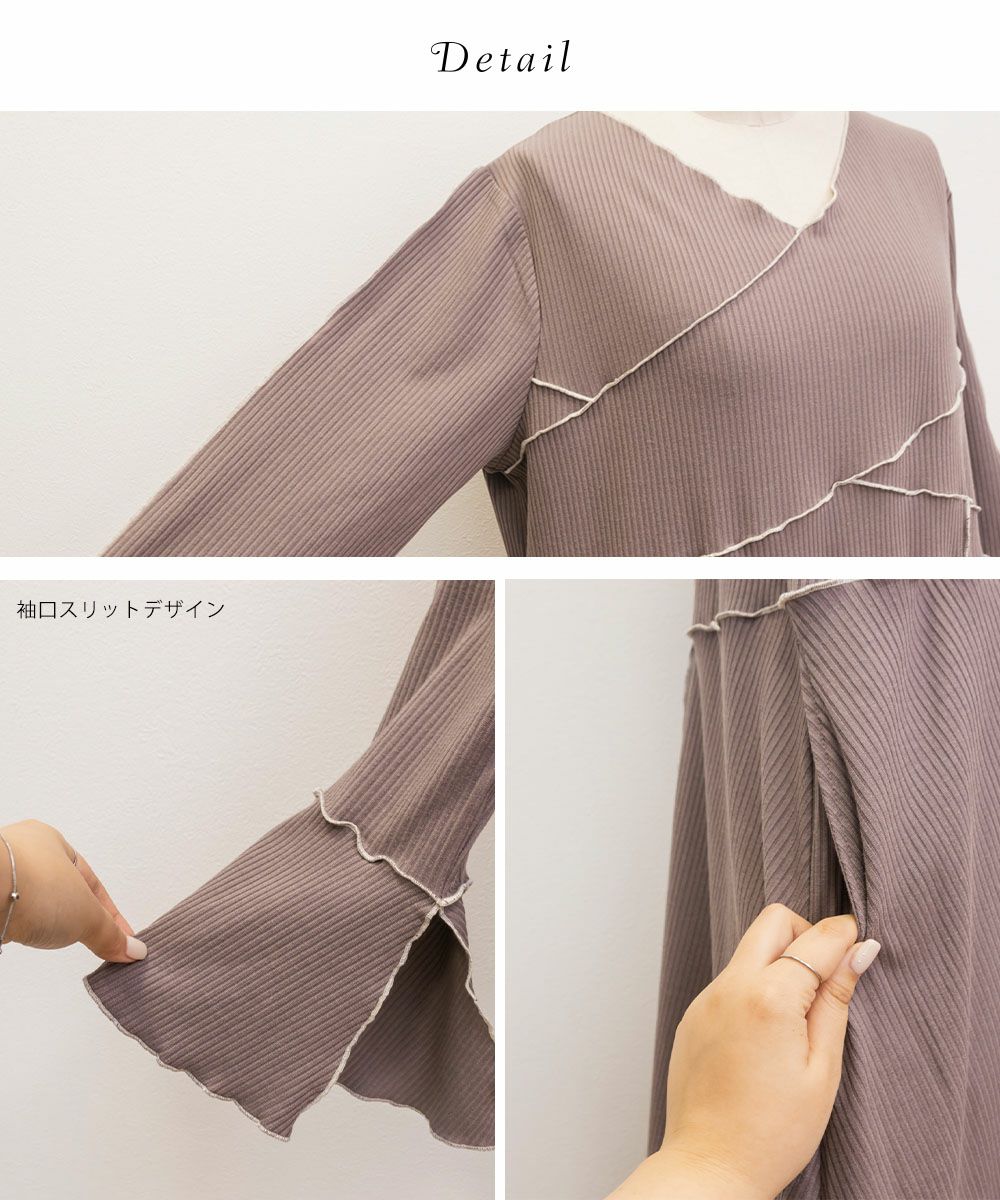 CLETTE オリジナル 配色メロー 長袖 リブ ワンピース 秋冬 トレンド ロング カジュアル トレンド クレット CLETTEオリジナル★配色メロー長袖リブワンピース