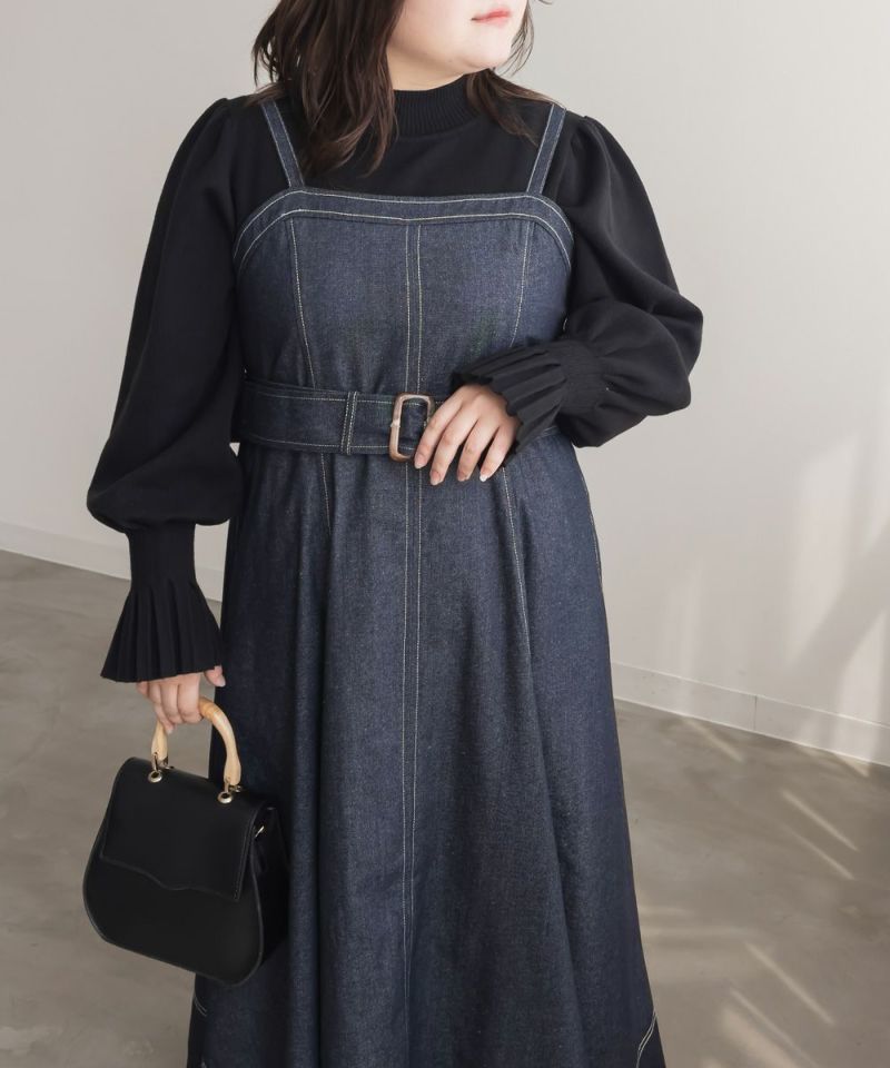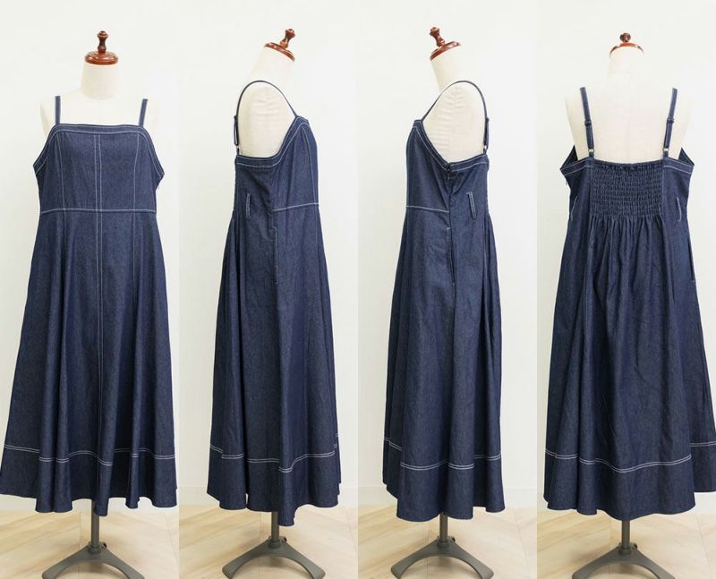 3Lを着て丁度いいサイズでした。上半身すっきりしながらお腹やお尻をしっかりカバーしてくれる着やせできるデザイン。綺麗なシルエットだけど窮屈感のない着心地だからストレスフリーにお出かけできちゃいます◎美人見えするシルエットだから、デニム生地でもカジュアルになりすぎずに大人っぽい着こなしになれます!オールシーズン使えて着映えするワンピースです♪