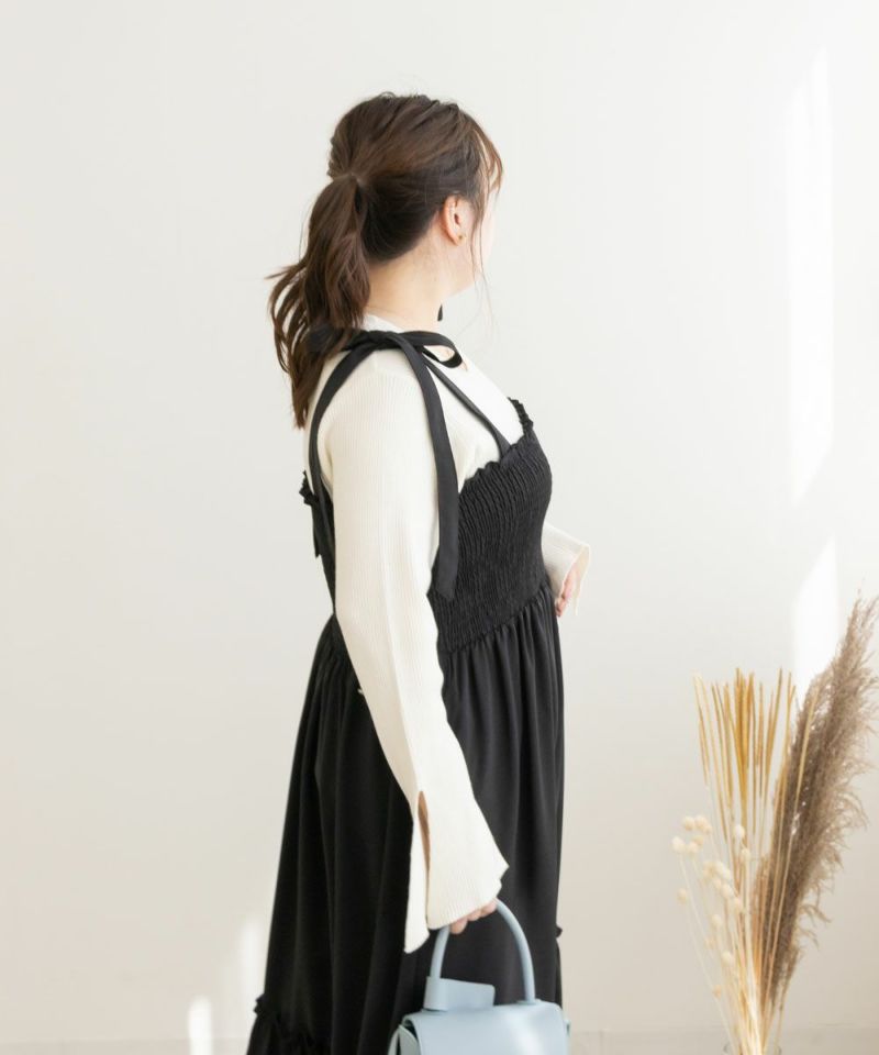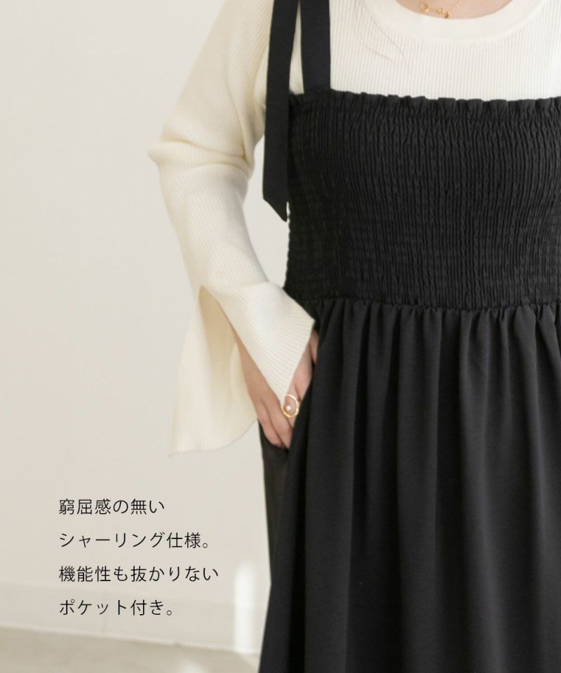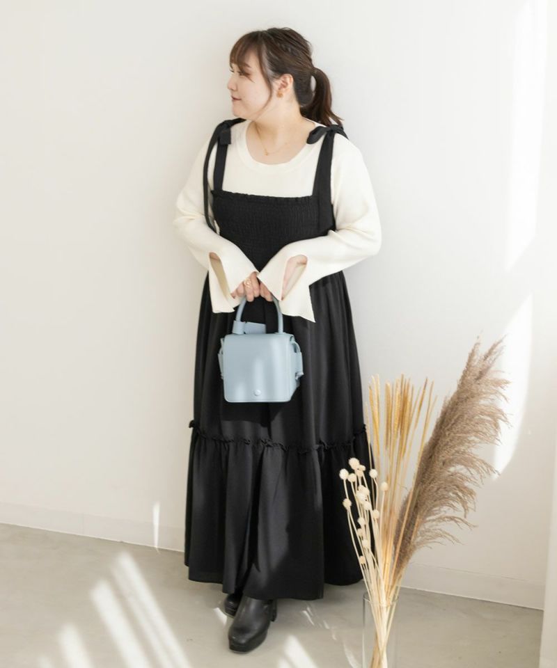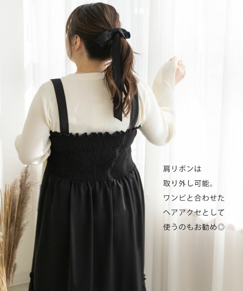 LLを着て丁度いいサイズでした。シャーリングが窮屈感なく身体にフィットして、ウエストからフレアに広がってくれるから、お腹やお尻を隠しつつ着やせできます◎肩リボンが可愛くて着映えするデザインで、リボンは取り外し可能だからスタイルに合わせてベーシックな雰囲気にもなれちゃいます。リボンを頭につけるのも可愛かったのでお勧めです!インナーを変えてロングシーズン使えるワンピースです。
