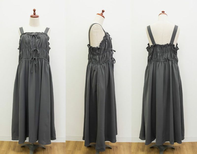 LLを着て程よいサイズ感でした!低身長の私で足首が隠れるくらいの着丈で、スニーカーと合わせても床に擦ることは無さそうでした。低身長の方も高身長の方も問題なく着ることができそうです!上半身はシャーリング仕様になっていて、伸びるので楽ちんな着心地。ギャザーがたっぷり入ったデザインが可愛くて、体型をカバーしてくれます。スカート部分はフレアに広がるので、お腹やお尻も綺麗に隠せる着やせできるワンピース!季節関係なく使える生地で、嫌みが無い好感度の高いデザインだから、デート、友達や家族とのお出かけにも、色々なシーンに着ていきたくなる1枚です♪