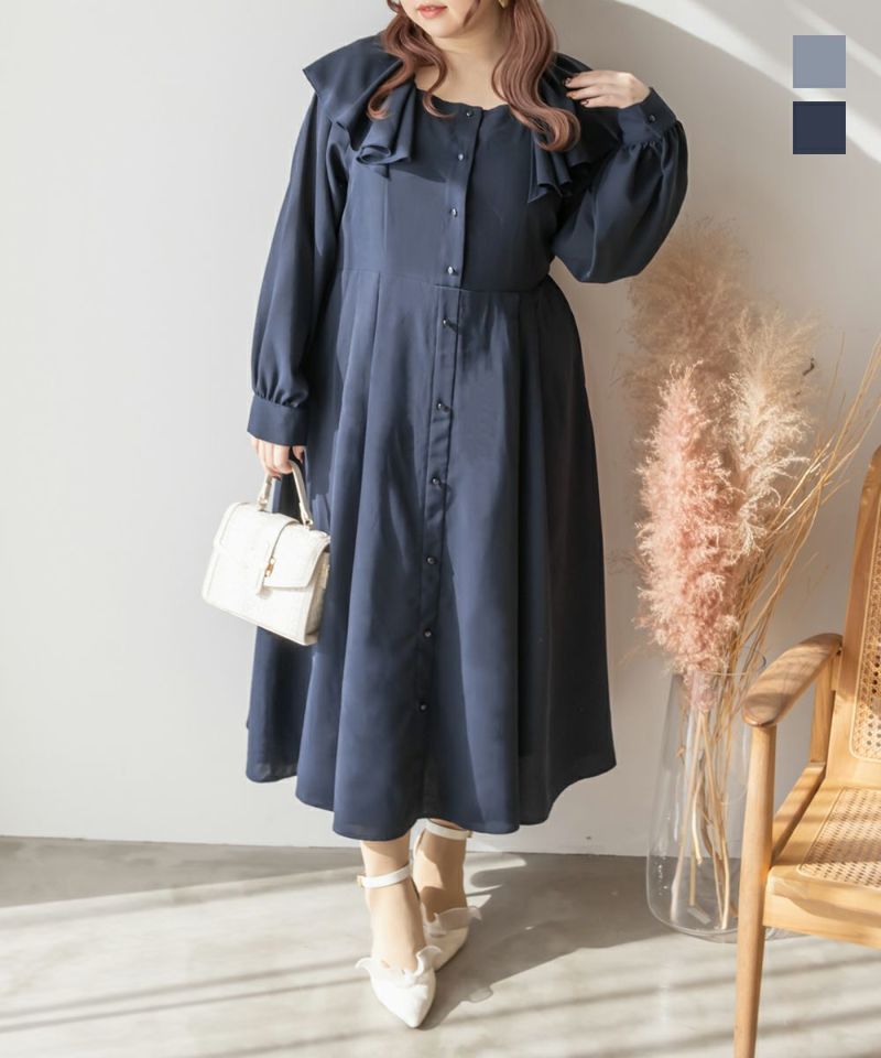 3Lを着て丁度いいサイズでした。さらりとした肌触りで真夏以外のロングシーズン着られる生地です。スクエアネックとフリルが顔回りがとてもすっきり華奢に見えました◎フェミニンさもたっぷりで、ネックレスなども映えて可愛いです♪さらっと1枚で着映えするワンピースです!