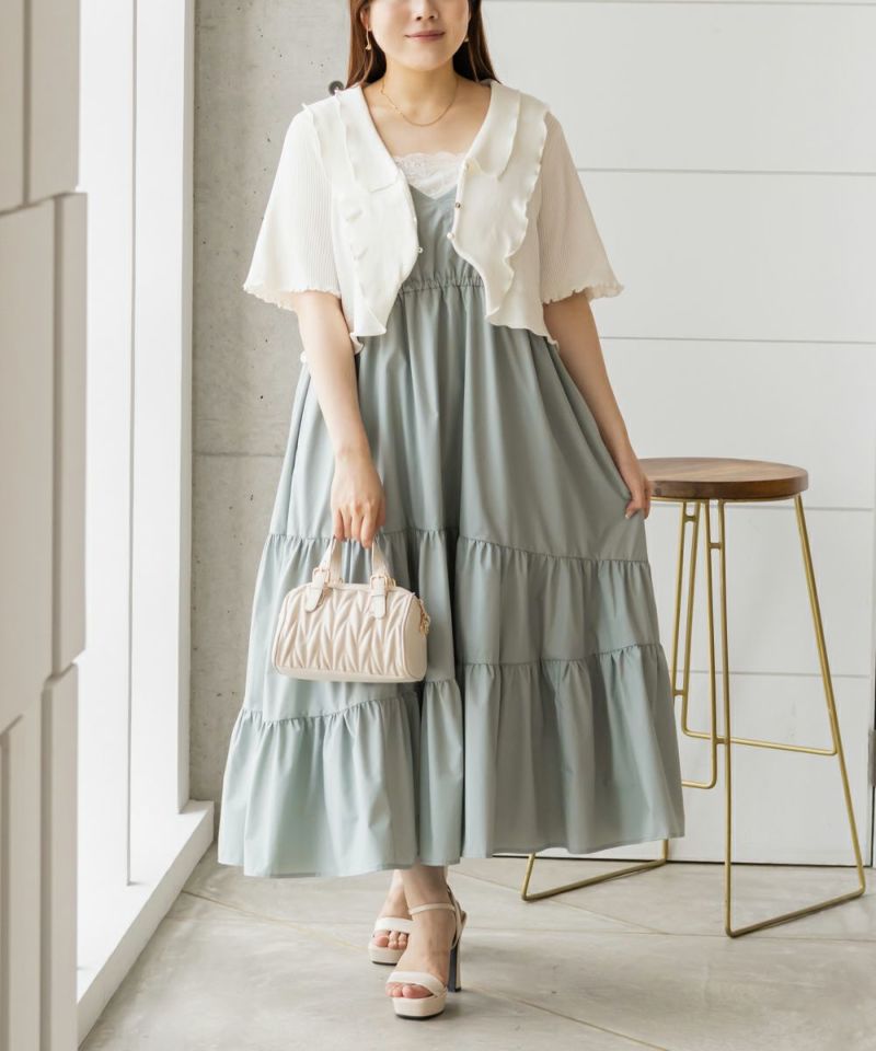 3Lサイズを着用しました。程よくゆとりを持たせたシルエット感で、厚みのあるインナーを合わせても問題なさそうです◎ 胸元の切替やギャザーで自然にメリハリが出て、バランスよく着こなせました! 斜めのティアードデザインが広がりすぎずフェミニンな雰囲気になって、シンプルなキャミワンピに飽きてきた方にもおすすめ!無地なのでインナーや小物合わせで印象チェンジしやすく、着回し力も高そうです!カラバリが可愛くて、テンションの上がるキャミワンピです♪