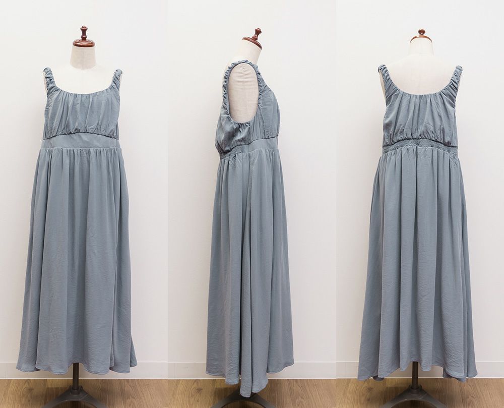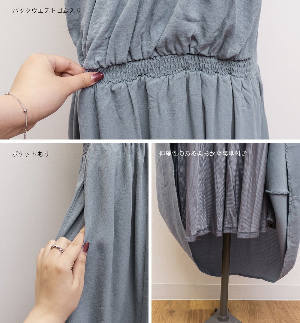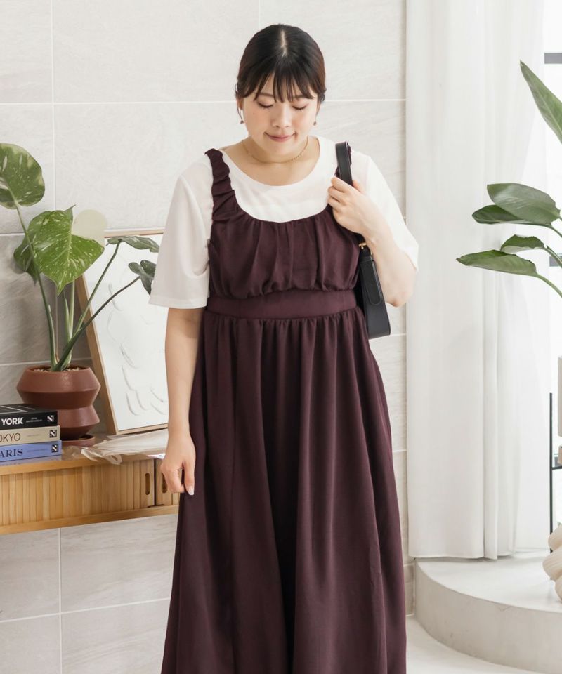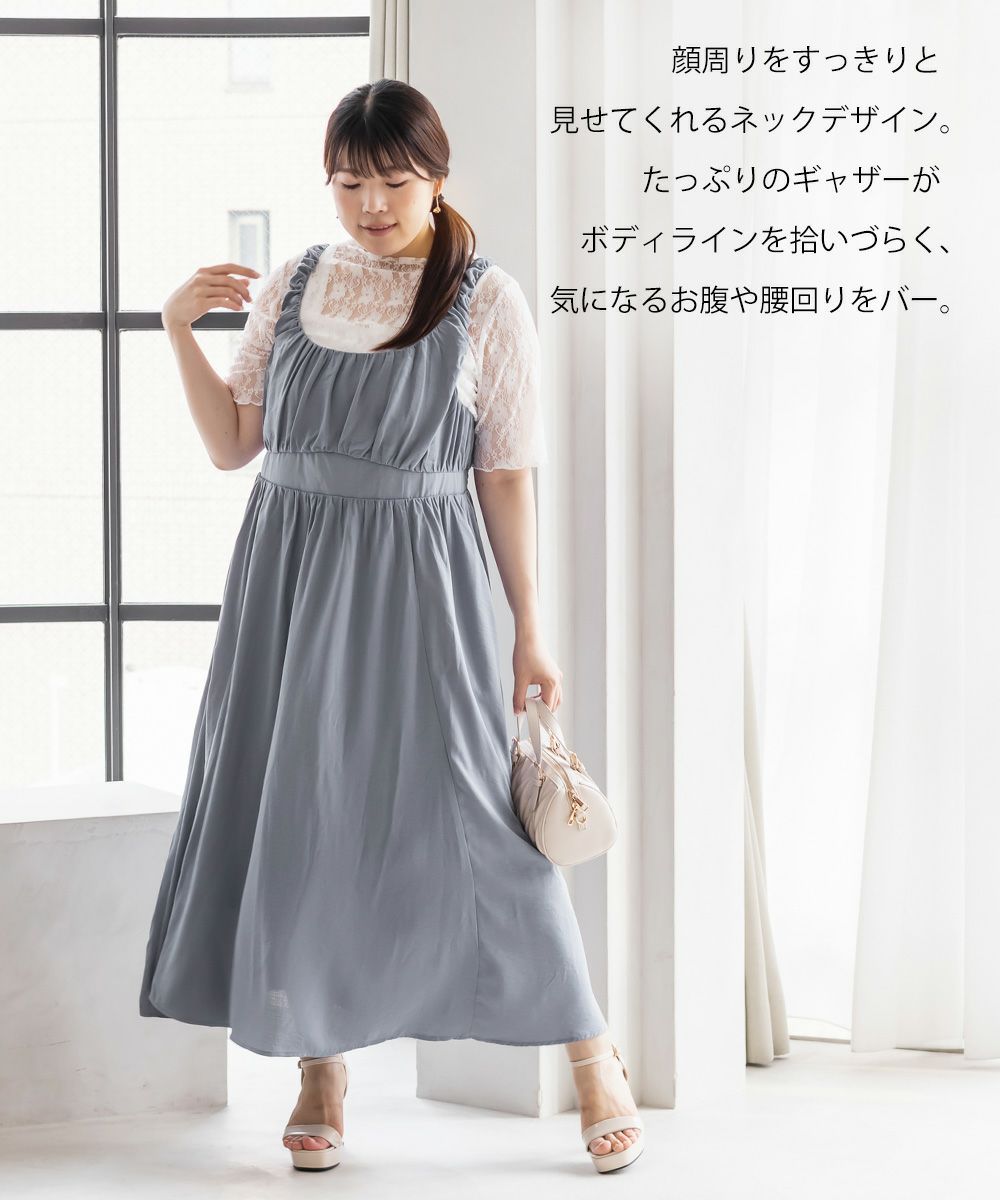 3Lサイズを着用しました。バストはゴムが無かったので、心配な方はサイズ確認をお勧めします◎ ノースリーブでも脇が開きすぎていないので、1枚でも安心して着用できました。ギャザーがたっぷりでボディラインを拾いにくいデザインが嬉しいです! 1枚でもインナーを重ねも使えて着回しが効くアイテムです!大人っぽいデザインとカラバリでこなれ感のあるスタイリングにぴったり!