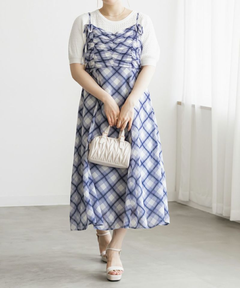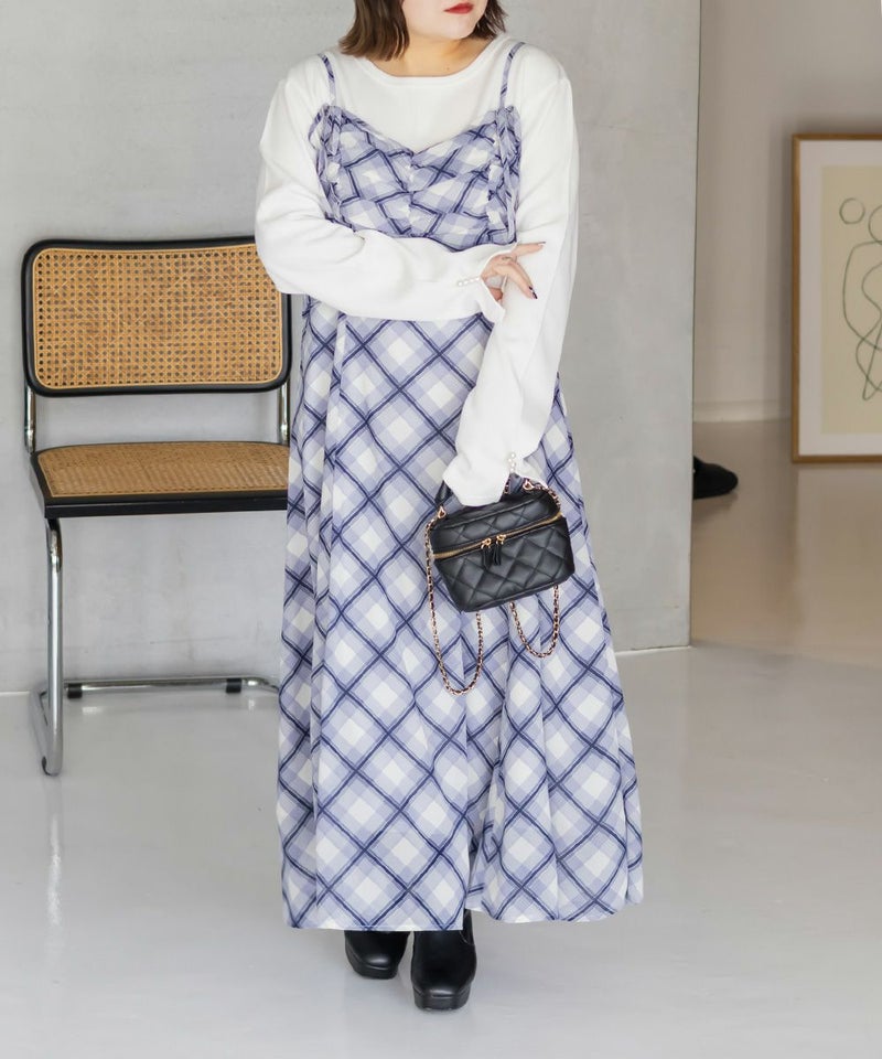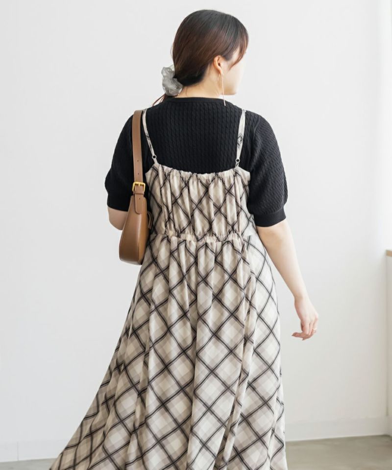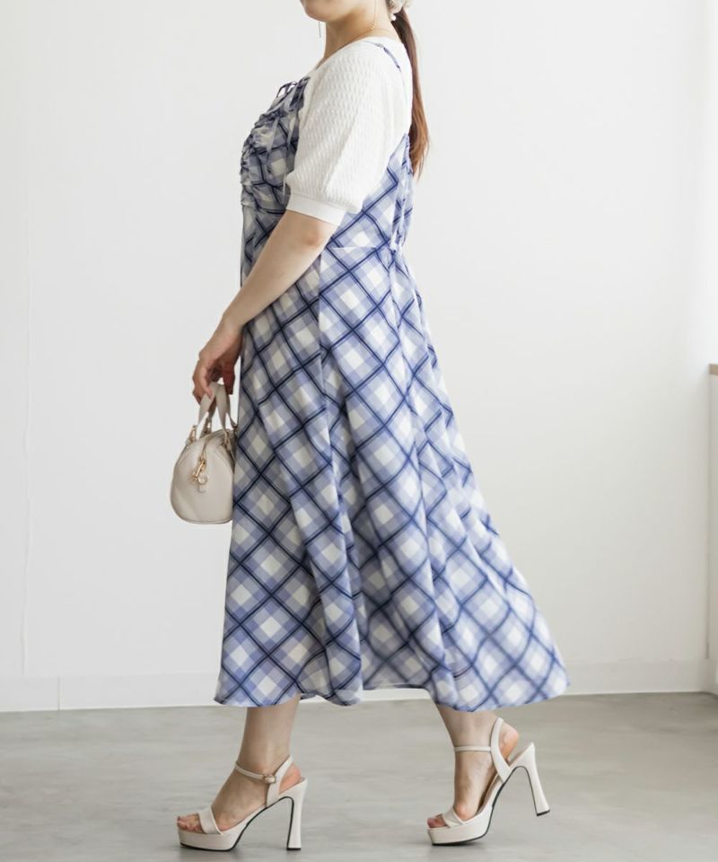 3Lサイズを着用して、身幅やウエストまわりもほどよくゆとりがあり、リラックスして着られました◎すっきりとしたシルエットだけど綺麗に広がるデザインが体のラインを拾わず、動くたびに軽やかに揺れてとても華やか♪シフォンの透け感とさりげないチェック柄が、大人の甘さをプラスしてくれます!肩紐の長さ調整ができるので、好みの丈感に合わせられて安心感も◎Tシャツやブラウスを重ねれば、ロングシーズン着回せそうな優秀アイテムです!