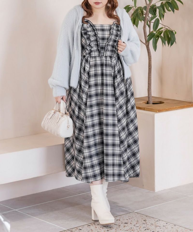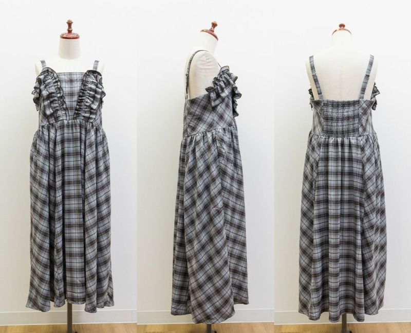 CLETTEオリジナルフリルデザインチェック柄キャミワンピース CLETTEオリジナルフリルデザインチェック柄キャミワンピース