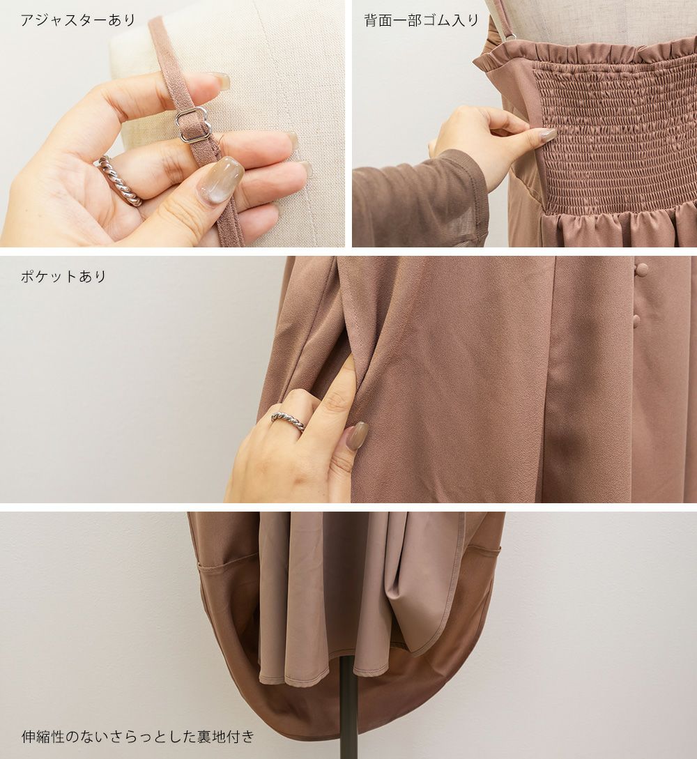 3Lを着てほどよいゆとりがあり、ちょうどいいサイズ感で着られました♪ 肩紐は調節できるので、身長やインナーに合わせてバランスよく着こなせます。 胸元のフリルが女性らしさを引き立ててくれるデザイン◎顔回りも華やかな印象です。 インナー次第でオールシーズン着回せる生地感で、重ね着してもすっきり見えるシルエットです。 シンプルながら華やかさもあり、着るだけで気分が上がる1枚です。