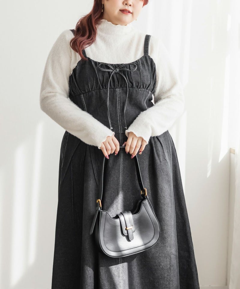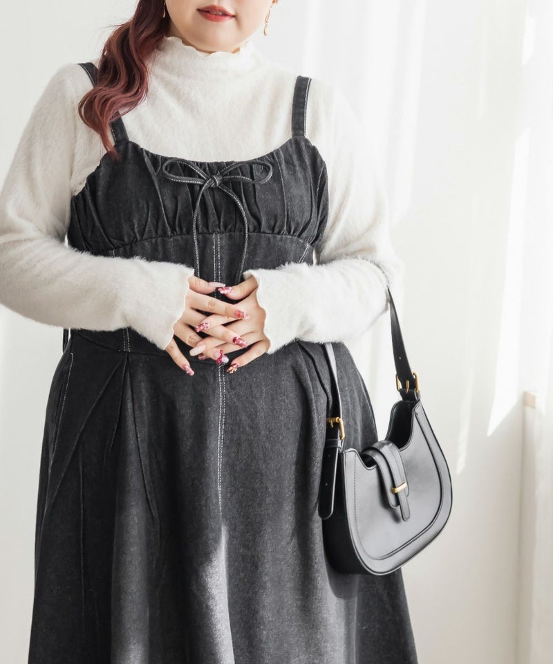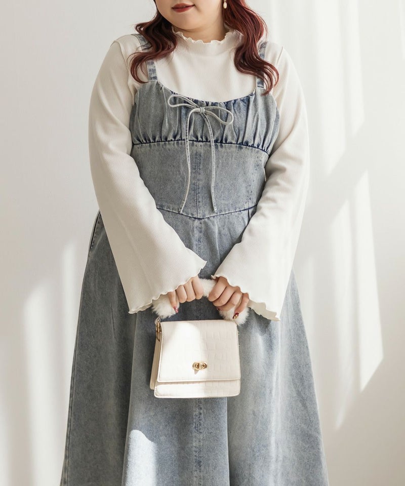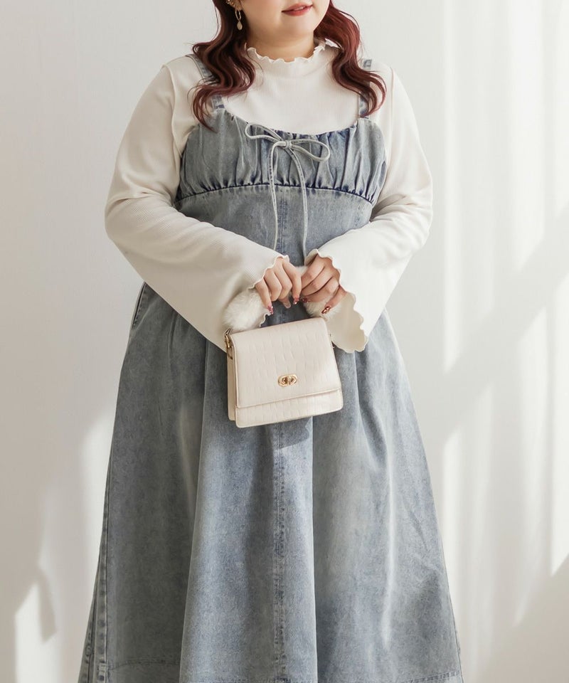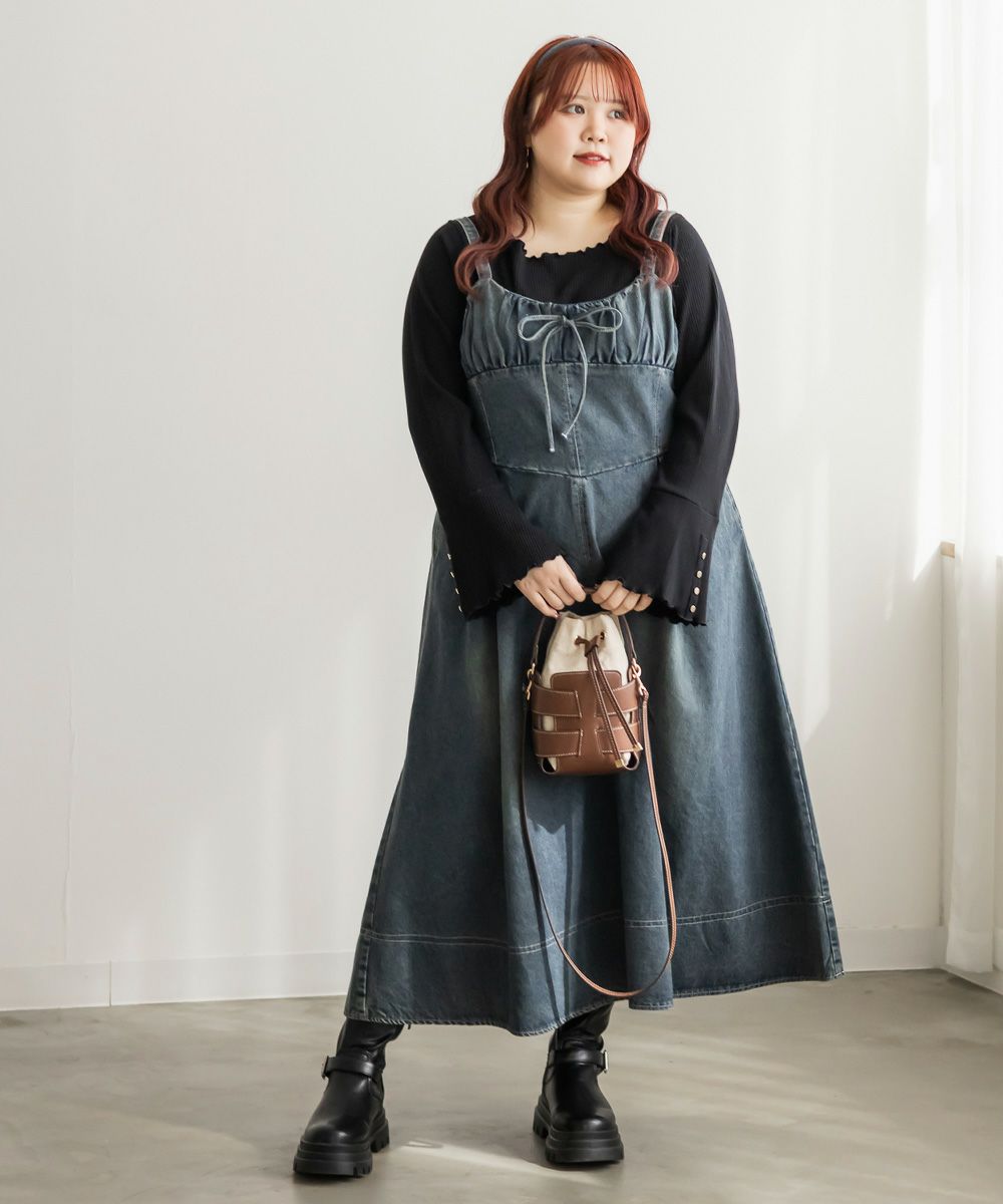 オールシーズン着られるデニム生地だから、インナーを変えて色々な着回しができるのがジャンスカワンピースの嬉しい所です。夏はTシャツ、春はシアーインナー、秋は襟付きシャツ、冬はタートルニット..などなど、インナー次第で全く違ったスタイリングが完成します。スニーカーでも、フラットシューズ、ヒールシューズでもどんな靴にも合わせられます。