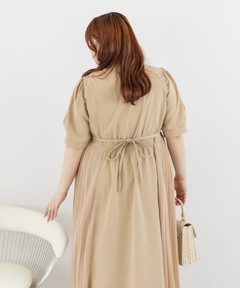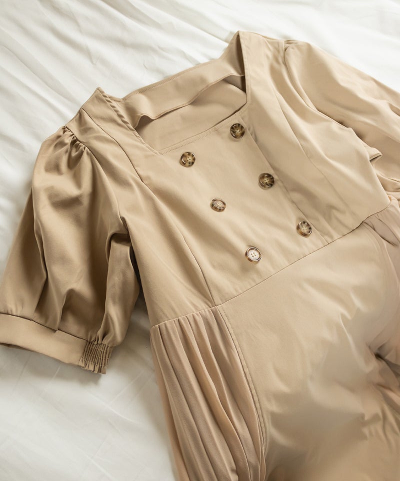【design】練されたデザインが女性らしさを引き立てるトレンチ風ワンピース。サイドプリーツが動くたびに揺れ、フェミニン要素をプラス。後ろウエストのリボンが調整可能なので、絞ると細見えを叶えてくれる。【material】落ち感のある布帛素材。サイドプリーツ部分のみ伸縮性のある裏地付き。【styling】レザー調バッグと合わせればシックで上品な雰囲気に、柔らかな印象の小物と合わせればフェミニンな雰囲気にも着こなせます。