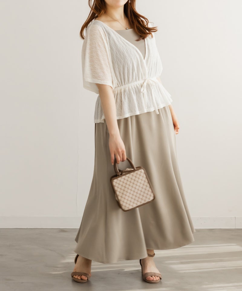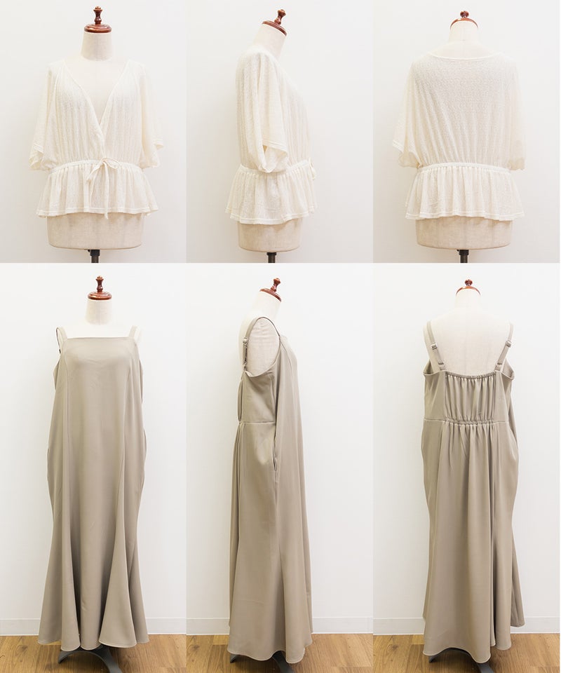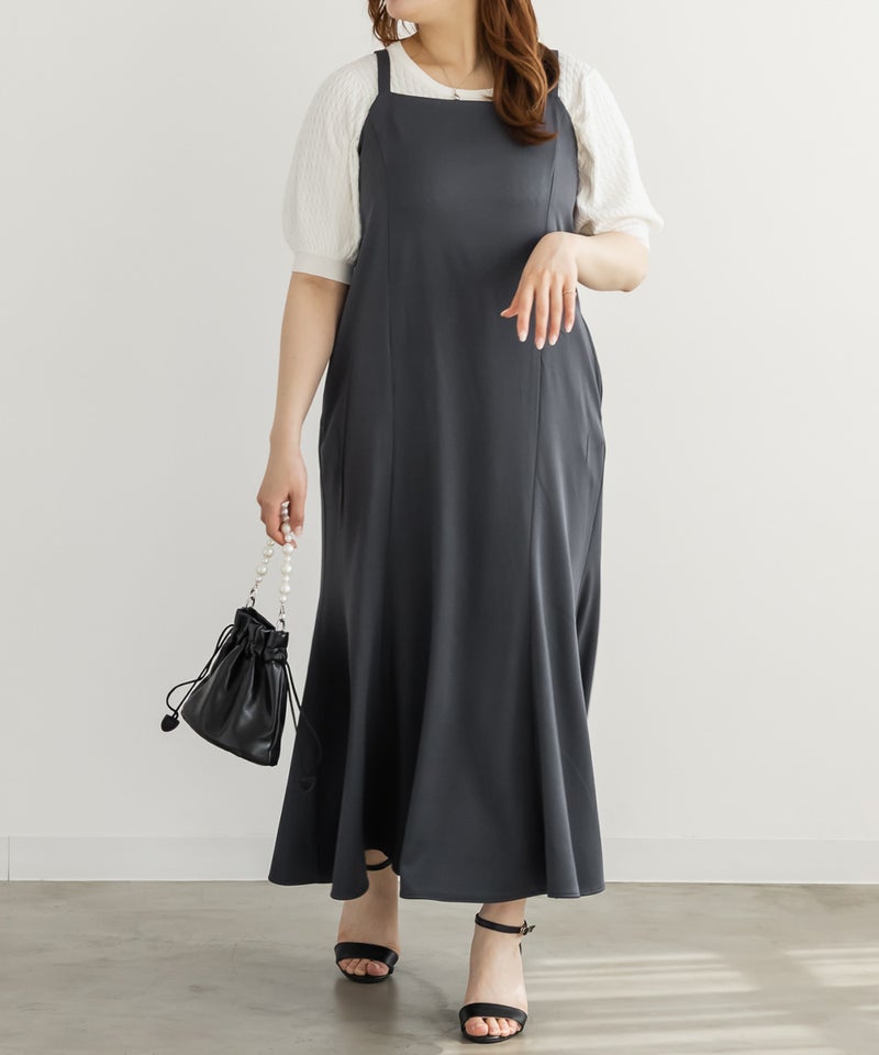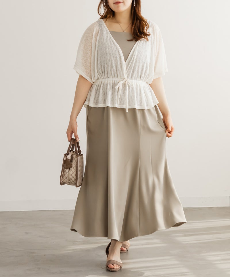 3Lを着て丁度いいサイズ感でした。オールシーズン着れるような生地のキャミワンピに、レーストップスのセットアイテムです。1セット買うだけでそれぞれ別々にも使えて便利です!トップスはシアー感があってさらっとしていて真夏にもぴったりです◎着心地も楽で、きちんと感のあるコーデが簡単に完成します。