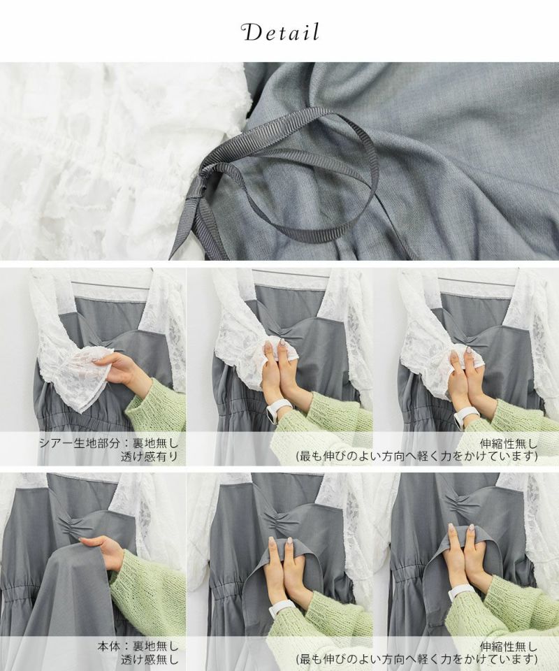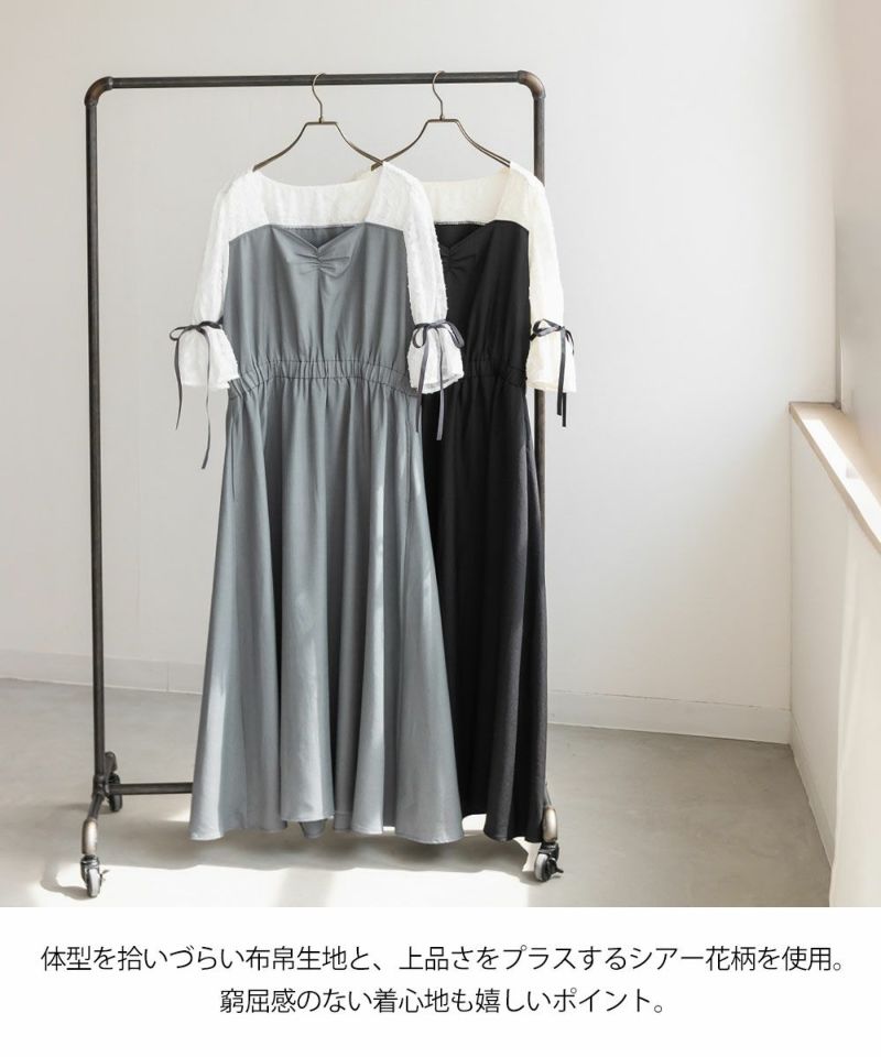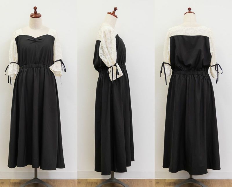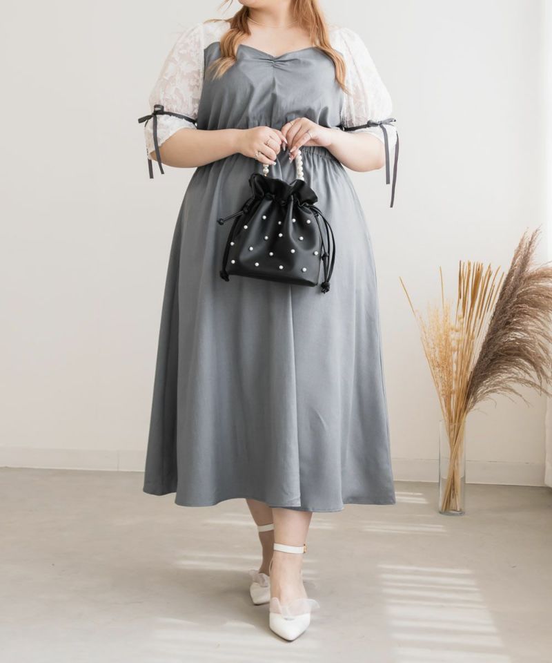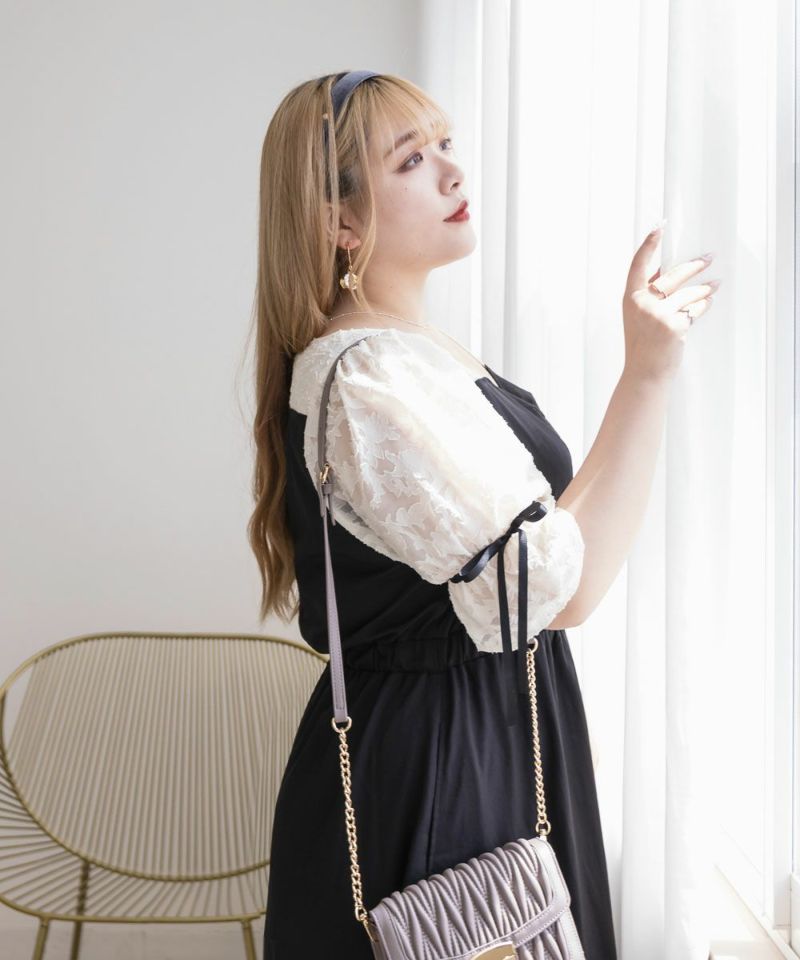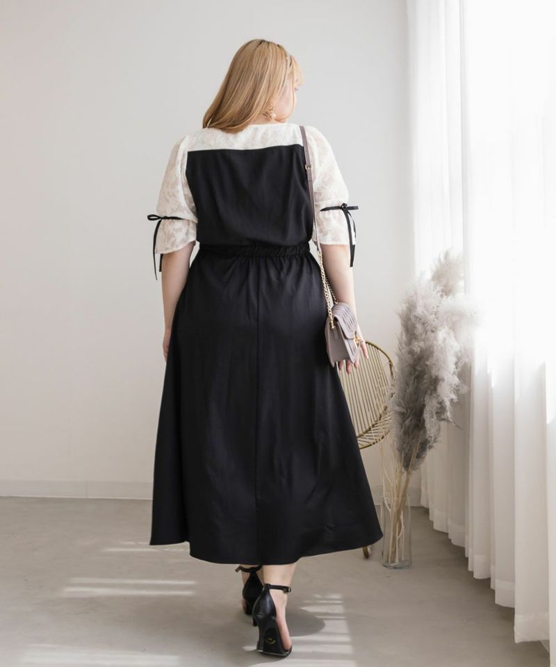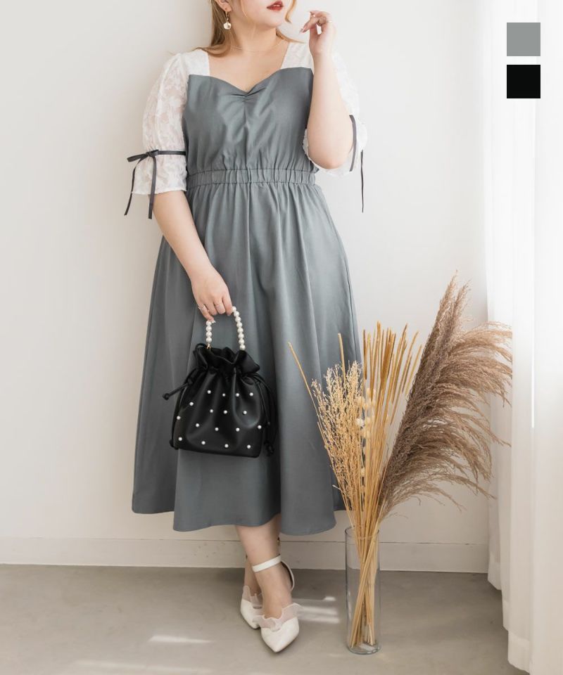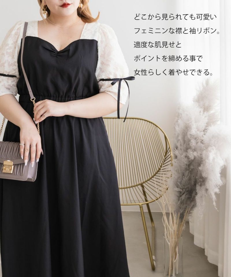 3Lを着用して程よいサイズ感でした。いつも通りのサイズ選びで問題なさそうです!ウエストがゴムになっていて、窮屈感なく着ることができます。フィット&フレアシルエットで綺麗に広がるデザインだから、おなかや腰回りなど、気になる部分をしっかり体型カバーしてくれます!一人で着るときは袖にリボンは着用前に少しだけゆるめに結んでおいて、袖を通すのがお勧めです◎肩部分の生地は2枚重ねになっていて透けすぎないので、インナーに悩むことなく着られるかと思います!デートやお出かけに着ていきたくなる、フェミニンなワンピースです♪