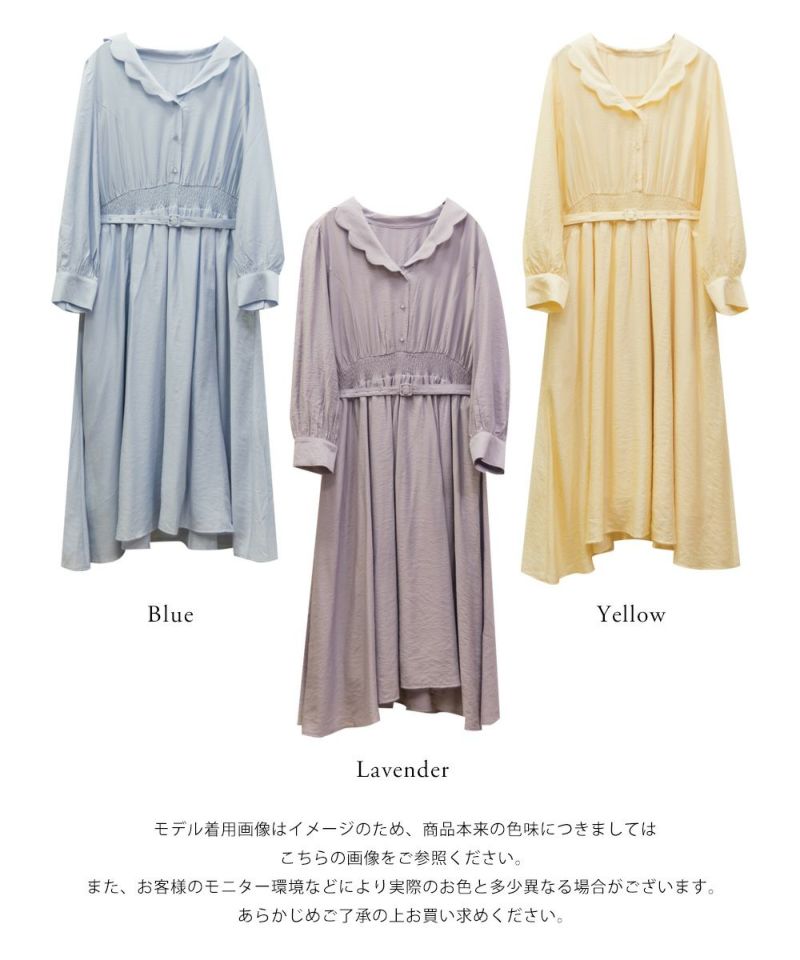 3Lサイズを着用してちょうどいいサイズ感でした。ウエストはシャーリングゴムになっていて着心地とってもらくちんでした!同色の細ベルトがついていて大人かわいい1枚です!キュッとしたウエストからフレアに広がるスカートがひらひら揺れてフェミニンな印象です。韓国っぽいシャツ襟が今っぽくて1枚で着映えるワンピース!程よく薄手の生地なので、秋~春までたくさん使えます!デートやお出かけにお勧めのワンピースです♪