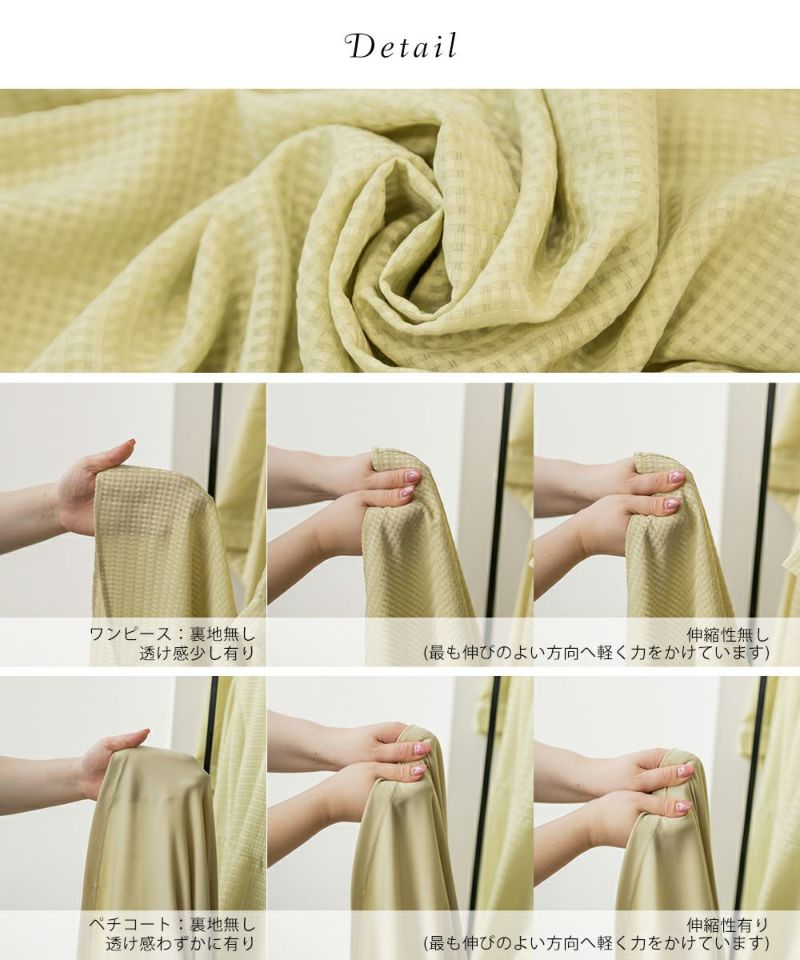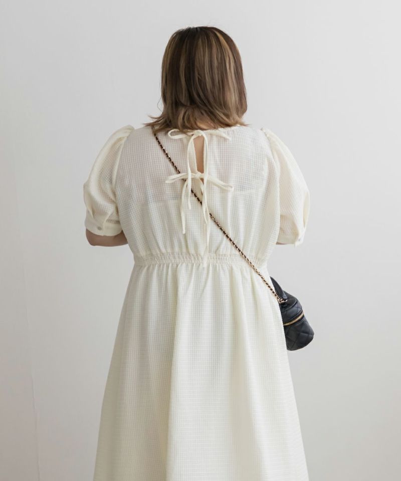 LLサイズを着用していつも通りのサイズ感で着用出来ました!後ろリボンは自分で結ぶ仕様だけど、すっきり開いたネックで着脱もらくらくできました!大人っぽく洗練されたシンプルなデザインで、春夏のお出かけにピッタリです!生地のチェック柄は可愛いだけじゃなくシワになりにくい感じだったのも嬉しいです♪ペチコートもセットでついているので、一緒に着用して透け感も心配なかったです◎すっきり見えるように計算されたディティールなので着?せ効果も感じました!