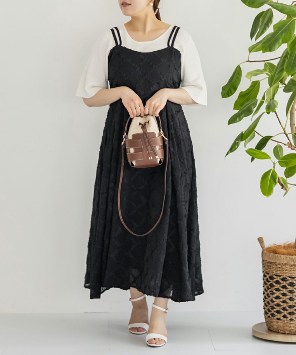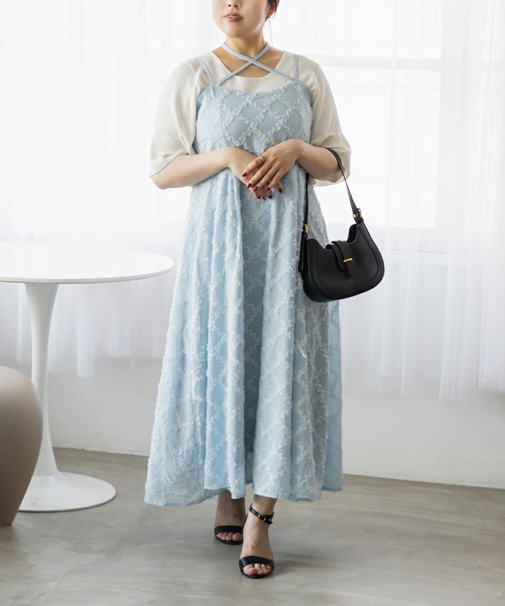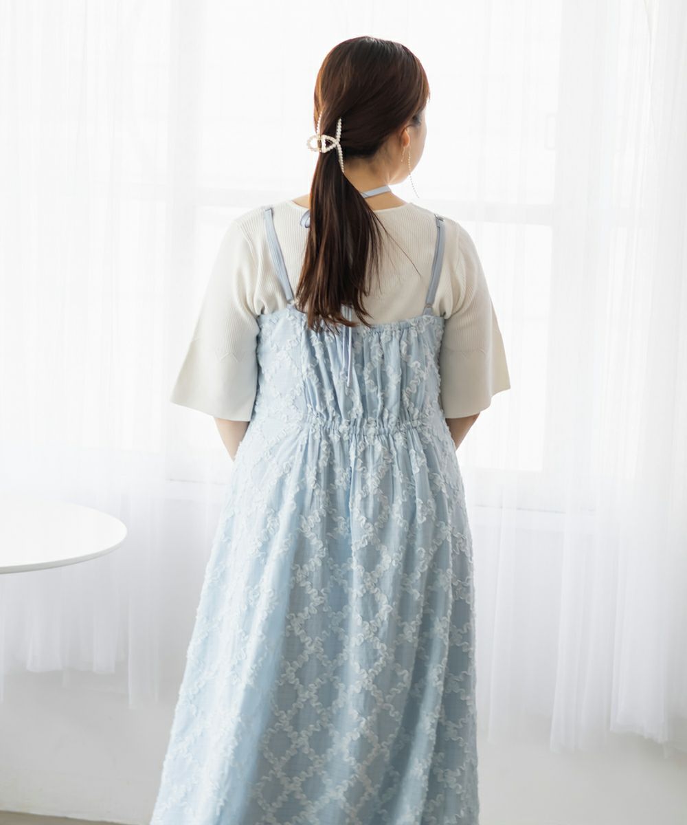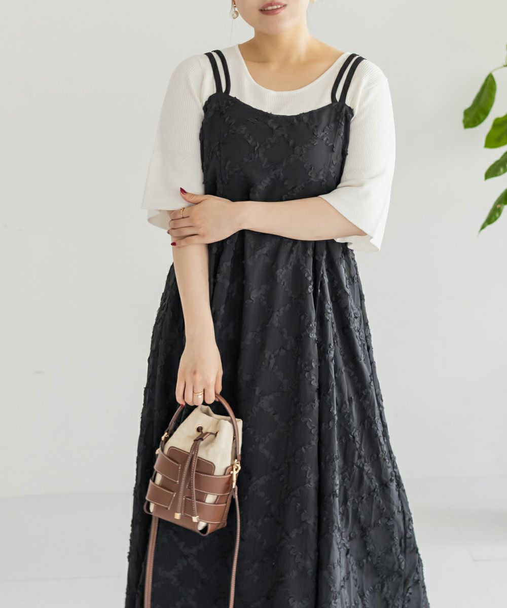 3Lサイズを着用しましたが、後ろはゴムでバストやウエストまわりに程よいゆとりがあり、全体的にちょうどいい着心地でした◎ チェックになったフリルの生地が可愛くて甘すぎず大人っぽい雰囲気で、カットソーやブラウスとのレイヤードも楽しめます!スカート部分はふんわりと広がり、気になる腰まわりやヒップも自然にカバーしてくれるシルエットでした!ダブルストラップになっていて、1つは自由にネックラインを変えられる仕様です。ホルターネックやクロスネックにして雰囲気が変えられるのもポイントです!オールシーズン使用できるのであると嬉しい1枚!お出かけやデートにピッタリな可愛いキャミワンピースです♪