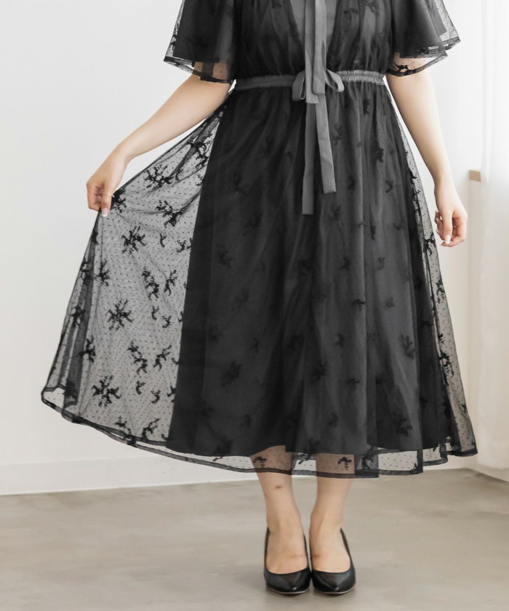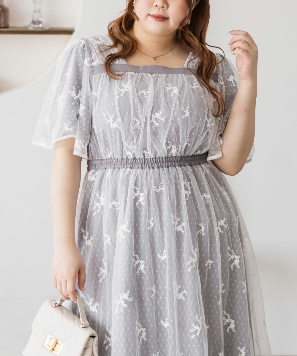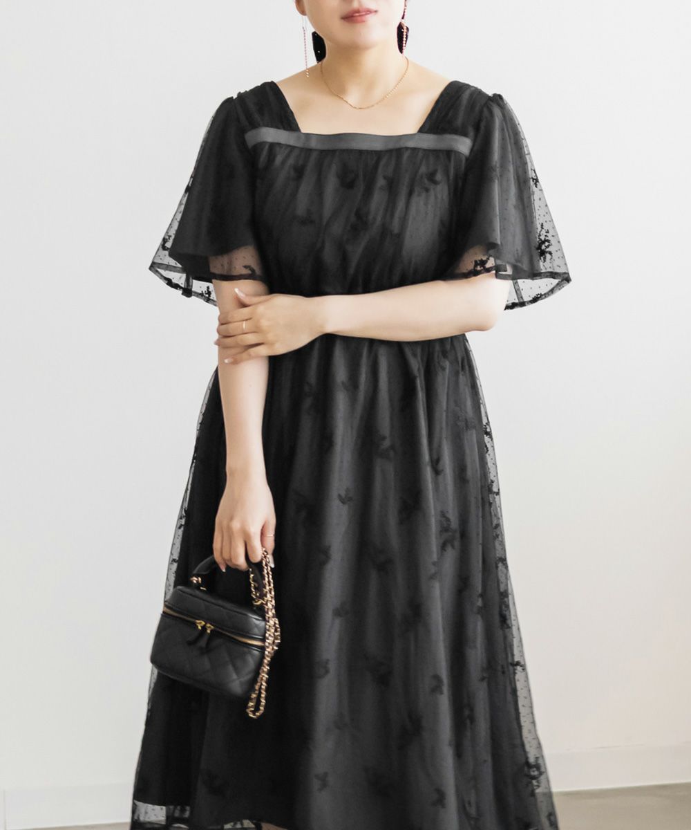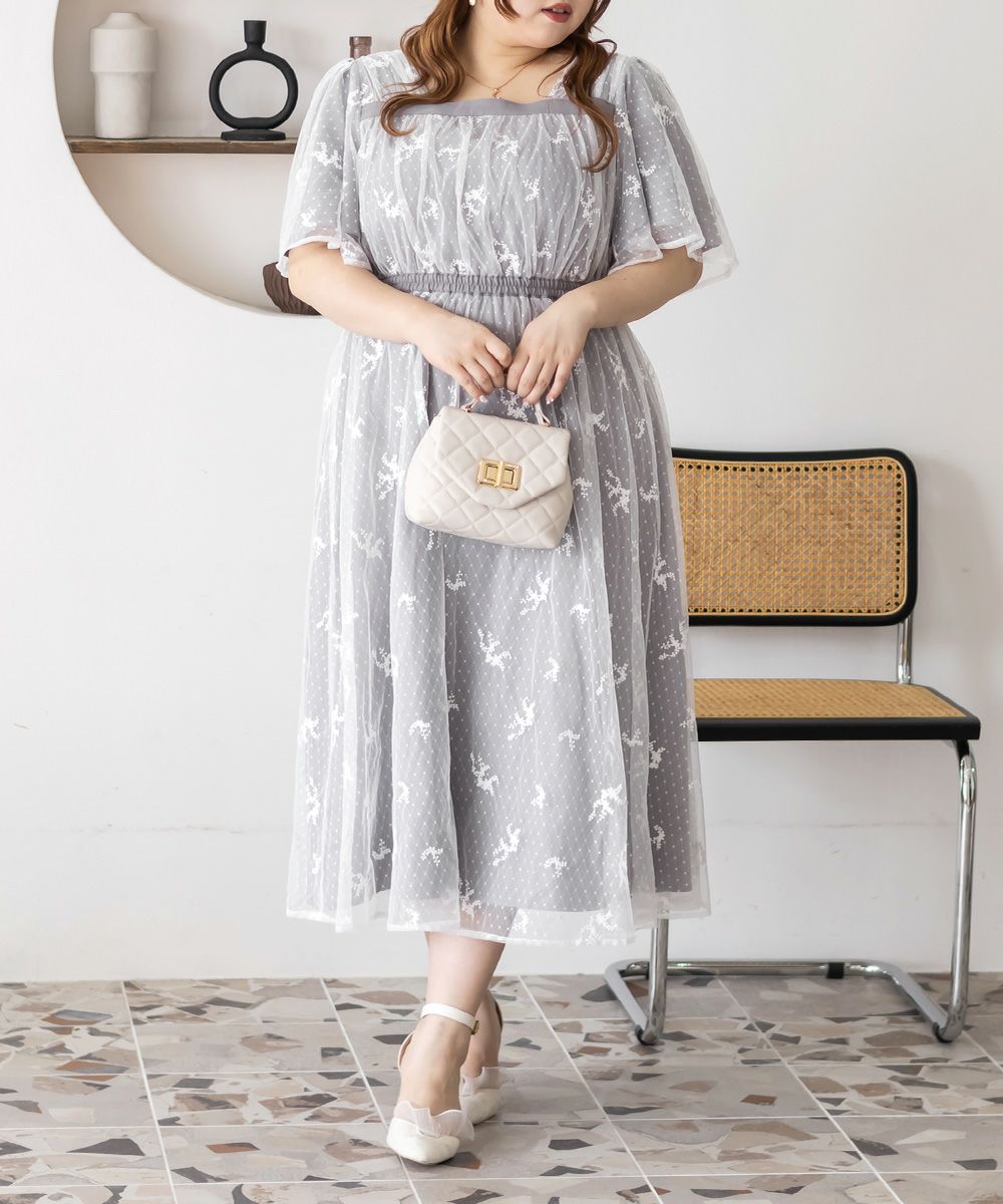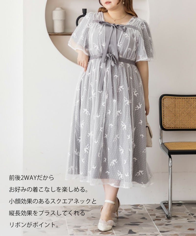3Lサイズを着用して、身頃に程よくフィット感がありつつも、チュールの広がりで下半身をふんわりカバーしてくれる着心地でした◎前後2WAYでアレンジできるので、その日の気分やスタイリングに合わせて楽しめるのが嬉しいポイント♪軽やかな花柄チュール生地が重なっていて、ふんわりと揺れるシルエットがとにかく可愛いです!普段使いはもちろん、お呼ばれやデートなど特別なシーンにも活躍してくれる主役級ワンピースです!