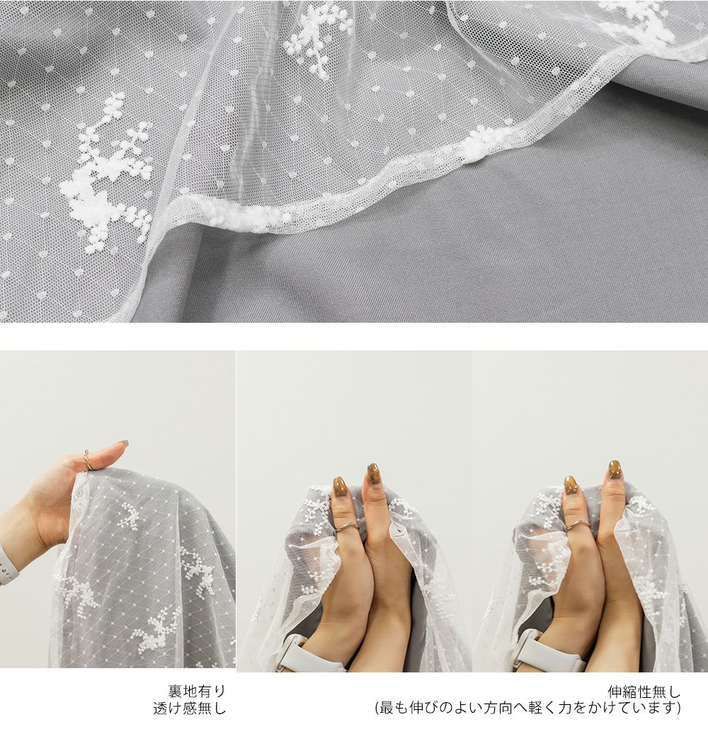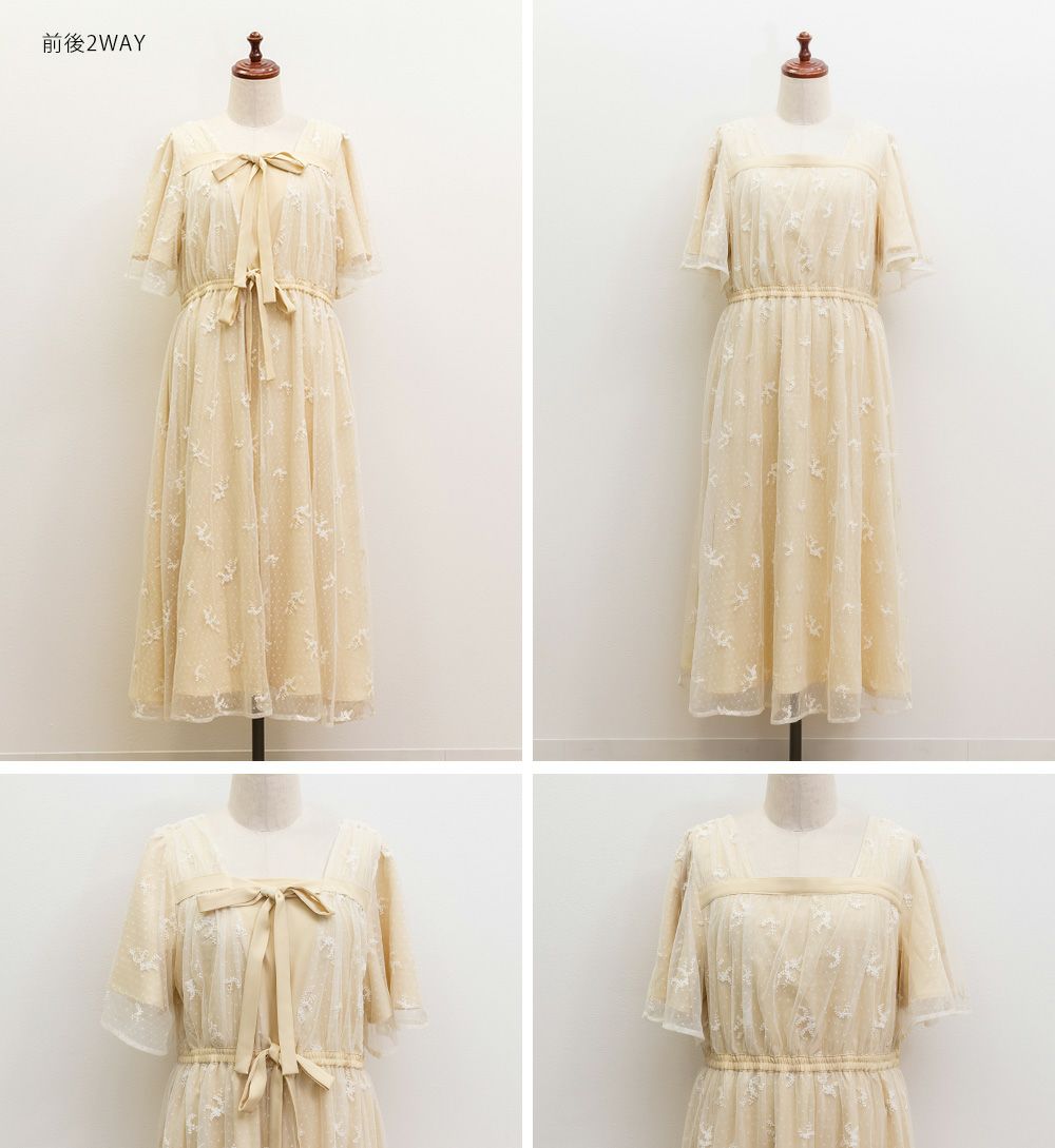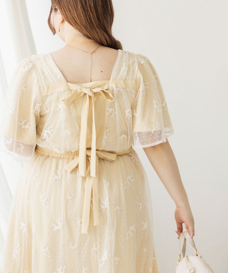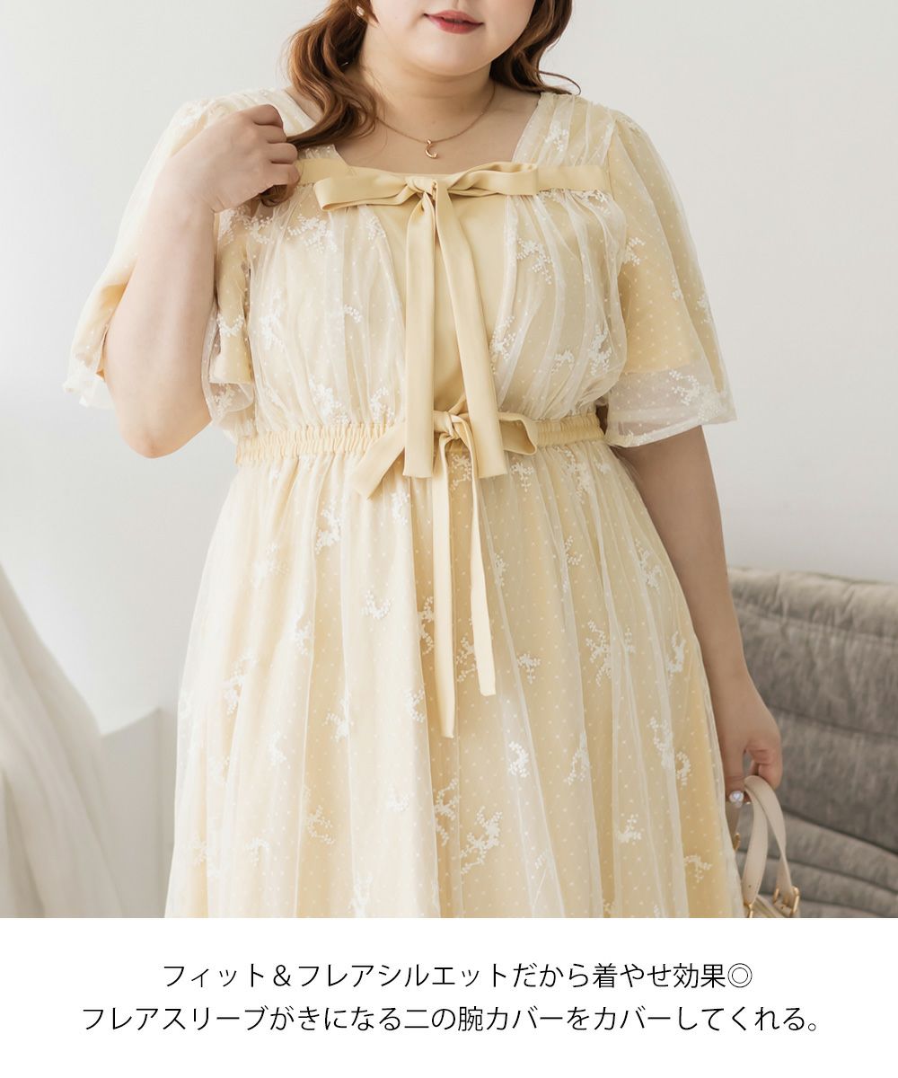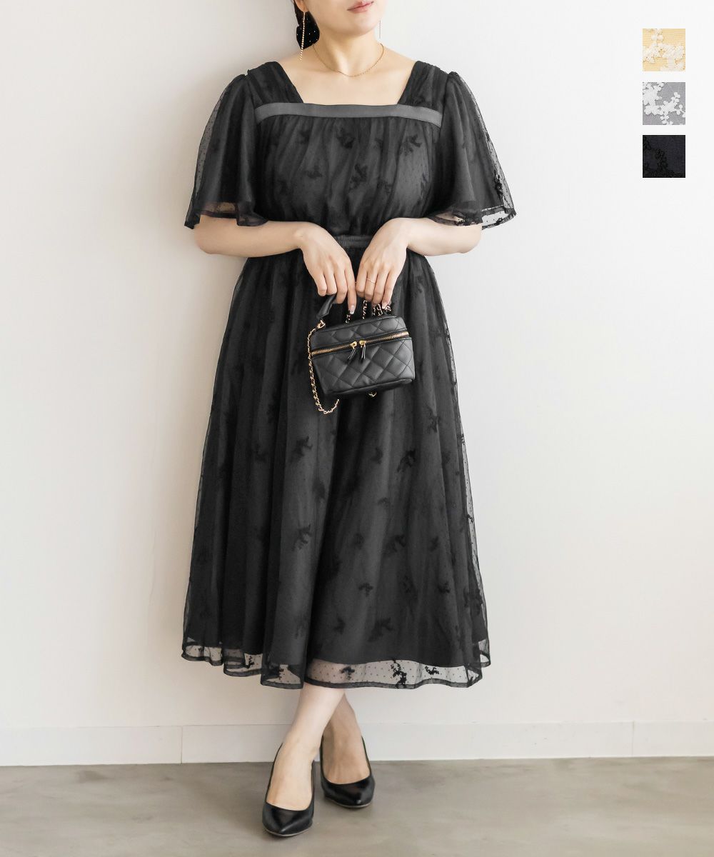 3Lサイズを着用して、身頃に程よくフィット感がありつつも、チュールの広がりで下半身をふんわりカバーしてくれる着心地でした◎前後2WAYでアレンジできるので、その日の気分やスタイリングに合わせて楽しめるのが嬉しいポイント♪軽やかな花柄チュール生地が重なっていて、ふんわりと揺れるシルエットがとにかく可愛いです!普段使いはもちろん、お呼ばれやデートなど特別なシーンにも活躍してくれる主役級ワンピースです!