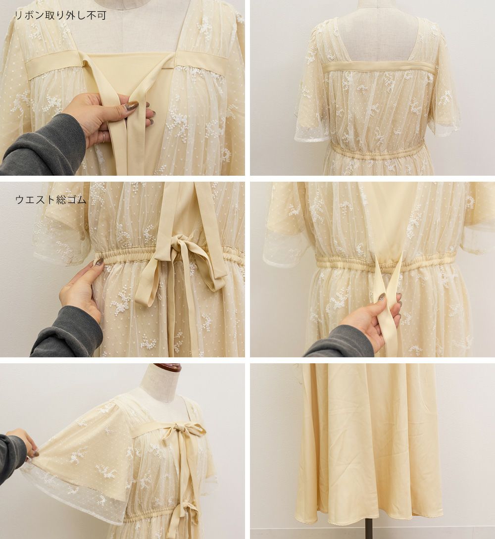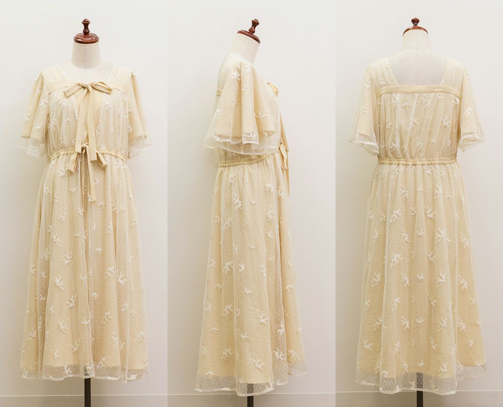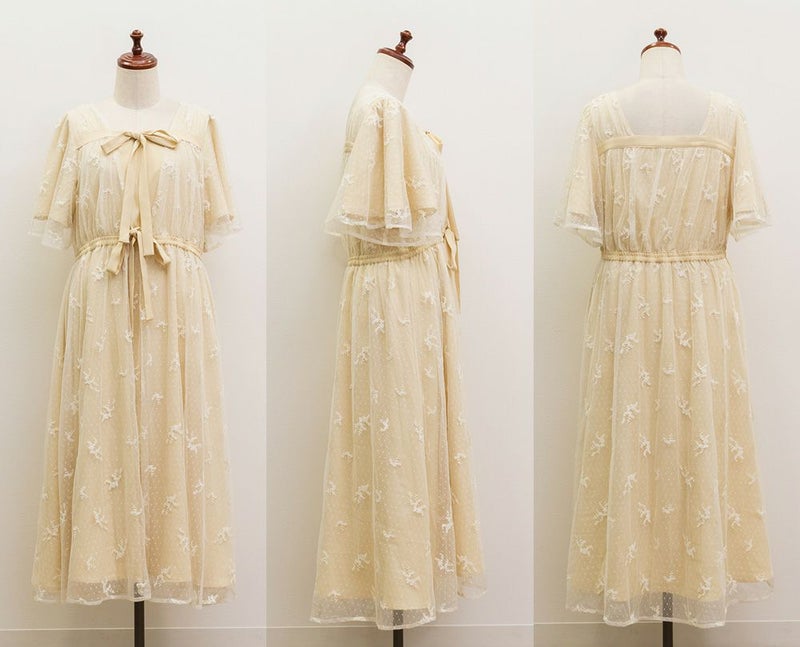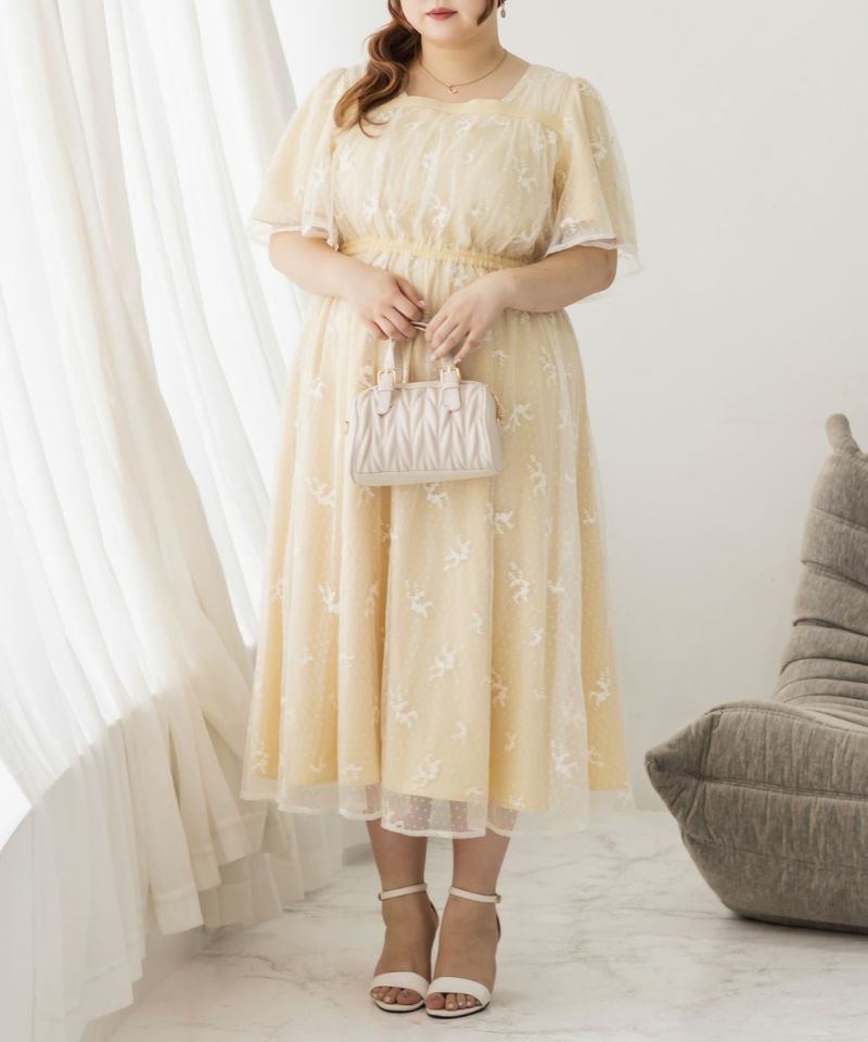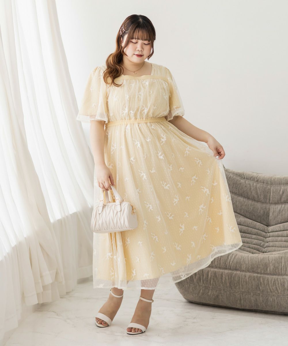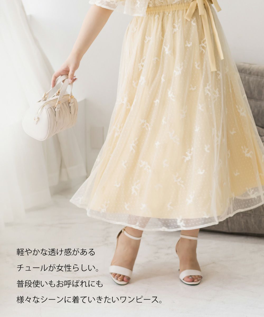 3Lサイズを着用して、身頃に程よくフィット感がありつつも、チュールの広がりで下半身をふんわりカバーしてくれる着心地でした◎前後2WAYでアレンジできるので、その日の気分やスタイリングに合わせて楽しめるのが嬉しいポイント♪軽やかな花柄チュール生地が重なっていて、ふんわりと揺れるシルエットがとにかく可愛いです!普段使いはもちろん、お呼ばれやデートなど特別なシーンにも活躍してくれる主役級ワンピースです!