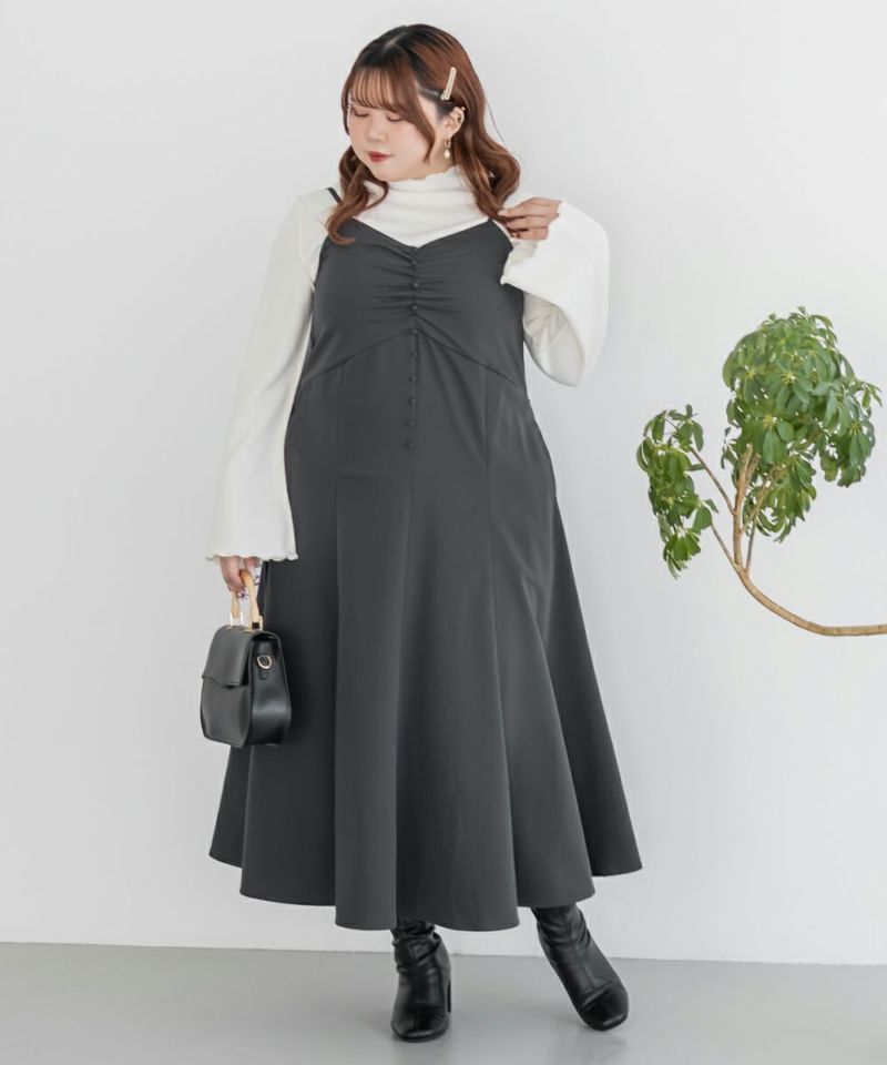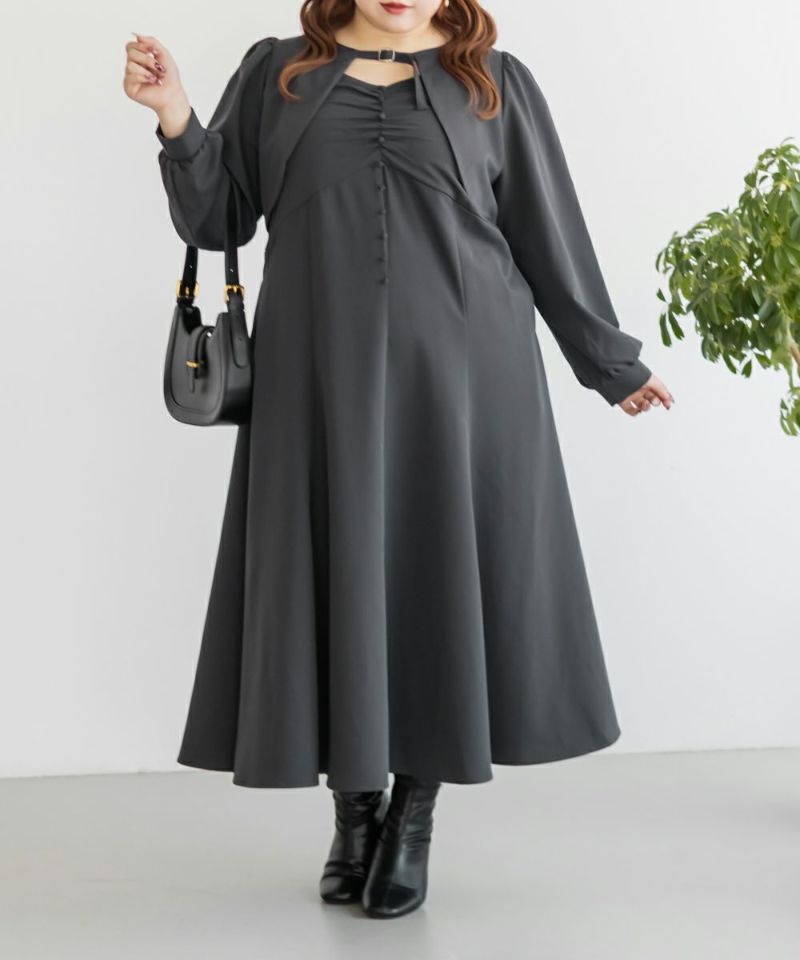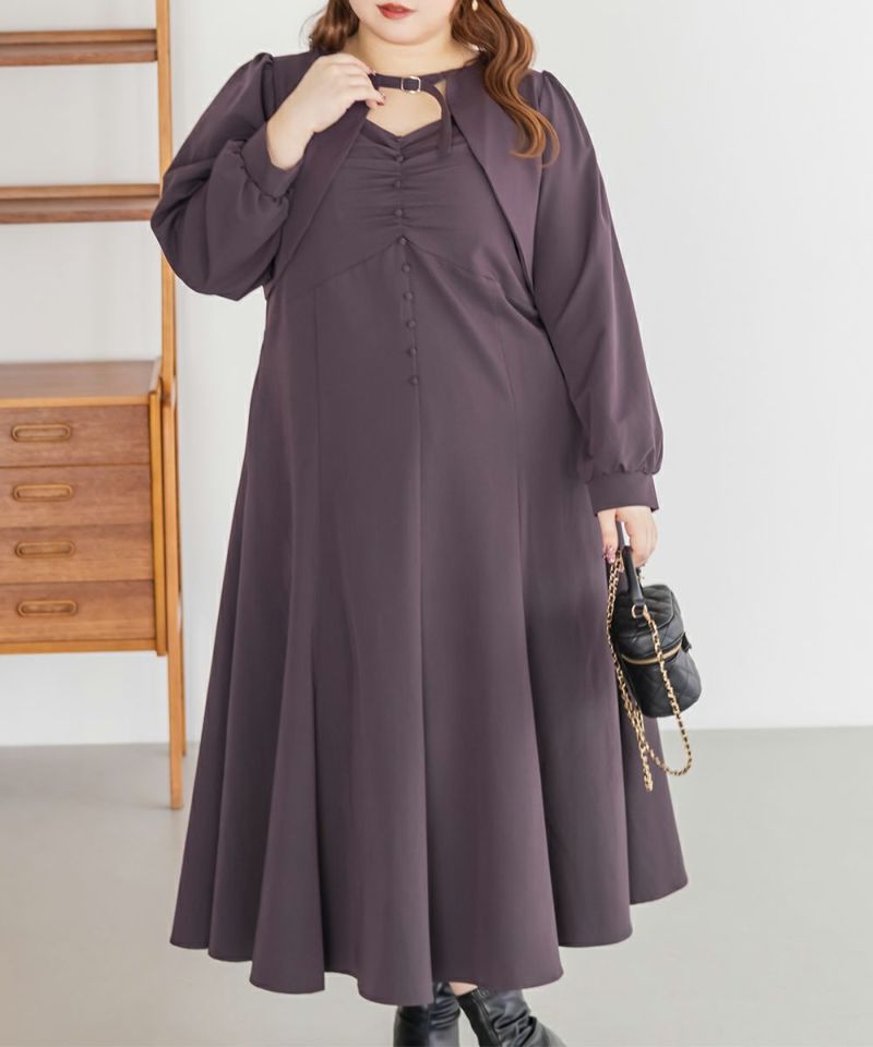 3Lサイズを着用していつも通りのサイズ選びで問題なさそうでした。ワンピースは後ろゴム仕様で窮屈感がなく、1日中ラクに着られます。 ボレロのベルトデザインが顔回りにメリハリを出してくれて、シャープな印象でした。キャミワンピ・ボレロともに単品でも使いやすく、シーズンレスで活躍します♪ふんわりとした袖やフレアシルエットが女性らしく、スタイルアップ効果も抜群です◎お出かけやデート・特別なシーンにも着ていきたい映えアイテムです!