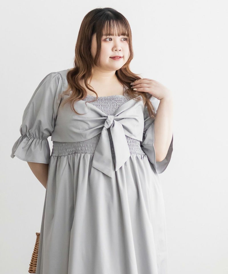 大きいリボンがフロントについたデザインでとってもフェミニンな雰囲気です。そこまでボリューム感が無いので、着ぶくれする心配もなく、メリハリが付いてすっきりと見えました。