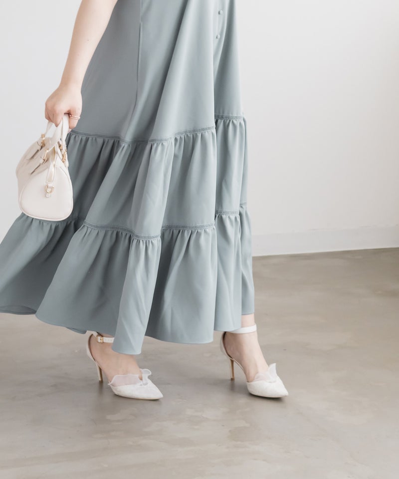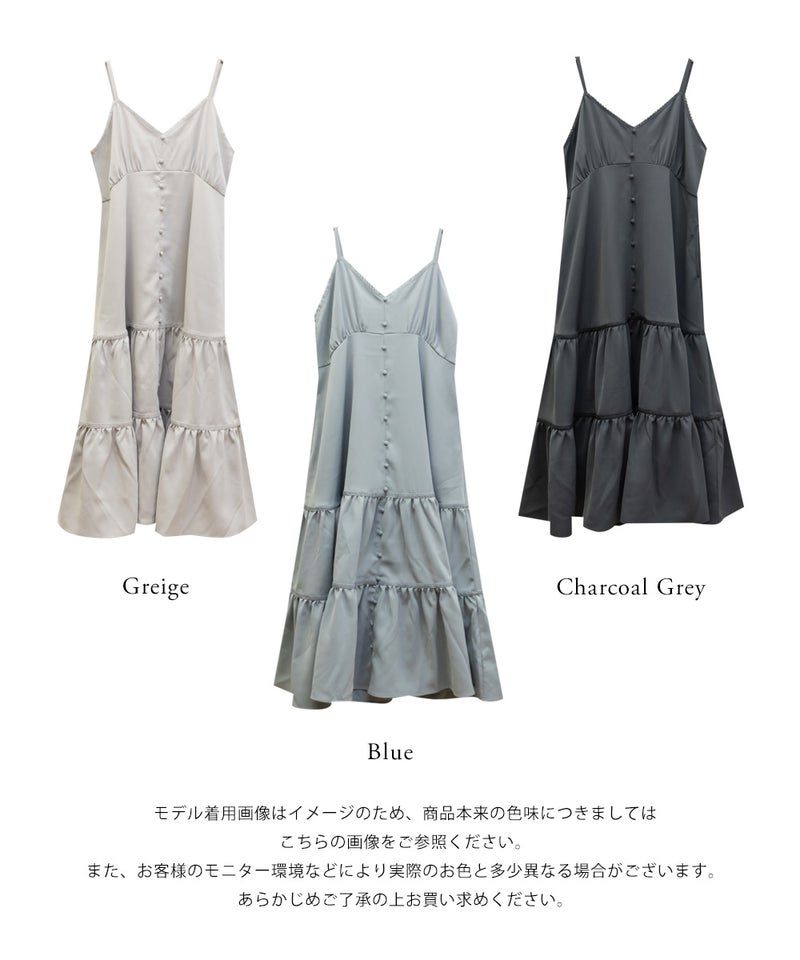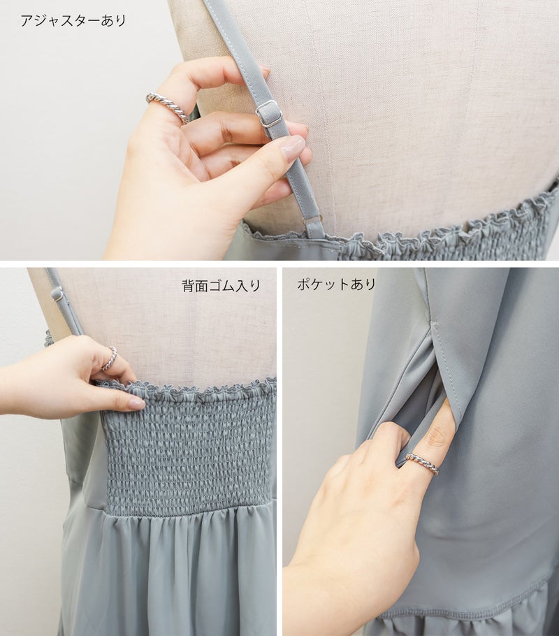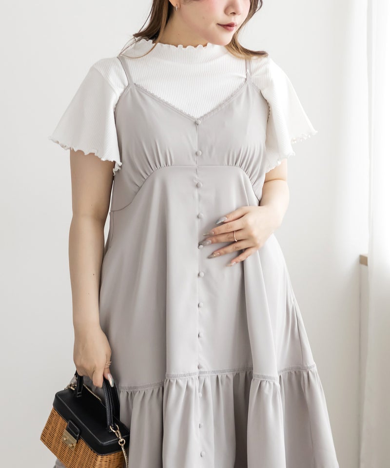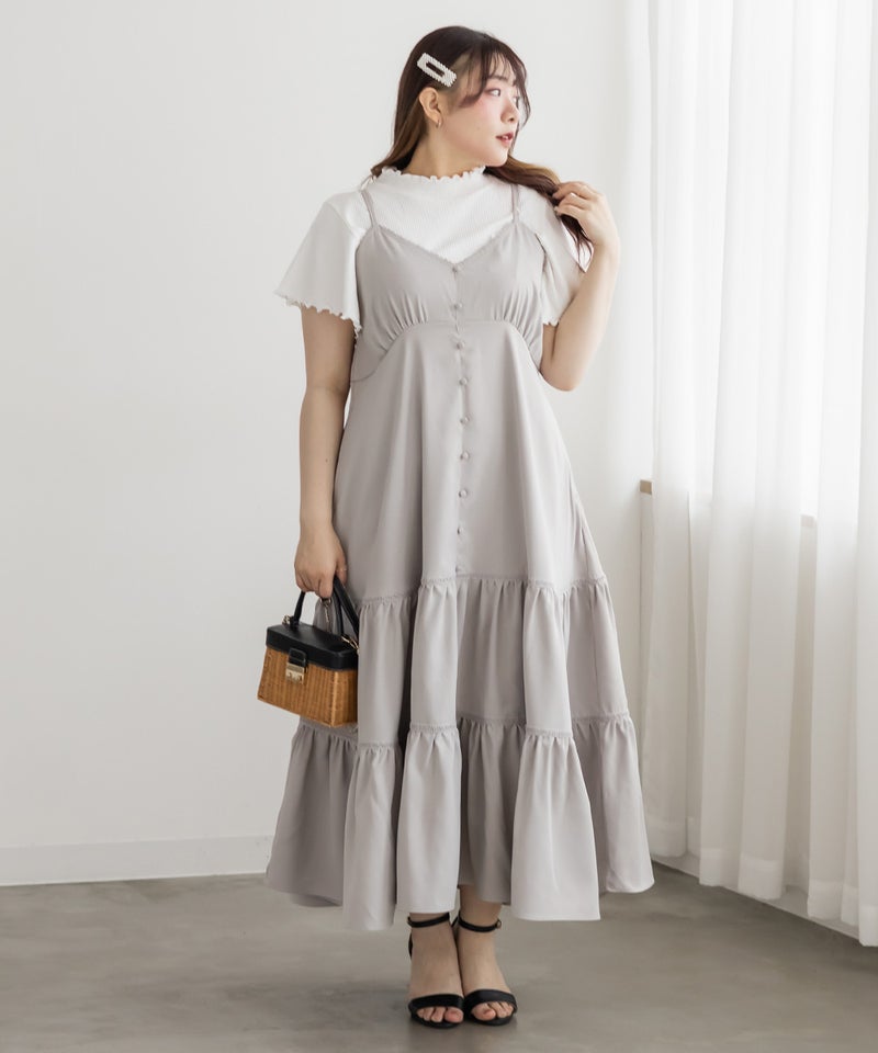 LLサイズを着用しました。程よくゆとりを持たせたシルエット感で、厚みのあるインナーを合わせても問題なさそうな着心地でした◎ 胸元の切替やギャザーで自然にメリハリが出て、バランスよく着こなせました! ティアードデザインが広がりすぎずフェミニンな雰囲気になって、シンプルなキャミワンピに飽きてきた方にもおすすめです!胸元やティアード部分にレースがあしらわれていて無地だけどお洒落な雰囲気です。インナーや小物合わせで印象チェンジしやすく、着回し力も高そうです!
