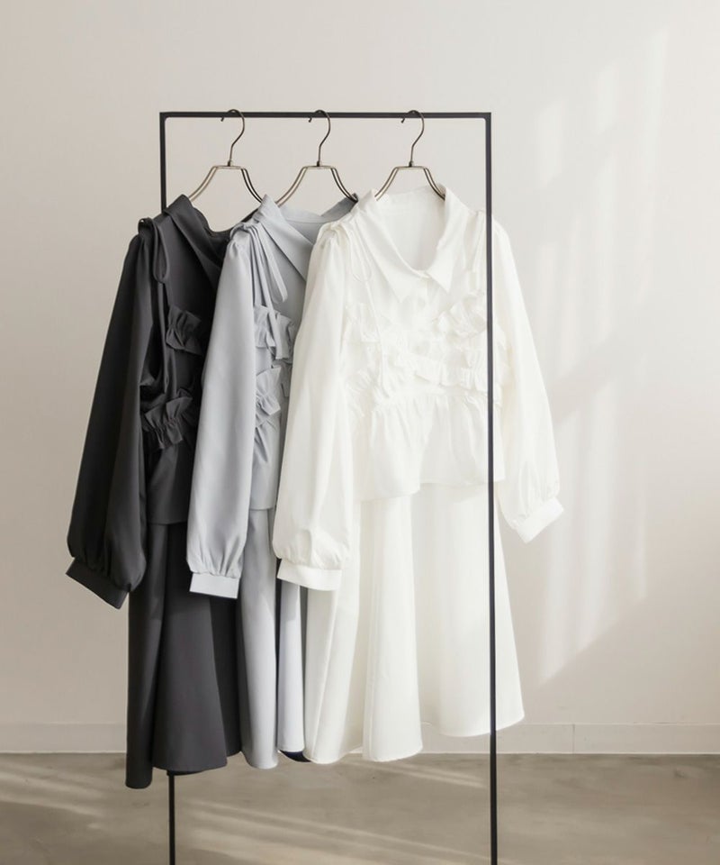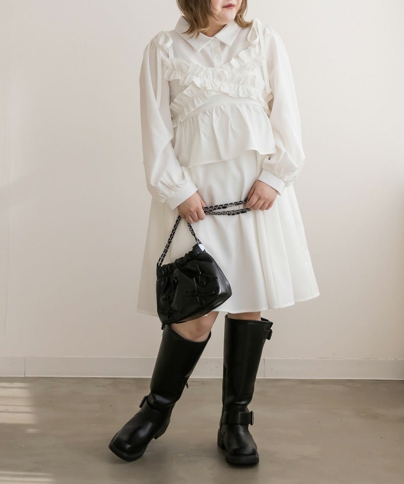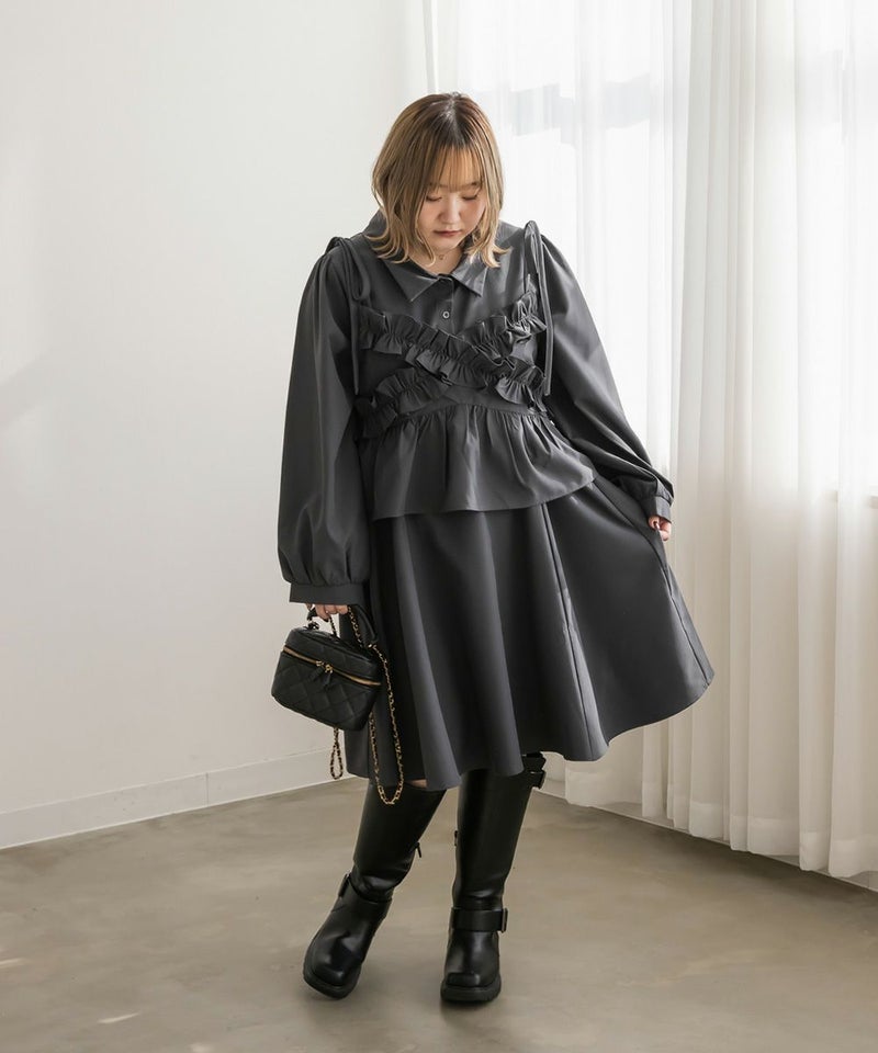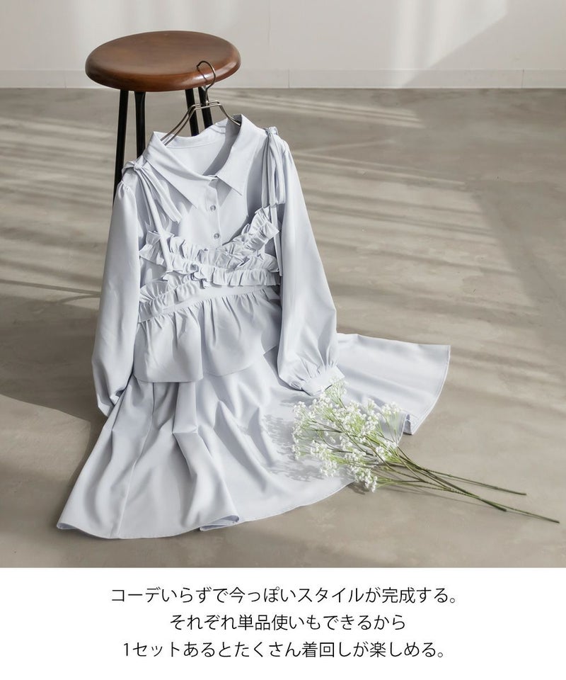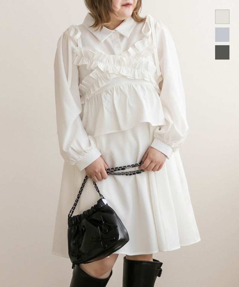 CLETTE オリジナル フリル ビスチェ セット ミニ シャツ ワンピース クレット プラスサイズ LL 3L 4L CLETTEオリジナル★フリルビスチェセットミニシャツワンピース