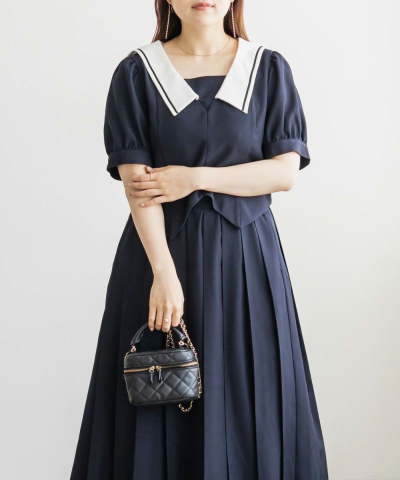 3Lを着てピッタリサイズでした。窮屈感はないけどすっきり見えるシルエットで着やせ効果抜群のアイテムです!セットアップだけでコーデが完成するので悩まず着られて嬉しい!セーラー襟は甘すぎないデザインなので大人かわいく着られて、プリーツスカートも広がりすぎずすっきりとした印象に。スカート・トップスともに後ろゴムでラクなのにきちんと感もあります。それぞれ単品でも着回しできて、1セットあるとたくさん活躍しそう◎着映えする1枚なので、写真をたくさん撮るシーンに良さそうです♪