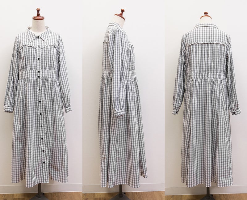 ハリのあるチェック柄生地でボディラインを拾わずにフレアに広がってくれます。