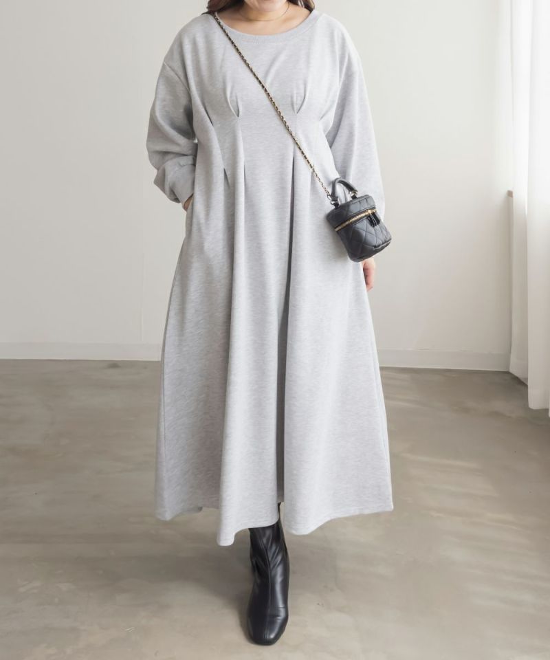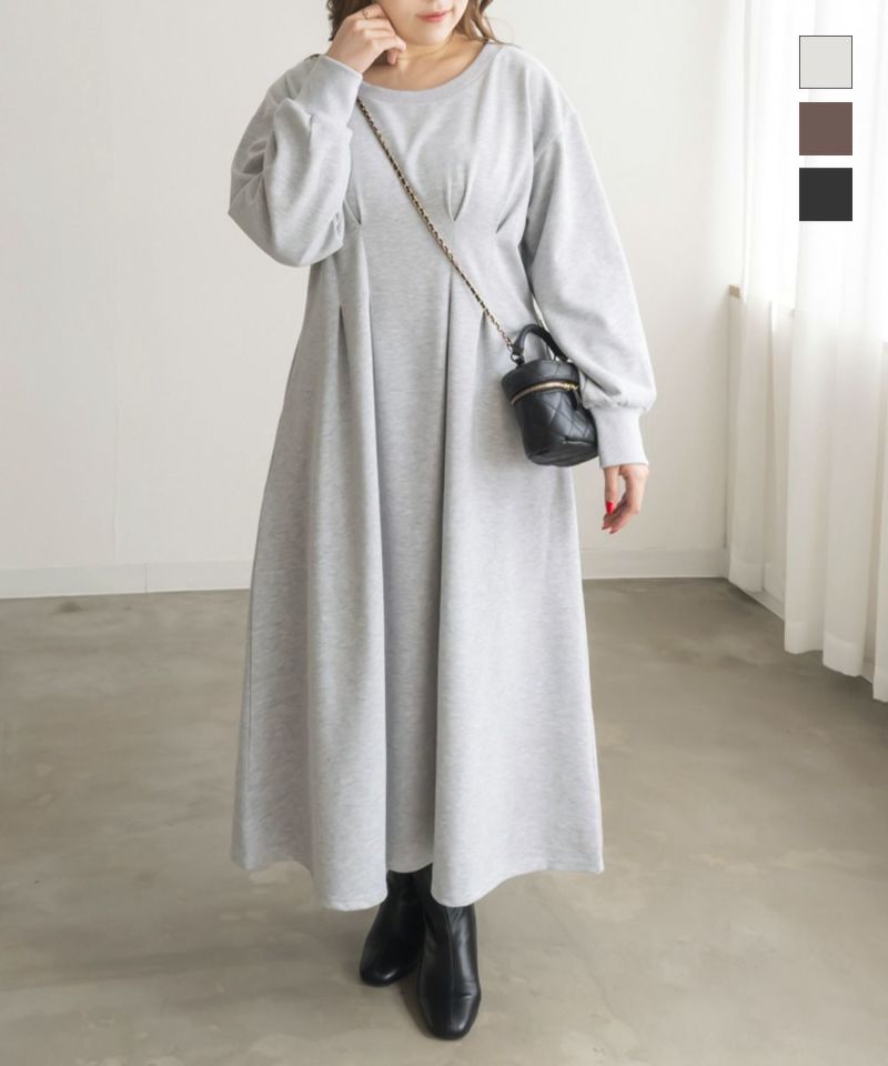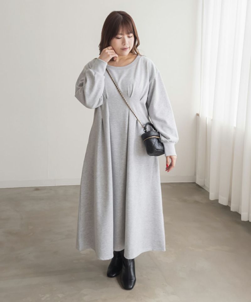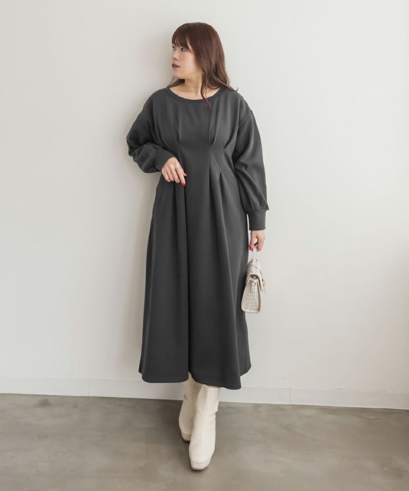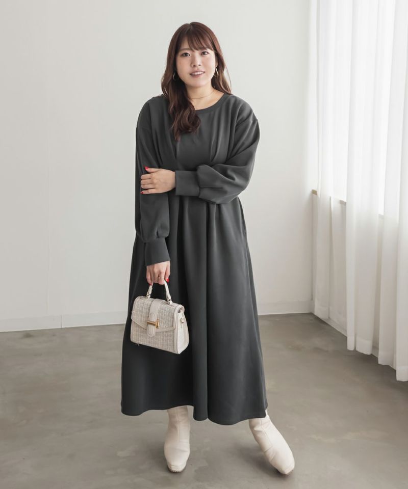 3Lサイズを着てちょうどよく楽な着心地でした!動きやすいスエット素材で着脱も楽々◎程よくハリのある生地なのでボディラインを拾わないのが嬉しい♪ウエストにタックが入っていて、フィット&フレアシルエットになってスエットだけど女性らしく着られます。ブーツやスニーカー、小物使いを変えるだけで違った印象に変化できます。頑張りすぎないおしゃれな雰囲気のスタイルをしたい方にぜひおすすめしたいです!
